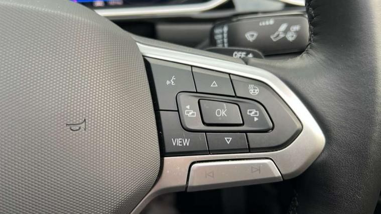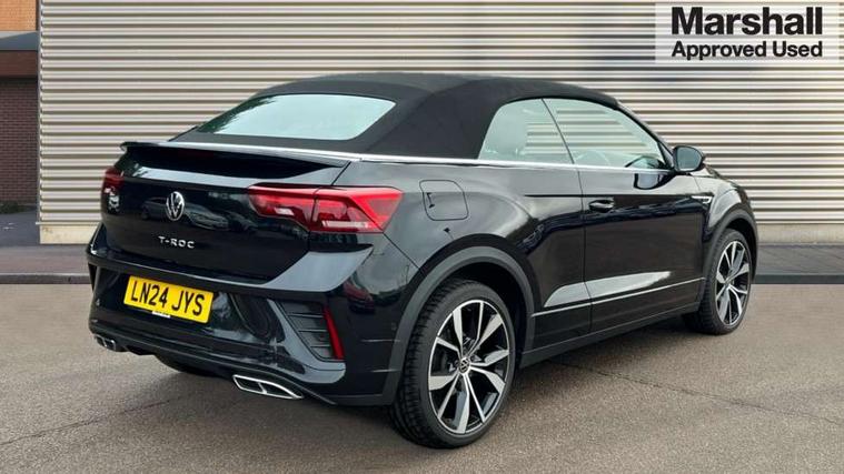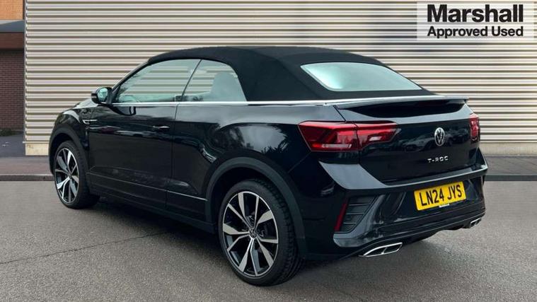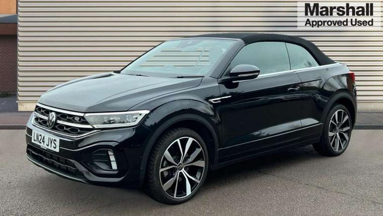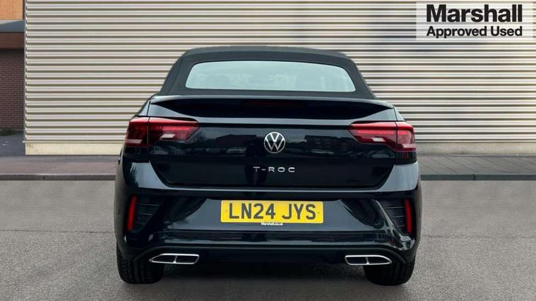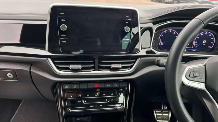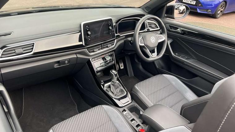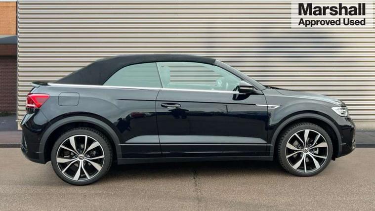 Adaptive cruise control and speed limiter, Advanced driver attention and drowsiness monitor, Bluetooth mobile phone interface, Brake pad wear indicator, Car information display, Digital Cockpit Pro with 10.25" Display, Driver tips and journey analysis, Emergency call service, Modified key software - reduce switch off time for key status change to Long no motion, Multifunction computer with visual gear change recommendation for fuel consumption, Multifunction front facing camera, Online services, Park assist including front and rear parking sensors, Speedo and rev counter, electronic odometer, trip, service interval display and exterior temperature gauge, Start/stop system with brake energy recovery, Tailgate/trunk lid release from outside, Warning sound and light for front seatbelts unfastened, Diversity antenna for FM reception, Music playback - MP3, WMA and AAC files, SMS functionality - read, compose and send SMS messages using touch-screen display, Title and cover art display, USB-C Interface and USB charging socket, We Connect and We Connect Plus functionality, Ambient lighting with logo projection, Auto dimming interior rear view mirror, Automatic hazard lights activation under emergency braking, Automatic headlight control with LED separate daytime running lights with coming/leaving home function, Black roof, Body colour door handles, Body colour rear spoiler, Chrome effect left and right trapezoid exhaust tailpipe fascia surround, Chrome trim on upper and lower radiator grille, Dark red rear combination lamps in LED technology, Dusk sensor, Exterior mirrors aspherical on driver side, convex on front passenger side, Heat insulating glass windscreen, High level 3rd brake light, Inserts of front seats and outer rear seats in ArtVelours titan black, LED rear number plate lights, Power operated canvas convertible top, Power windows with comfort operation and circuit breaker, R-Line design body coloured bumpers, Rain sensor, Rear boot, Rear exhaust tailpipe, Rear fog light on one side and reversing lights on both sides, Remote electrically foldable door mirrors, puddle lights and reverse activated passenger door mirror, Volkswagen roundel, Windscreen wiper with intermittent wipe light, Without exterior ambient lighting, 12V socket in centre console storage area, 2 LED front reading lights, 2 seat bench in 2nd row, 50:50 Split folding rear seat backrests with fixed rear seat bench, Air care climatronic air conditoning system with active combination filter and 2-zone temperature control, Black door lower parts with chrome trim, Chrome plated surround to light, mirror and window switch, Door and side trim panel with leatherette insert, Easy entry backrest release, Front and rear carpet mats with black stitching, Front centre armrest, Front cupholders x 2, Front door pockets, Front seat back storage pockets, Front sports comfort seats with manual height adjustment, Heated leather wrapped multi function sports steering wheel with tiptronic, Height/reach adjust steering wheel, Instrument lighting, white adjustable panel illumination, Interior light delay, Interior light in footwell, Interior lighting with switch off delay and contact switches on all doors, Interior white ambient lighting and surround lighting, Isofix child seat preparation, Lockable glove compartment with light, Luggage compartment lighting, Power adjustable lumbar support in front, Rear head restraints, Single front passenger seat, Stainless steel pedals, Sun visors with illuminated vanity mirrors, Unique R Line door sill protectors, Driver assistance pack without proactive passenger protection - T-Roc Cabriolet DSG, Sports pack - T-Roc cabriolet, 2 x 3-point seatbelts/outer rear seats with ECE label, Driver and front passenger airbag with front passenger airbag deactivation, Driver and front passenger safety-optimised head restraints, Drivers seatbelt reminder, Electronic parking brake, Electronic Stability Control (ESC) including ABS, ASR and EDL, Front and rear disc brakes, Front assist with autonomous emergency braking, Pedestrian monitoring, Predictive pedestrian protection, Rigid safety cell with front and rear crumple zones, Side airbag/thorax airbag system, for front passengers, Three point height adjust front seatbelts + pretensioners, Two tone horn, Tyre pressure loss indicator, Volkswagen roadside assistance, Anti-theft alarm system with interior protection and central locking system with SAFELOCK, radio remote control and 2 remote control folding keys, Electronic engine immobiliser, Trims for alloy wheels,