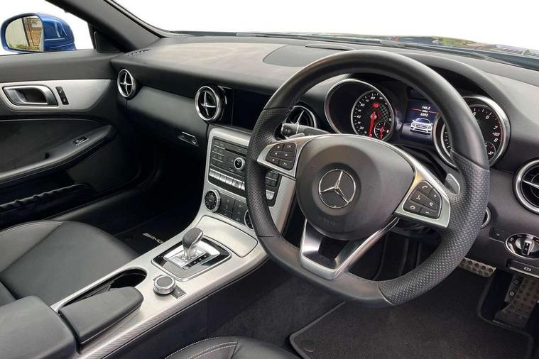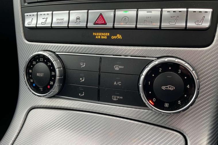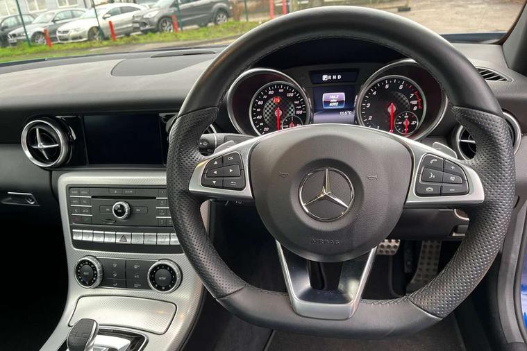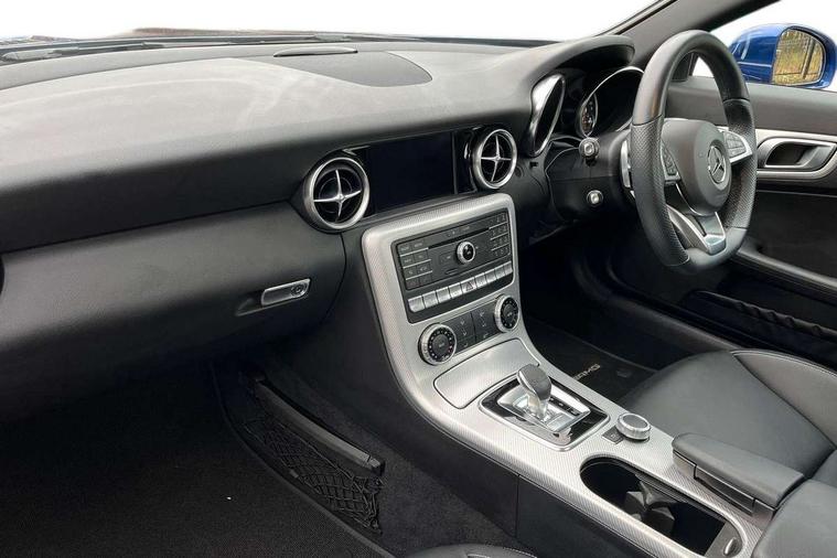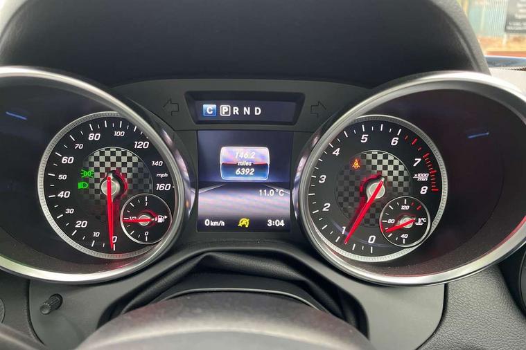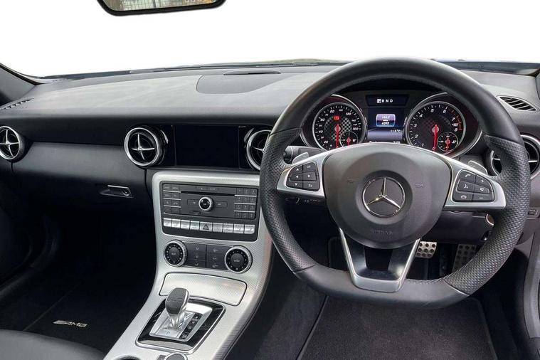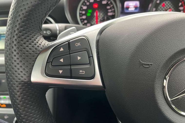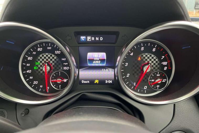 Attention assist, Bluetooth system, Chequered flag design instrument cluster, DYNAMIC SELECT with a choice of driving modes (ECO, Comfort, Sport, Sport+ and Individual), Outside temperature gauge, Power Steering, Remote boot release, Service indicator (ASSYST), Trip computer, Sport exhaust system, Sports suspension, 2 USB ports in centre console, DAB Digital radio, Media interface, Adaptive brake lights, AMG bodystyling, AMG sports exhaust system, Automatic headlamp activation, Body colour bumpers, Electric front windows, Electrically adjustable and heated door mirrors, Electro hydraulic vario roof, LED daytime running lights, 3 spoke flat bottom multi-function perforated leather steering wheel, Active head restraints, AMG floormats, Auto Mercedes-Benz child seat recognition sensor, Brushed stainless steel sports pedals with rubber studs, Driver/front passenger seat height adjustment, Front centre armrest, Lockable glovebox, Sports seats, Steering wheel gearshift paddles, ABS with Brake Assist, Adaptive brake system, Brake calipers with Mercedes-Benz lettering + perforated brake discs, Driver/front passenger head+thorax airbag, Dual stage driver/passenger airbags, Electronic parking brake, ESP with Acceleration skid control (ASR), Seatbelt pretensioners, Tyre pressure monitoring system, Warning triangle and first aid kit, Alarm system/interior protection/immobiliser, Tyre sealant kit,