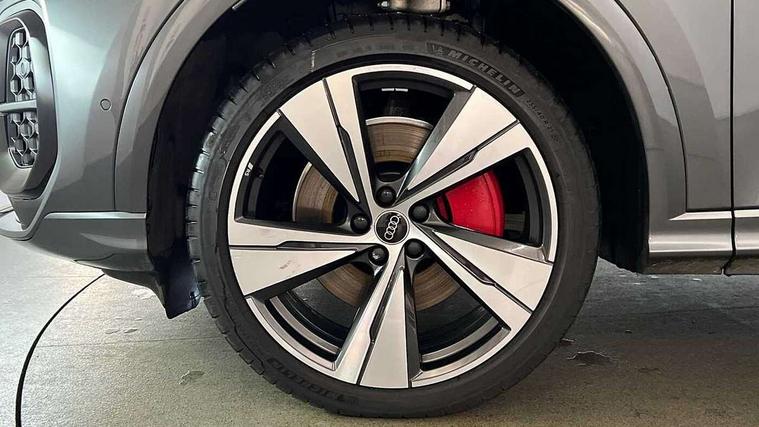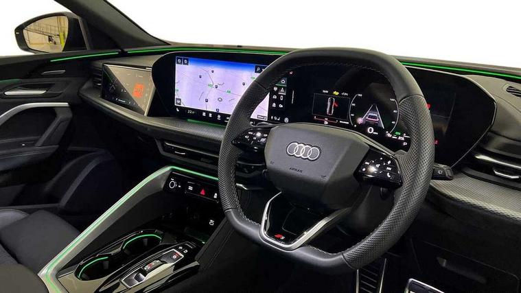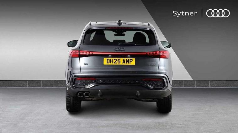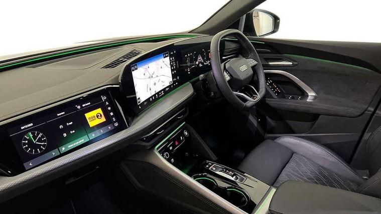 Adaptive cruise control, Advanced driver attention alert, Audi application store, Audi connect emergency call and service, Audi drive select, Audi smartphone interface, Audi virtual cockpit plus with 11.9" OLED colour display, Camera based traffic sign recognition, Fatigue monitor, Front cross traffic intersection assist, Lane change assistant with exit warning system, rear cross traffic alert and rear turn assist, Lane departure warning with emergency assist, MMI 10.9" front passenger touch display, MMI navigation plus with high resolution 14.5" OLED touchscreen colour display, Park assist plus, Parking system plus with 360 display, PAS, Reversing camera, Swerve assist and turn assist, Top view camera, Traffic sign based speed limiter, 2 USB-C ports in both the front and rear, Audi sound system impressive sound with 8 loudspeakers including centre speaker and subwoofer, 6-channel amplifier with a total output of 180 watts, DAB Digital radio, Smartphone compartment with wireless charging, Active digital light signatures - Six additional combinations of active daytime running light signature, Auto dimming rear view mirror, Black roof rails, Coming/leaving home lighting function, Electrically adjustable heated and folding + automatically dimming exterior mirrors, Exhaust tailpipes in dark chrome, Front and rear electric windows, Front door sill trims with aluminium inlays, illuminated with 'S' logo, Full body paint finish, Grill frame, inlay and front air inlets in matt anthracite chrome, Headlight cleaning system, Heated rear window, High beam assist, High gloss window surrounds, LED rear lights pro incl. dynamic rear indicators and illuminated light strip with animated coming and leaving home function, Logo projection light in exterior mirrors, Matrix LED headlights, Memory function for door mirrors, Privacy glass, Projection third brake light for rear window in LED, Radiator grille in phantom black, Rear and side windows with heat insulating glass, Rear honeycombe grille in matt black with inlay in matt anthracite chrome, Rear side wing doors, Rear wash/wipe, S Line badge on the front wings, Towbar preparation, Windscreen with acoustic glazing, 3 rear head restraints, 3 seat bench in 2nd row, 3 spoke leather steering wheel with multi-function buttons with touch control, flattened on top and bottom, with S badging and contrast stitching, 4 way electric lumbar support for driver and front passenger, 40:20:40 split folding rear seat bench with centre armrest and cup holders, Comfort centre armrest, Deluxe 3 zone electronic climate control, Dinamica microfiber/leather upholstery with diamond stitching, Electrically adjustable front seats with memory function for driver's side, Front and rear floor mats, Front sport seats with integrated head restraints, Headlining in black cloth, Heated front seats, i-Size child seat mounting on the front passenger side and outer rear seats, i-Size and top tether on the outer rear seats, Interior trim in aluminium look, Luggage compartment lid, electrically opening and closing, Manual steering column adjustment, S embossed logo on front sport seats, Single front passenger seat, Softwrap in Dinamica, Stainless steel pedals and footrest, Steering wheel grips in perforated leather and shift paddles, Ambient lighting package plus - Q5, Black styling package plus - Q5, Storage and luggage compartment pack - Q5, 3x3 point rear seatbelts, ABS, Acoustic vehicle alerting system, Convenience key with safelock, Driver and front passenger airbag with passenger airbag deactivation, Electric child safety locks, First aid kit with warning triangle and high visibility vests, Front emergency brake assist, Front side airbags with head airbag system and front interaction airbag, Hill hold assist, Occupant detection in rear seat area, Proactive passenger protection system for front, sides and rear, Red brake calipers, Side airbags in front and rear with head airbag system and front interaction airbag, Tyre pressure loss indicator, Anti theft alarm, Anti-theft wheel bolts, Remote control key with SAFELOCK and keyless go, Accent surfaces and control buttons in gloss black, Black dashboard with contrast stitching, Steel grey seat stitching, Upper and lower interior elements in dinamica microfiber, Tyre repair kit,