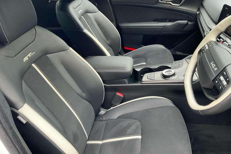 12.3" Touchscreen navigation system, 4.2" driver display screen, Bluetooth connection, Drive mode selector, Driver attention warning, E-call, Emergency stop signalling system, Forward collision avoidance assist (FCA) - city/pedestrian/cyclist/junction covering, Front and rear parking sensors, Highway Driving Assist (HDA), Intelligent speed limit assist, Kia Connect (UVO), Lane Following Assist (LFA), Lane keep assist, Low washer fluid warning, Motor driven power steering, Over the air (OTA) functionality, Reversing camera, Smart cruise control with stop and go functionality, Speed limiter, Tailgate, Trip computer, Windscreen washer level indicator, Wireless apple car play/android Auto, 6 speaker audio system, DAB Radio with MP3, Front passenger 1x USB-C port, Rear passenger 2x USB-C port, Steering wheel mounted audio controls, USB-C port for connection of a media device, Auto dimming rear view mirror, Automatic defog system, Automatic headlight control system, Black and body coloured bumpers, Body colour exterior door handles, Body colour radiator upper garnish and door garnish, Electric front and rear windows with front one touch function, Electrically adjustable/heated/folding door mirrors with LED indicators, Front and rear body colour skid plates, Gloss black door mirrors, Gloss black radiator grille, Gloss black wheel arches, Glossy black roof rails, GT-Line exterior styling, Heated rear window, High beam assist, LED daytime running lights, LED front fog lamps, LED Headlights, LED High mounted stop light, LED rear lights, Privacy glass in rear windows and tailgate, Rain sensing wipers, Rear fog lamp, Rear roof spoiler, Rear side wing doors, Rear wiper, Satin finished beltline, Silver window surround, Trailer stability assist, 12V power socket in front and luggage compartment, 2nd row personal lamps, 3 seat bench in 2nd row, 3 x passenger assist grips, 40/20/40 split folding rear seat, All-round height adjustable headrests, Alloy pedals, Automatic air conditioning, Black headlining, Centre console storage box, Cupholders in rear armrest, Door courtesy lamps, Driver and front passenger sunvisors with illuminated vanity mirrors, Driver's seat manual height adjust, Drivers seat power lumbar support, Front and rear door storage, Front cabin, rear & luggage compartment lights, Front passenger's seat manual height adjustment, Front seat and rear pockets, Gear shift indicator, Glovebox, GT-Line Interior Styling, Heated front seats, Heated steering wheel, ISOFIX Child seat top tethers and anchor fixings outer rear seats, Leather steering wheel, Leather/suede upholstery, LED lighting in overhead console, Luggage area load cover, Luggage area parcel shelf, Luggage board, Luggage compartment under floor storage, Luggage net hooks, Manual adjust steering wheel, Metal paint interior door handles, Paddle shift controls, Rear air conditioning, Rear cabin light, Rear coat hooks, Single front passenger seat, Ventilation ducts to rear compartment, Active front headrests, All round 3-point seatbelts, Anti-lock braking system (ABS), Dual front side airbags, Dual horn, Dynamic brake control, Electronic parking brake with auto hold function, Electronic stability control with downhill brake control, Front passenger airbag cut-off switch, Front seatbelt pretensioners + load limiters, Height adjustable front seatbelts, Hill start assist control (HAC), Impact sensing auto door unlocking, Multi collision brake assist, Rear airbags, Rear door child safety locks, Rear seat alert system, Seatbelt reminder warning, Traction control, Twin curtain airbags, Twin front airbags, Tyre pressure monitoring system, Vehicle stability management, Customisable automatic door locking, Customisable automatic door unlocking, Door deadlocks, Engine Start/Stop Button with Smart Entry System, Locking wheel nuts, Smart key with motion sensor, Speed sensitive auto door locking, Thatcham category 2 security alarm and immobiliser, Visible vehicle identification number, 18" GT-Line alloy wheels, Tyre mobility kit,