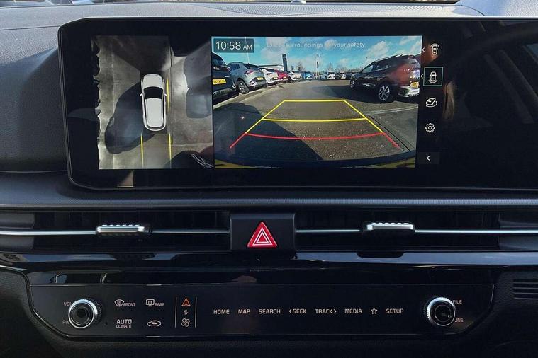 12.3" Driver display screen, 12.3" Touchscreen navigation system, 360 degree around view monitor, Blind spot collision avoidance assist, Blind spot view monitor, Bluetooth connection, Customisable head-up display, Digital key 2.0, Drive mode selector, Driver attention warning, E-call, Emergency stop signalling system, Forward collision avoidance assist 2.0, Front and rear parking sensors, Highway Driving Assist (HDA 2.0), Intelligent speed limit assist, Kia Connect (UVO), Lane Following Assist (LFA), Lane keep assist, Low washer fluid warning, Motor driven power steering, Over the air (OTA) functionality, Parking collision avoidance assist (PCA), Rear cross traffic collision avoidance assist (RCCA), Remote smart parking assist, Reversing camera, Safe exit warning (SEW), Smart cruise control with stop and go functionality, Smart power tailgate, Speed limiter, Trip computer, Windscreen washer level indicator, Wireless apple car play/android Auto, Wireless Smartphone charger, DAB Radio with MP3, Front passenger 1x USB-C port, Harman Kardon premium sound system with 8 speakers, Rear passenger 2x USB-C port, Steering wheel mounted audio controls, USB-C port for connection of a media device, Auto dimming rear view mirror, Automatic defog system, Automatic headlight control system, Black and body coloured bumpers, Black window surrounds, Body colour exterior door handles, Body colour radiator upper garnish and door garnish, Dual LED headlights with adaptive driving beam, Electric front and rear windows with front one touch function, Electrically adjustable/heated/folding door mirrors with LED indicators, Front and rear body colour skid plates, Gloss black door mirrors, Gloss black radiator grille, Gloss black wheel arches, Glossy black roof rails, GT-Line exterior styling, Heated rear window, High beam assist, LED daytime running lights, LED front fog lamps, LED High mounted stop light, LED rear lights, Panoramic sunroof with tilting and sliding function with electric blind, Privacy glass in rear windows and tailgate, Rain sensing wipers, Rear fog lamp, Rear roof spoiler, Rear side wing doors, Rear wiper, Satin finished beltline, Trailer stability assist, 12V power socket in front and luggage compartment, 3 seat bench in 2nd row, 3 x passenger assist grips, 40/20/40 split folding rear seat, All-round height adjustable headrests, Alloy pedals, Automatic air conditioning, Black headlining, Centre console storage box, Cupholders in rear armrest, Customisable ambient lighting, Door courtesy lamps, Driver and front passenger sunvisors with illuminated vanity mirrors, Drivers seat power lumbar support, Electric adjustable driver seat with memory function, Electric adjustable front passenger seat, Front and rear door storage, Front seat and rear pockets, Gear shift indicator, Glovebox, GT-Line Interior Styling, Heated front and outer rear seats, Heated steering wheel, ISOFIX Child seat top tethers and anchor fixings outer rear seats, Leather steering wheel, Leather/suede upholstery, LED front cabin light, LED interior personal lamp, LED lighting in overhead console, LED rear reading lights, Luggage area LED light, Luggage area load cover, Luggage area parcel shelf, Luggage board, Luggage compartment under floor storage, Luggage net hooks, Manual adjust steering wheel, Metal paint interior door handles, Paddle shift controls, Rear air conditioning, Rear cabin light, Rear coat hooks, Single front passenger seat, Ventilated front seats, Ventilation ducts to rear compartment, Active front headrests, All round 3-point seatbelts, Anti-lock braking system (ABS), Dual front side airbags, Dual horn, Dynamic brake control, Electronic parking brake with auto hold function, Electronic stability control with downhill brake control, Front passenger airbag cut-off switch, Front seatbelt pretensioners + load limiters, Height adjustable front seatbelts, Hill start assist control (HAC), Impact sensing auto door unlocking, Multi collision brake assist, Rear airbags, Rear door child safety locks, Rear seat alert system, Seatbelt reminder warning, Traction control, Twin curtain airbags, Twin front airbags, Tyre pressure monitoring system, Vehicle stability management, Customisable automatic door locking, Customisable automatic door unlocking, Door deadlocks, Engine Start/Stop Button with Smart Entry System, Locking wheel nuts, Smart key with motion sensor, Speed sensitive auto door locking, Thatcham category 2 security alarm and immobiliser, Visible vehicle identification number, 19" GT-Line alloy wheels, Tyre mobility kit,