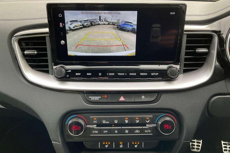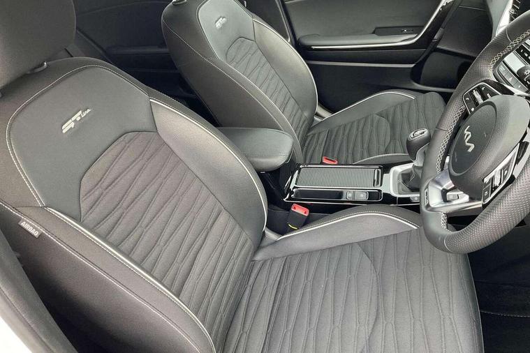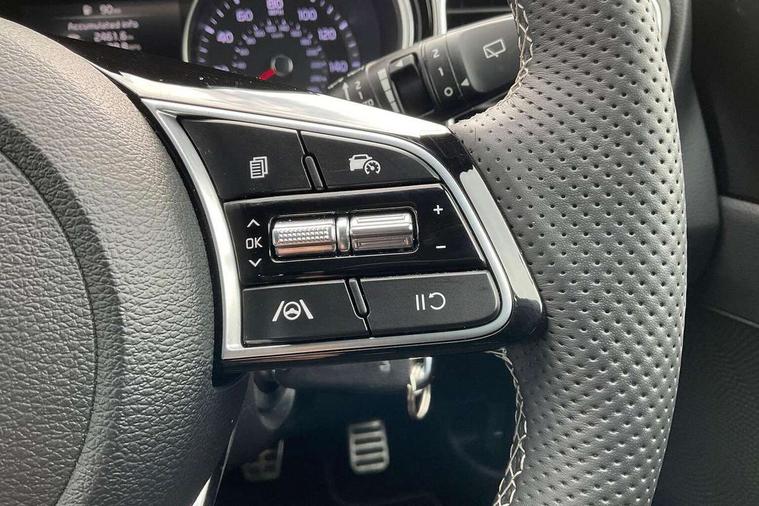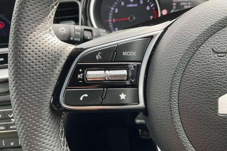 10.25" touchscreen satellite navigation, 4.2" supervision colour cluster display, Apple CarPlay and Android Auto, Bluetooth with Voice Recognition & Music Streaming, Cruise control, Drive mode select (Eco, Normal, Sport), Driver attention warning, Emergency call service, Forward Collision-Avoidance Assist (FCA) 1.0 - City/Pedestrian/Cyclist, Intelligent speed limit assist, Kia connected services, Lane Follow Assist 1.0, Lane keep assist, Motor driven power steering, Rear parking sensor, Reversing camera with dynamic guide lines, Speed limiter, Tailgate, Trip computer, 7 speakers, Front USB port for media connection, Auto dimming rear view mirror, Automatic defog system, Automatic headlights, Black side sill mouldings with body coloured inserts, Black wheel arch trim, Body colour bumpers, Body colour rear roof spoiler, Chrome window surround, Electric front/rear windows with one touch, Electrically folding, adjustable and heated door mirrors with integrated LED indicator lights, Front and rear chrome skid plates, Gloss black door mirrors, GT-Line exterior styling, Heated rear window, High gloss black roof rails, High glossy black and dark chrome radiator grille, LED daytime running lights, LED front fog lights, LED Headlights, LED High-mounted Brake Light, LED rear lights (Honeycomb design with sequential indicators), Privacy glass - Rear windows and tailgate, Rain sensing front wipers, Rear fog lights, Rear side wing doors, Rear wiper, 3 seat bench in 2nd row, 60/40 split folding rear seat, All-round height adjustable headrests, Alloy pedals, Automatic air conditioning, Centre console with storage box, Cloth / Artificial leather upholstery, Driver + front passenger electric lumbar support, Driver's seat height adjuster, Front and luggage area 12V power sockets, Front and rear door storage, Front cabin light with sunglasses case, Front passenger 1 x USB-C charging port, Front Passenger Seat Height Adjuster, GT-Line Interior Styling, Heated front seats, Heated steering wheel, Illuminated driver and front passenger sunvisors with vanity mirror, ISOFIX Child seat top tethers and anchor fixings outer rear seats, Leather steering wheel, Luggage area parcel shelf, Luggage hooks, Manual steering wheel adjustment, Rear and Luggage compartment light, Rear centre armrest with cupholders, Rear passenger 1 x USB-C charging port, Single front passenger seat, All round 3-point seatbelts, Anti-Lock braking system with emergency stop signalling, Electronic parking brake with auto hold function, Electronic stability control (ESC) and vehicle stability management (VSM), Front passenger airbag cut off switch, Front, side and curtain airbags, Height adjustable front seatbelts, Hill start assist control (HAC), Rear door child safety locks, Seatbelt reminder warning, Customisable automatic door locking, Customisable automatic door unlocking, Locking wheel nuts, Smart key with motion sensor, Thatcham category 2 security alarm and immobiliser, Visible vehicle identification number, 18" GT-Line alloy wheels, Tyre mobility kit,