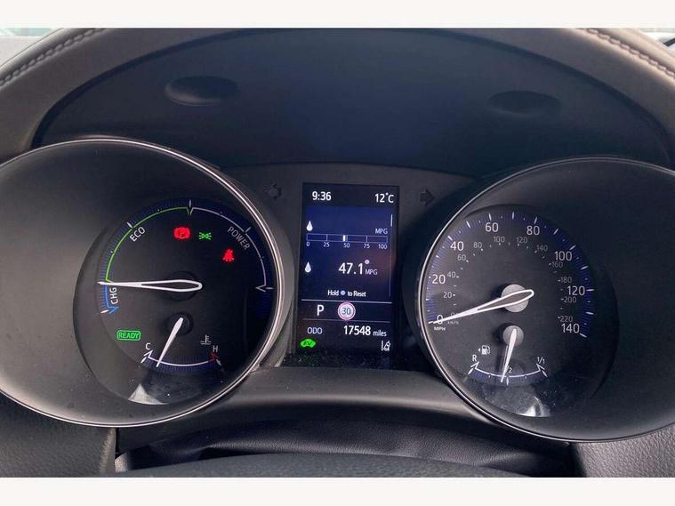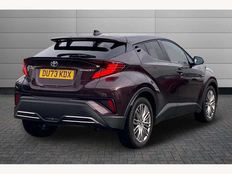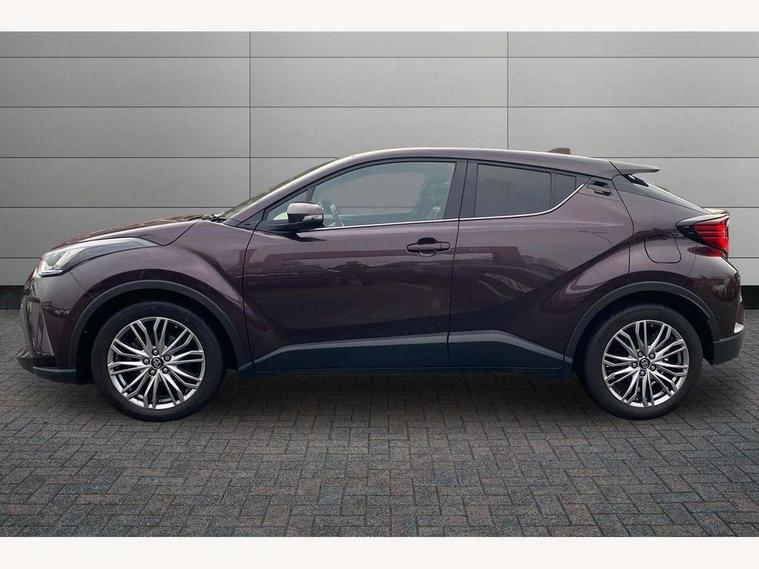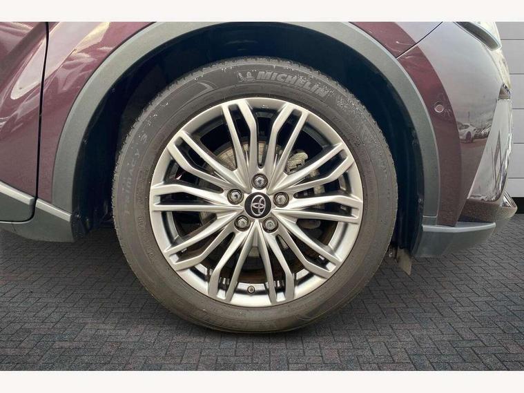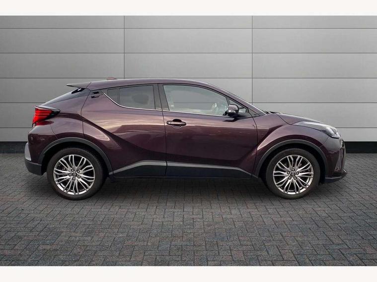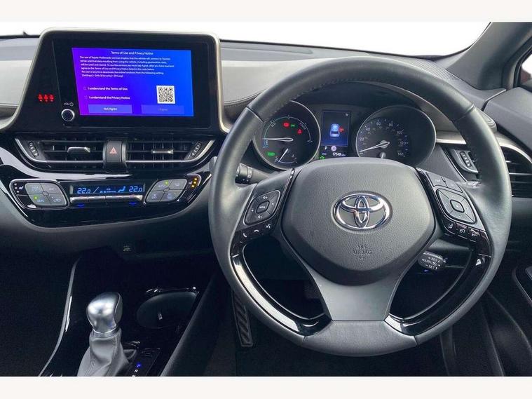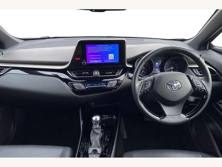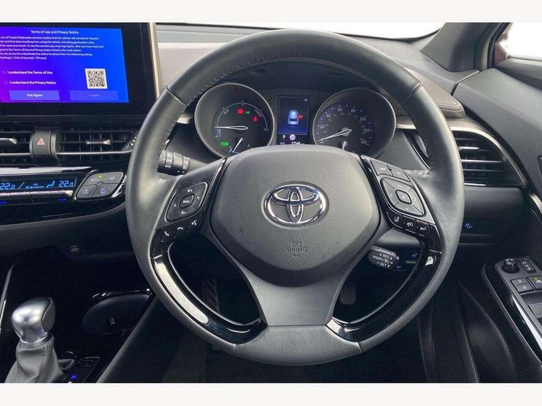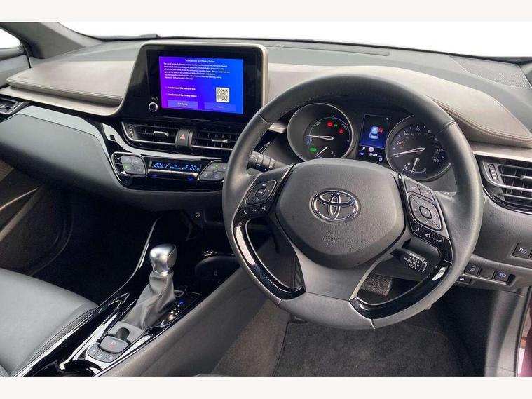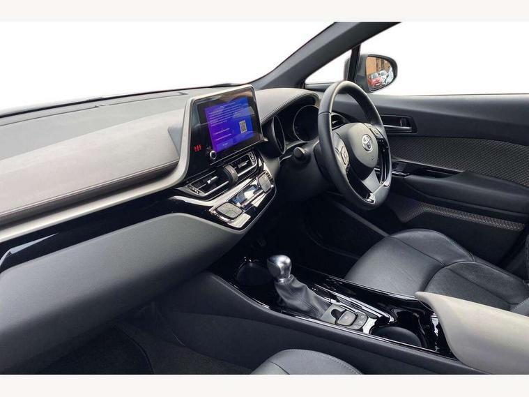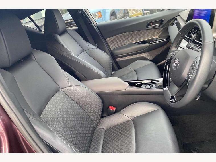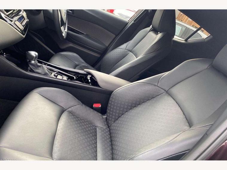4.2" coloured TFT screen for multi-information display, Adaptive cruise control, Apple car play and Android auto, Bluetooth connectivity, E-call, Electric power steering, Hybrid system indicator, Lane departure alert with steering control, Lane trace assist, Push button tailgate release, Remote boot door release in cabin, Remote boot door release in key, Reversing camera, Road sign assist - RSA, Simple Intelligent parking assist, Smart voice assist, Touch 2 Go navigation system, Trip computer, Voice recognition, Wireless smartphone integration, Vehicle Stability Control (VSC), 6 speakers, AM/FM radio, DAB Radio (Digital Audio Broadcasting), Toyota touch 2 multimedia system with 8" display, USB connector, Wi-fi connectivity, Adaptive front light system, Adaptive LED Headlights, Anti-jam protection on power windows, Auto high beam, Auto up and down function on all power windows, Automatic headlight levelling, Automatic headlights, Automatic headlights cut-off, Black and body coloured rear bumper, Black lower front grille, Black upper front grille, Body colour door handles, Body colour door mirrors, Body colour front spoiler lip, Body coloured front bumper, Boot door release with push button, Electric heated door mirrors, Follow me home headlights, Front and rear power windows, Headlight cut off reminder, Honeycomb lower front grille, LED daytime running lights, LED fog lights, LED front light guide, LED High mounted stop light, LED rear brake lights, LED rear combination lights, Noise reduction layer on front windows and windscreen, Power adjustable door mirrors, Privacy glass, Rain sensor, Rear sequential indicators, Rear side wing doors, Rear spoiler, Rear tailgate, Rear window defogger, Rear window wiper, Shark fin antenna, UV-filter on driver and passenger windows, UV-filter on rear windows, Variable front intermittent wipers, 12v power outlet - front, 3 rear headrests, 3 seat bench in 2nd row, 3 spoke leather steering wheel, 60/40 split folding 2nd row rear seats, Adjustable rear headrests, Adjustable speed limiter switch on steering wheel, Assist grips front and centre pillar, Audio and telephone switches on steering wheel, Black front door assist grips, Blue ambient lighting on front cup holders, Blue ambient lighting on front doors, Boot light, Chrome interior door handles, Driver and front passenger personal light, Driver and front passenger Whiplash Injury Lessening seats, Driver and passenger seatback pockets, Dual zone automatic air conditioning, Floor mats, Front cupholders, Front head restraints, Front sports seats, Glovebox with internal light, Hard tonneau cover, Heated driver and front passenger seats, Heated steering wheel, Hooks for luggage holding net, Humidifying Nanoe air purifier, Illuminated entry system, Isofix attachments on outer rear seats, Leather gearshift, Leather wrapped steering wheel, Light on driver sun visor, Light on passenger sun visor, Manual telescopic steering wheel, Manual tilt steering wheel, Microphone on front personal light, Mirror on driver sun visor, Mirror on passenger sun visor, Multimedia switches on steering wheel, Pollen filter, Power adjustable lumbar support on driver seat, Power tilting cushion on driver seat, Shopping bag hooks, Single front passenger seat, Slow opening on lower glovebox, Voice recognition switch on steering wheel, Leather pack - C-HR, Tech with parking sensor pack - C-HR, 16 Disk front wheel brake, 3x3 point rear seatbelts, ABS+EBD+Brake assist, Electronic parking brake, Front and rear seatbelt reminder, Front passenger airbag on/off switch, Hill start assist control (HAC), Pre collision system with pedestrian detection, Pre-tensioners and force limiters, Rear door child safety locks, SRS Airbags - Driver + Front passenger, front side, front and rear curtain and driver's knee airbags, Toyota safety sense, Tyre pressure monitoring system, Tyre pressure warning system, Acoustic vehicle alert system (AVAS), Glass-breaking alarm sensors, Immobiliser, Intrusion alarm, Intrusion sensor, Motion sensor alarm, Power door locks, Power passenger window lock, Remote central locking, Black lower dashboard, Dark brown upper dashboard, Piano black console, Silver deco line on upper dashboard, Tyre repair kit,