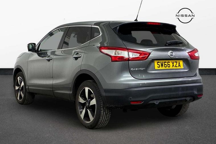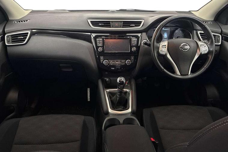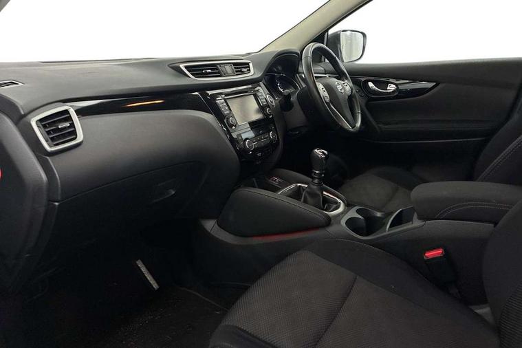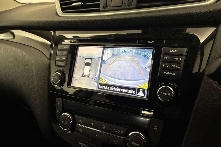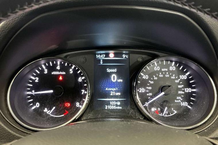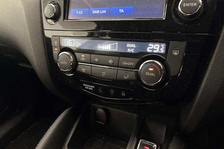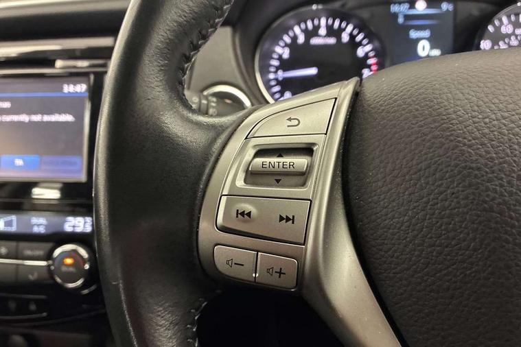 5" TFT driver information centre, 7" touch screen, Around View Monitor, Bluetooth phone integration system, Cruise control, Front and rear parking sensors, Lane departure warning system, Nissan connect sat nav system, Push button starter, Service interval indicator, Speed limiter, Speed sensitive power steering, Traffic sign recognition, Trip computer, 6 speakers, DAB radio/CD player, Steering wheel mounted audio controls, USB/aux input socket, 2 speed wipers+variable intermittent wipe, Automatic headlamp activation, Black honeycomb front grille, Body colour bumpers, Body colour door mirrors and handles, Chrome window surround, Electric folding and heated door mirrors, Electric front/rear windows, Front fog lights with chrome surrounds, High beam assist, Interior mirror with auto anti dazzle, LED daytime running lights, Rain sensor windscreen wipers, Rear privacy glass, Rear wiper, 12V socket, 60/40 split folding rear seat, Ambient interior lighting, Cloth upholstery, Driver's lumbar support, Driver/passenger front seatback pockets, Dual zone climate control, Footwell ambient lighting, Front armrest, Front cupholders x 2, Front headrests, Front seat belt pre-tensioners with load limiters, Height adjustable driver's seat, Height adjustable passenger seat with lumbar support, Illuminated glovebox, Isofix child seat preparation, Leather gearknob, Leather steering wheel, Luggage area divider, Map reading lamp, Pollen filter, Rake/reach adjustable steering wheel, Rear armrest with 2 cupholders, Rear headrests, ABS, brake assist and EBD, Active Trace Control, Child locks on rear doors, Curtain airbags, Driver/front passenger airbag, Electronic parking brake, ESP + traction control, Forward emergency braking, Height adjustable front seatbelts, Hill start assist, Side airbags, Three 3 point rear seatbelts, Tyre pressure monitoring system, Warning triangle and first aid kit, Alarm, Immobiliser, Intelligent Key, Remote central locking, 18" Diamond cut alloy wheels, Tyre puncture repair kit,
