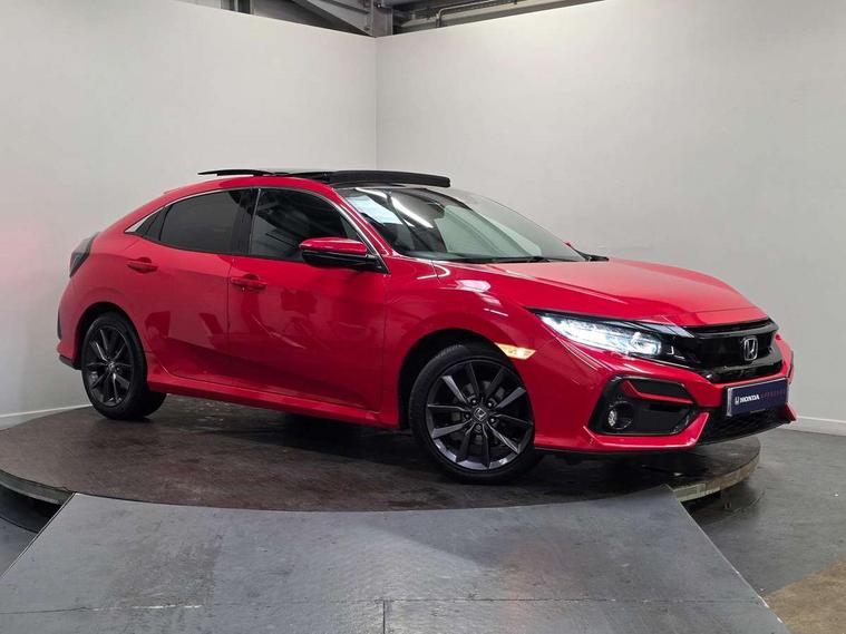 7" touch screen, Adaptive cruise control, Adaptive motion for electric power steering, Apple car play/Android Auto, BLIS (Blind Spot Information System) with dual power heated blind spot mirrors, Blue dashboard illumination, Bluetooth hands free telephone connection, Easy fuel capless refuelling system, Economy mode, Electric power steering wheel with variable gear ratio steering, Emergency stop signalling system, Forward collision warning, Front and rear parking sensors, Honda CONNECT with GARMN Navigation + 7" touchscreen, AM/FM, internet radio, aha app integration and internet browsing, Idle stop, Intelligent speed limiter, Lane departure warning system, Lane keep assist, Low speed following, Multi-information display, Rear parking camera, Road departure mitigation, Smartphone wireless charging plate, Traffic sign recognition, Adaptive damping system, Vehicle stability assist, 'Shark fin' mobile antenna, 11 speakers, 2x USB and HDMI, 465w Power audio system, Auxiliary socket for external MP3 player, Digital Audio Broadcast (DAB) Tuner, Premium audio system, Steering wheel mounted audio controls, Auto dimming rear view mirror, Automatic coming/leaving home lighting function, Automatic headlights with dusk sensor, Automatic rain sensing wipers, Black grille, Body colour door handles, Body colour door mirrors, Body coloured bumpers, Chrome window surround, Electric adjustable heated door mirrors, Electric front/rear windows/one touch operation, Electrically folding door mirrors, Fuel filler cap, Headlight washers, High beam assist, LED daytime running lights, LED front fog lights, LED Headlights, LED rear lights, Panorama glass roof, Power foldback door mirrors, Privacy glass, Rear spoiler, Rear wiper, Single exhaust tailpipe, 4 Cargo net hook, 60/40 split folding rear seat, Alloy pedals, Ambient light in roof, Blue meter illumination, Centre console storage and sliding armrest, Driver and front passenger seat electric lumbar adjustment, Driver's seat height adjustment, Driver/passenger front seatback pockets, Dual climate control air conditioning system, Front accessory power socket, Front map lights, Front/rear courtesy lights, Gear shift indicator, Glovebox light, Heated front seats, Heated rear seats, Isofix points, Isofix system on outer rear seats, Leather gear knob, Leather steering wheel, Leather upholstery, Luggage floor box, Paddle shift controls, Rear accessory power socket, Rear air vents, Rear armrest with cupholder, Shift indicator lighting (SIL), Sunvisors with illuminated vanity mirrors, Three height adjustable rear head restraints, Tilt/telescopic adjustable steering wheel, Tonneau cover, Trunk light, 5 three point seatbelts, ABS+EBD+Brake assist, Airbags - driver and front passenger, Anti-whiplash front headrests, Collision mitigation braking system, Deflation detection system, Driver SRS airbag (single stage inflation), Electronic parking brake with auto hold, Front and rear curtain airbags, Front and rear seat belts with emergency locking retractor (ELR), Front seatbelt pretensioners, Front side airbags, Hill start assist, Low speed safety system, Passenger airbag deactivate switch, Tyre pressure warning, Immobiliser, Mirrors and windows key fob, Security alarm, Selectable door unlock, Smart entry + Smart start, Superlocking, Ultrasonic security sensor, Black instrument panel, 17" Grey alloy wheels, Tyre repair kit,