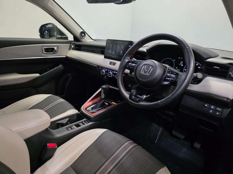 7" TFT instrument cluster, Adaptive cruise control, Adjustable speed limiter, Agile handling assist, BLIS (Blind Spot Information System) with Cross Traffic Monitor, Bluetooth hands free telephone connection, Drive modes select (Eco, normal and sport), eCall emergency system, Electric power steering, Emergency stop signalling system, Forward collision warning, Front parking sensors, Handsfree power tailgate with walkaway close, Honda CONNECT with navigation, 9" touchscreen, AM/FM/DAB/Apple Carplay and android auto, Idle stop, Intelligent speed limiter, Lane departure warning, Lane keep assist, Low speed following, Multi info display, Power meter, Rear parking sensors and rear view camera, Road departure mitigation, Tachometer, Traffic sign recognition, WiFi connectivity, Wireless charger, Vehicle stability assist, 'Shark fin' mobile antenna, 2 USB sockets in rear, 2x USB Front socket (1 data & 1 charge), 4 speaker + 4 tweeters, Steering wheel mounted remote controls, Auto dimming rear view mirror, Auto folding door mirrors, Auto headlight levelling, Auto high beam, Automatic coming home lighting, Automatic headlights, Automatic rain sensing wipers, Body colour bumpers, Body colour tailgate spoiler, Body coloured door handles, Electric front and rear windows, Electrically adjustable and heated door mirrors, Exclusive styling in black lower bumper, lower door garnish with orange accent, Fog garnish paint pewter gray, Bumper skid garnish sharp silver, Exclusive Styling in orange front console garnish, orange stiches on steering wheel and seats, Exterior and interior unique colour scheme (orange, white & blue accents), Front sequential turn, Front wiper de-icer, Headlight washers, Heated front windscreen, Heated rear window, High gloss side window surrounds, High level third brake light, LED cornering lights, LED daytime running lights, LED front fog lights, LED headlamps, Rear side wing doors, Rear wiper, Retractable/reverse auto tilt door mirrors, Roof rails, Smoke and clean lens LED rear lights, Trio colour ornament on grille, Two tone roof, Variable front intermittent wipers, Windscreen shadeband, 3 rear headrests, 3 seat bench in 2nd row, 60/40 split folding rear seat, Ambient interior lighting, Cargo net hooks, Courtesy lights, Driver seat back pocket, Driver's seat height adjustment, Driver/passenger sunvisors with illuminated vanity mirrors, Dual automatic air conditioning, Front and rear map reading lights, Front head restraints, Front seat armrests, Heated front seats, Heated steering wheel, Isofix points, Luggage area under floor storage box, Magic seat flexibility system, Manual height/reach adjust steering wheel, Meter illumination light, Paddle shift controls, Passenger seat back pocket, Rear centre armrest, Rear ventilation, Silver interior door handles, Silver interior panels, Single front passenger seat, Smooth leather steering wheel, Tonneau cover, Trunk cargo band, Trunk light, 3x3 point rear seatbelts, ABS+EBD+Brake assist, Anti-whiplash front headrests, Auto hold function, Collision mitigation braking system, Collision mitigation throttle control, Deflation detection system, Dual front SRS airbags, Electric child locks, Electronic parking brake, Front and rear curtain airbags, Front and rear safety belts with Emergency Locking Retractor, Front side airbags, Hill descent control, Hill start assist, Low speed safety system, Paddle deceleration control, Passenger SRS airbag cut-off device, Regenerative braking system, Door deadlocks, Honda super locks, Immobiliser, Keyless smart entry with push button start, Mirrors and windows key fob operation, Remote central locking with 2 remote folding keys, Security alarm, 18" Black cut alloy wheels, Tyre repair kit,