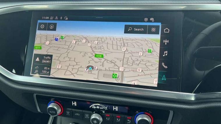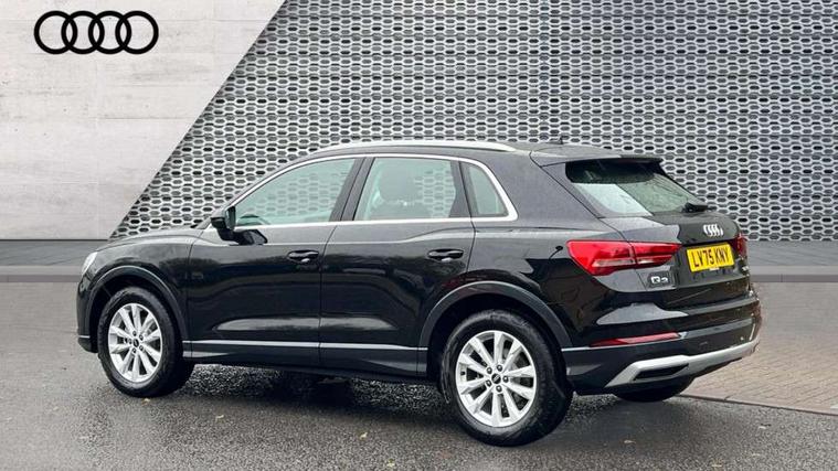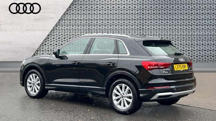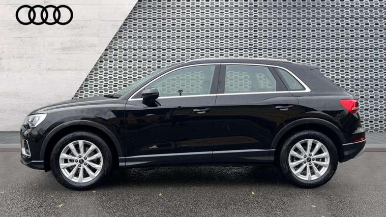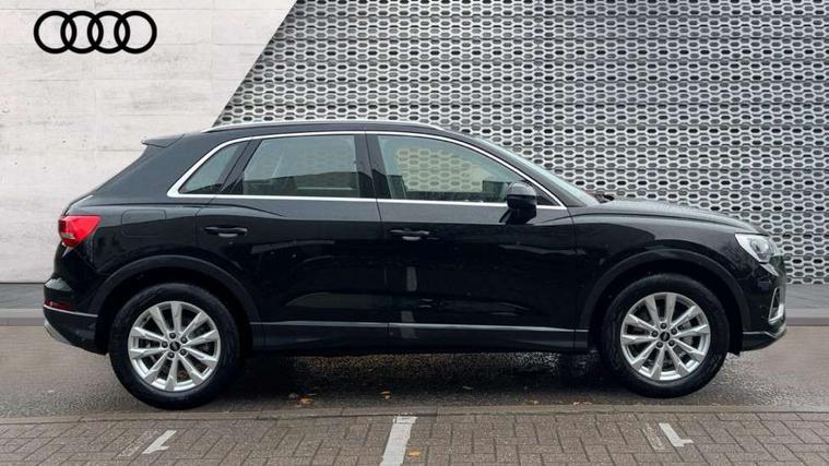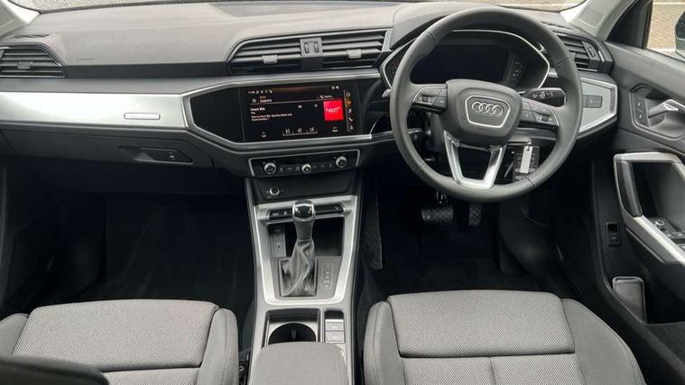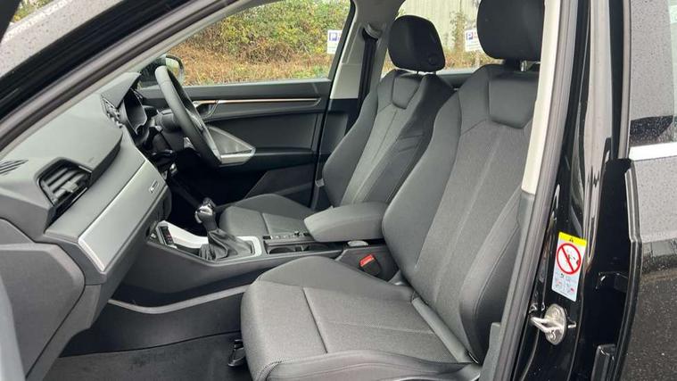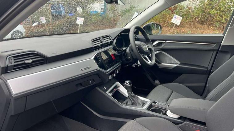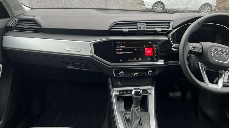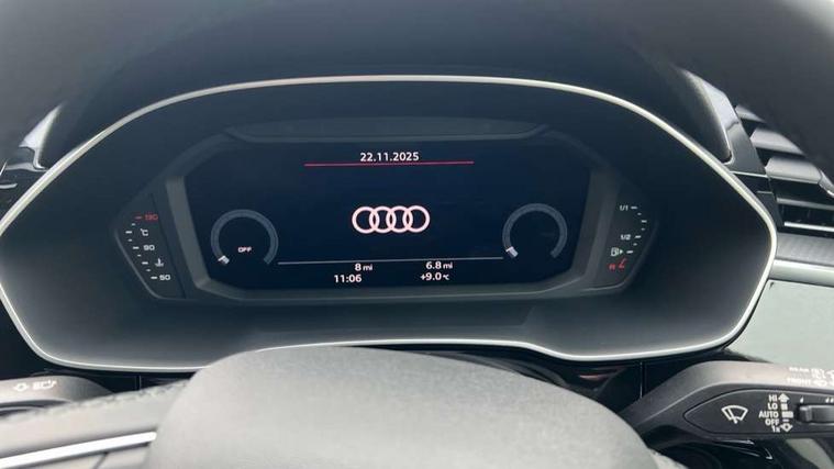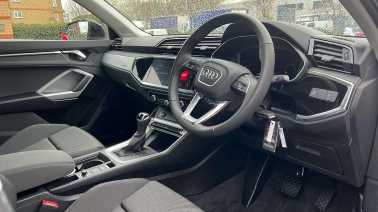Amazon alexa Integration, Audi connect safety and service, Audi drive select, Audi lane departure warning, Audi Virtual Cockpit - 10.25" display, Bluetooth interface, Camera based traffic sign recognition, Distraction and Fatigue warning, Legal emergency call, MMI Navigation Plus with high resolution 10.1 inch touchscreen colour display, Power operated tailgate, Progressive steering, Service interval indicator, Smartphone interface includes wireless Apple carplay/Android Auto, Start stop system with recuperation, Voice control system with natural language interaction, Standard suspension, 2 USB-C ports with charge and data functions, 6 passive loudspeakers, DAB digital radio module, Acoustic windscreen, Aluminium roof rails, Aluminium window trim, Anthracite black radiator grille, Auto dimming door mirrors, Auto dimming frameless rear view mirror, Electrically folding, adjustable and heated door mirrors with integrated LED side indicators and kerb view function for passenger side, Front and rear bumpers, wheel arch trims and side sill trims in contrasting Manhattan grey paint finish, Front and rear electric windows, Front fog lights, Front side air inlets in matt selenite silver, Front spoiler in matt selenite silver, Grille vertical bars in aluminium silver/Matt, High gloss black finish B and C pillars, LED headlights with LED daytime running lights, LED third brake light, Rain and light sensors, Rear diffuser strip in matt selenite silver, Rear side wing doors, Rear wiper, Variable front intermittent wipers, 12V socket in rear centre console, 3 seat bench in 2nd row, 3 spoke multi-function leather steering wheel, 40:20:40 folding with manual adjustment for 60:40 forwards/backwards position and backrest angle, Black carpet mats, Door sill trims with aluminium inlay, Dual zone electronic climate control, Electric lumbar support, Front and rear floor mats, Front and rear headrests, Front centre armrest, Height and reach adjustable steering wheel, ISOFIX child seat mounting for front passenger with airbag deactivation and outer rear seat including top tether attachment point for outer rear seats, Luggage compartment sill protection in stainless steel, Lunar silver cloth headlining, Manual front seats with height adjustment, Single front passenger seat, Non smoking pack - Q3, 3x3 point rear seatbelts, 6 airbags - Driver, front passenger, curtain and side windows, Audi pre-sense front with pedestrain and cyclist recognition, Electrically operated child locks on rear doors, Electromechanical parking brake, Electronic stabilisation control including ABS, ASR and EDL, Front seatbelt reminder, Hill descent control, Hill hold assist, Pre sense basic, Seatbelt monitoring, Tyre pressure warning, Warning triangle and first aid kit, Anti theft wheel bolts, Immobiliser, Remote central locking, Thatcham approved category 1 anti theft alarm, Aluminium look interior elements, Detail dashboard around MMI touch colour display in glass look, black with surround in aluminium look, Micrometallic silver inlay,
