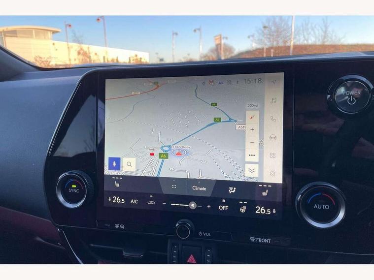 7" display in instrument binnacle, Blind spot monitoring with rear cross traffic alert, Bluetooth telephone connectivity, eCall emergency system, Electric speed sensitive power steering, Intelligent parking sensors - 4 front and 4 rear with object and pedestrain detection, Lane change flasher function, Lexus link connect - Cloud based navigation, cloud based voice assistant, always online and 9.8" VGA touchscreen, Push button starter, Reversing camera with back guidelines, Service interval indicator, Tailgate, Wireless Apple CarPlay/Android Auto, Wireless Smartphone charger, 6.6 kW onboard charger, All Wheel Drive (AWD), Hybrid automatic transmission, Vehicle Dynamics Integrated Management (VDIM), Vehicle Stability Control (VSC), 10 speakers, 4 USB ports - 2 front, one USB C, 2 rear USB C, DAB Digital radio, Auto dimming interior rear view mirror, Automatic headlights, Black roof, Double hidden exhaust pipes, Front and rear one touch power windows, with anti-jam protection, Heated and auto folding door mirrors, Illuminated door handles with puddle light, LED brake lights and rear lights with emergency brake signal, LED cornering lights, LED daytime running lights, LED front fog lights, LED Indicators, LED low beam and Hi-beam headlight, Power back door system, Privacy glass, rear doors and tailgate, Rain sensor windscreen wipers, Rear side wing doors, Rear wiper, Roof rails, 12V accessory port centre console and luggage compartment, 2 cupholders in front centre console, 2 way electrical lumbar adjustment for driver, 2 x fixed shopping bag hooks in boot, 2 x sun visors with vanity mirror and lamp, 3 seat bench in 2nd row, 4 x tie down hooks in the boot, 60/40 split folding rear seat, 8 way driver/passenger electrically adjustable front seats, Adjustable rear seat backrest, Ambient light in 64 colours, Card holder installed in driver and passengers sun visors, Centre armrest with storage box, Dual climate control air conditioning system, Front and rear head restraints, Front and rear textile carpet mats, Front passenger seat, Heated front seats, Heated steering wheel, LED interior illumination, Power adjustable leather steering wheel with paddle shifts, Premium Tahara leather upholstery, Rear centre armrest with 2 cupholders, Whiplash Injury Lessening (WIL) feature (active headrest) for seats, 3 point ELR front seatbelts with pretensioners, 3x3 point rear seat belts, ABS, Adjustable seat belt anchor points, Driver and front passenger 2 stage airbag, Driver/front passenger side airbags, Drivers knee airbag, E-Latch with safe exit assist, EBD + Brake Assist, ECB (Electronically Controlled Brake System), Electronic parking brake, Front and rear curtain shield airbags, Front center airbag, Front passenger seat cushion airbag, Hill assist control, Lexus safety system - dynamic radar cruise control, pre collision system day and night, lane tracing assist, road sign, automatic high beam, OTA, Manual rear child locks, Passenger airbag cut-off device, Traction control, Tyre pressure warning, Anti-theft system with alarm, intrusion sensor, glass breakage sensor, tilt sensor and engine immobiliser, Locking wheel nuts, Smart entry ( front/rear/boot), Speed sensitive auto door locking, Ultra Wide Band (UWB) Anti-theft system, VIN Window etching, 3D prism black Inlay, Organic inlay, Tyre repair kit,