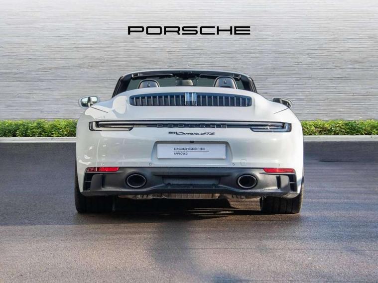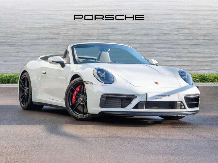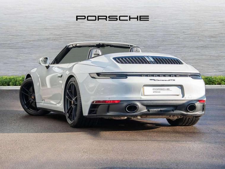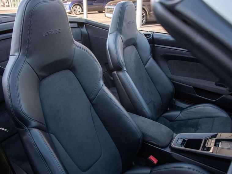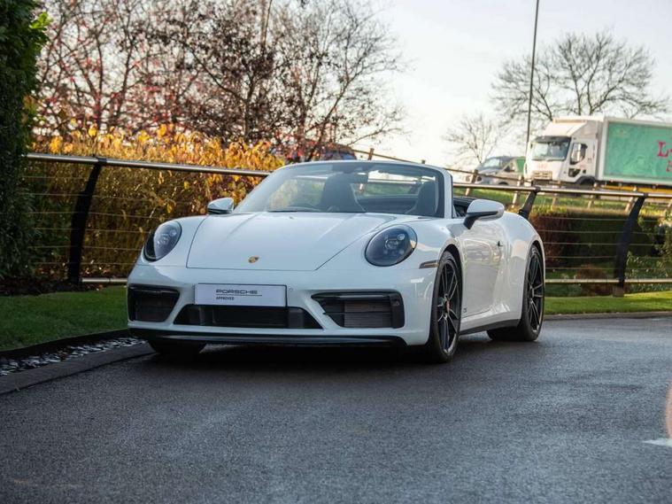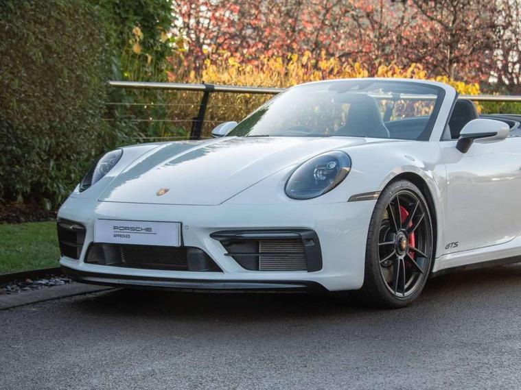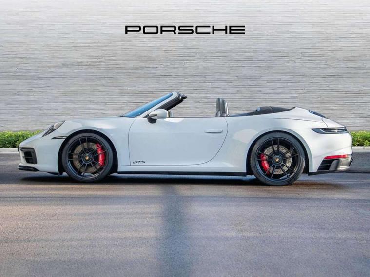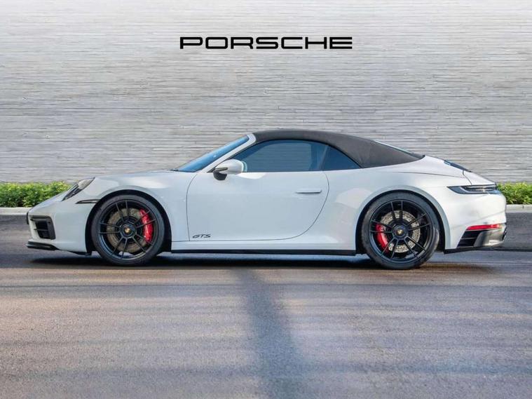10.9 inch centre display, Apple car play and Android auto, Automatic start/stop system, Digital display for selected gear in rev counter, eCall emergency system, Gear indicator in rev counter, Instrument cluster with central analogue rev counter and two 7-inch TFT displays, Porsche Communication Management (PCM) including online navigation module, mobile phone preparation, audio interfaces and voice control system, Porsche connect plus, Apple carplay, LTE telephone module with Sim card reader, wireless internet access and other Porsche connect services, Service indicator, Stationary management with HOLD function, Trip computer, Warn and Brake Assist with intergrated front cameras, 7 speed manual gearbox with sport chrono pack, Aluminium block and cylinder heads, Catalytic converters, Direct fuel injection (DFI), Dry sump lubrication, Expansion intake manifold, Four valve per cylinder, McPherson-strut suspension with anti-roll bar at front, PASM sport suspension 10mm lowered with helper springs added to rear, Porsche Stability Management (PSM), ABS with extended brake functions, Porsche Torque Vectoring Plus (PTV Plus) inc electronically regulated rear differential lock and fully variable torque distribution, Rear wheel drive, Twin turbocharger intercooled, Two gasoline particulate filter, VarioCam Plus variable valve timing and switchable valve lift, Water-cooled engine with thermal management, 4 valves per cylinder, 2 USB-C connectivity and charge ports in the centre console storage compartment, DAB Digital radio, Auto deploying rear spoiler, Automatic headlight activation including welcome home lighting, Body coloured bumpers, Electrically adjustable heated exterior mirrors on door waist rails, aspherical on driver's side, Engine compartment cover grille with vertical slats in black (high-gloss), Fully automatic fabric hood, electrically operated heatable glass rear screen, operable approx 30 mph and convenient operation by key remote, Green tinted heat insulating glass, Heated rear windscreen, Integral electrically powered wind deflector, Intelligent lightweight body in Aluminium/Steel composite construction, LED auxiliary light units in the front end with position lights, direction indicators and side indicators, PORSCHE black lettering integrated in taillight strip, Power rear windows, Power windows with one touch operation and door seal protection, Rear lid grille with vertical slats in satin black, Side skirts trim in black, Taillight strip with clear LED taillights including integrated parking lights and rear fog light, Trims on sideskirts in black, Windscreen washer system with aero wiper blades and washer jets, 12V socket in front passenger footwell, 2+2 seater with rear engine, Ascending centre console with storage compartment, Black race-tex on steering wheel rim, seat centres, door handles, door panel armrests, gear lever, centre console storage compartment lid partially, Dashboard trim strip, centre console trim, door panel trim strips in black and black brushed aluminium inlays, Driver and front passenger illuminated vanity mirrors, Front and rear head restraints, Heated front seats, Hood lining in black fabric, ISOFIX child seat mounting points on passenger seat, LED door lights, LED footwell lights, LED glove compartment lighting, LED ignition light, LED luggage compartment lighting, LED orientation light, LED reading lights, Lockable glove compartment, Luggage compartment lid release, Particle/pollen filter with active carbon filter, Split folding rear seats, Storage compartments in each doors, Two individual cupholders 1x as inlet in centre console and 1x passenger side, Two zone auto climate control with separate temperature settings for driver/front passenger, automatic air recirculation mode incl air quality sensor, Sport Design pack - 911 GTS, Auto deploying roll over protection system, Electric parking brake, Electromechanical power brake, Full size two stage airbags for driver and front passenger, Pedestrian protection, Porsche side impact protection system (POSIP) includes side impact protection in doors, head/thorax airbags for driver and front passenger, Tyre pressure monitoring system, Engine immobiliser with remote central locking and alarm system with ultrasonic sound based interior surveillance, Porsche vehicle tracking system (PVTS Plus),