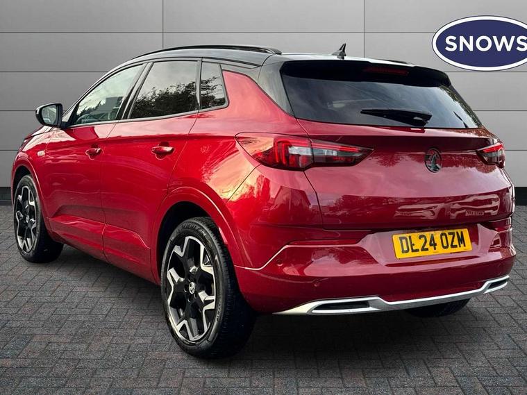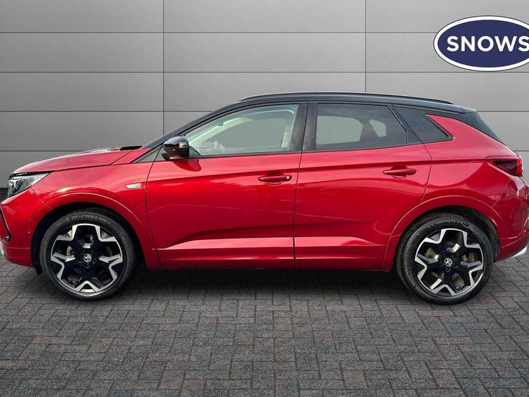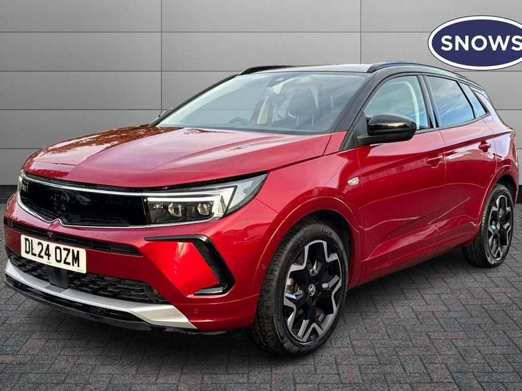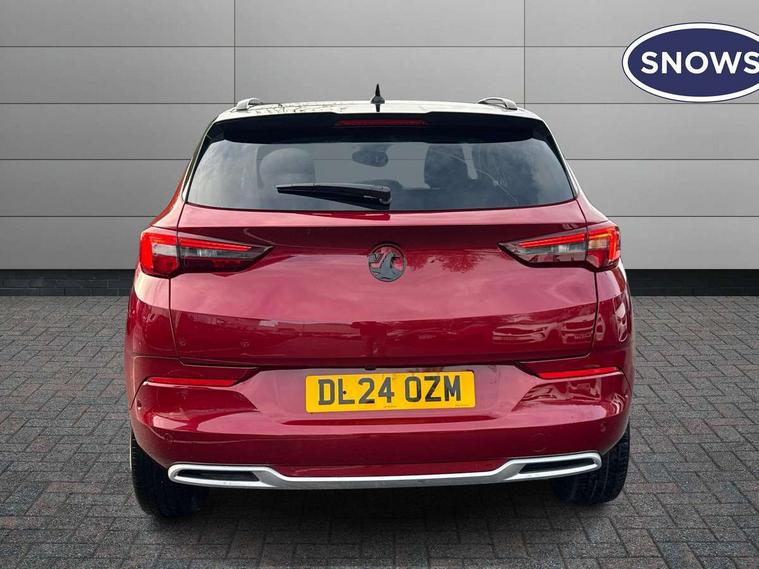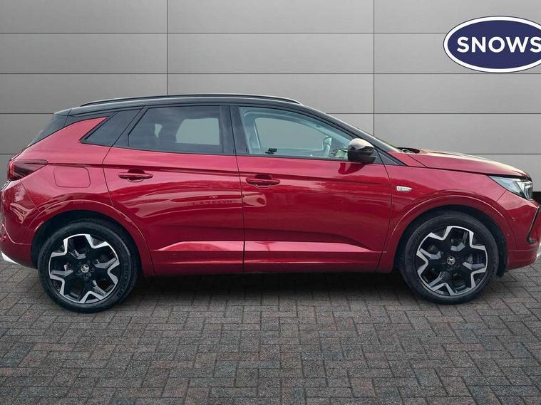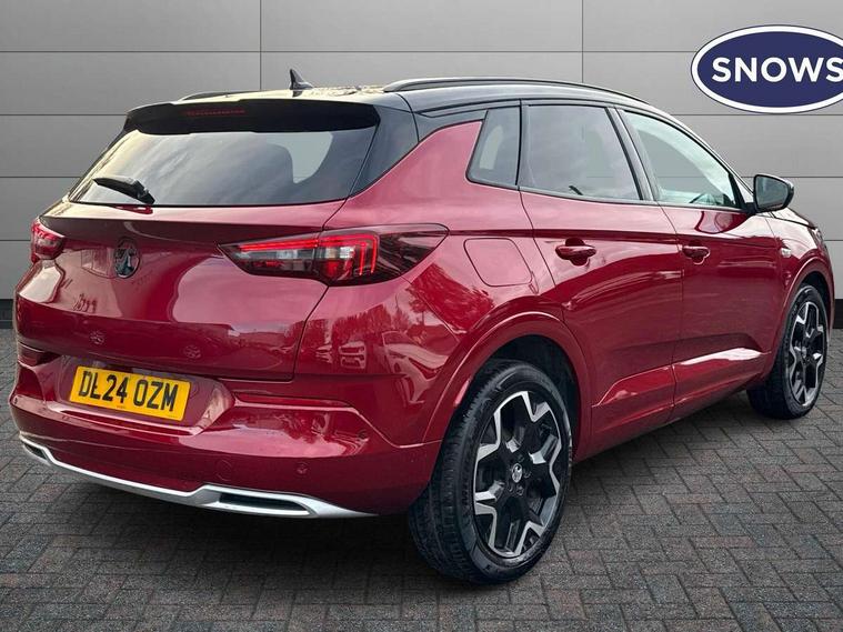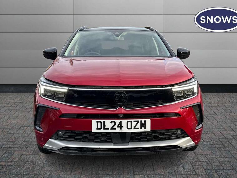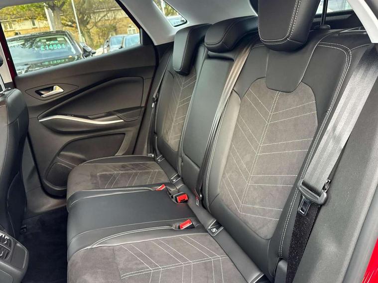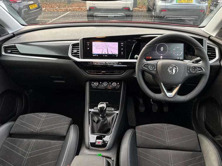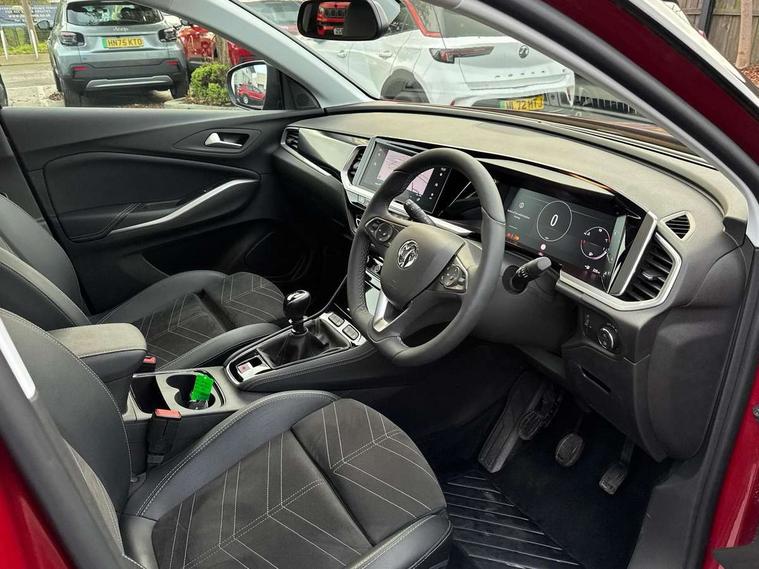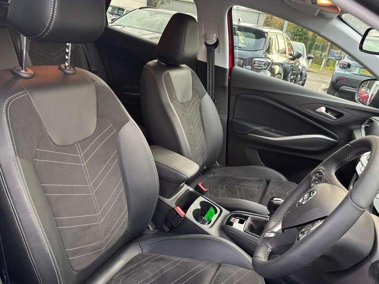 Bluetooth + USB, Central facia display with digital clock, outside air temperature and audio information, Cruise control with speed limiter, Digital fuel gauge with low fuel level warning light, Digital rev counter, Digital speedometer, Digital water temperature gauge with warning light, Driver drowsiness alert system, Driver information - Total mileage, service indicator, oil life, Front and rear parking distance sensors with 360 degree rear view camera and advanced park assist, Gearshift up/down indication light, Lane departure warning system, Lane keep assist, Lights on audible warning, Multi function trip computer - Trip odometer, vehicle range, average speed and fuel economy, instantaneous fuel economy and driving time, Multimedia Pure Panel Navigation System incl 10" colour touchscreen, 12" digital instrument cluster & satellite naviagtion, Power operated tailgate with foot sensor, RDS with traffic programme, Side blind spot alert, Speed sensitive electric power assisted steering, Speed sign recognition, Start/stop system, Vauxhall connect including Emergency call (SOS e-call) and Breakdown call (b-call), Wireless charger for mobile devices, Anti-roll bars, Compound crank rear suspension with coil springs and gas pressure dampers, Independent decoupled MacPherson strut front suspension with gas pressure dampers and coil springs, anti-roll bar, AM/FM and DAB radio, Six speaker - four front + two rear, Smartphone interface with apple carplay and android auto, Steering wheel mounted audio/phone/cruise controls, Automatic lighting control, Automatically dimming anti dazzle rear view mirror, Black door mirrors, Black side window trim, Body colour door handles, Body colour upper front bumper, Carbon black lower front and rear bumpers, protective wheel arches and lower door cladding, Collapsible windscreen wipers, Dark tinted rear windows, Door to door illumination, Electric adjustable/heated/folding door mirrors, Electrically operated front and rear windows with safety auto reverse and one touch up/down facility, Front wiper system spraying directly from wipers, Hazard warning lights, Heated rear screen with timed cut off, Heated windscreen, High beam assist, High gloss black cladding, High gloss black exterior detailing, High gloss black Griffin for Vizor and tailgate with high gloss black Grandland tailgate lettering, High gloss black protective front and rear skid plates and C-shape bumper inserts, High gloss black roof rails, High level centre rear brake light, IntelliLux adaptive LED pixel headlights and LED tail lights, Intermittent rear window wash/wipe, LED daytime running lights, LED front fog lights, Magic wash, Manual headlight beam levelling, Rain sensor windscreen wipers, Rear side wing doors, Rear spoiler, Reversing light, Shark fin aerial, Soundproof insulated windscreen, Two speed windscreen wipers with variable intermittent wipe, Upper and lower bumper design, Vizor front grille, Welcome lighting, 12V electrical accessory socket in front, 3 bench rear seats in 2nd row, 3 spoke heated flat bottom leather effect steering wheel with satin chrome effect bezel, 6 way adjustable Ergonomic active heated sports style front seats AGR approved with seat cushion extension and lumbar adjustment, 60/40 split folding rear seat with centre rear seat armrest and load though facility, Advanced predictive logic control system using a sun sensor, Alcantara cloth upholstery, Ambient centre console downlighter, Automatic air direction and fan speed with manual override, Black premium leather effect side bolsters, Charcoal filter, Chrome effect interior door handles, Covered storage compartment in centre console and in driver armrest, Driver's centre armrest, Driver/passenger sunvisors with illuminated vanity mirrors, Dual zone electronic climate control, Front door pockets with 2.6 litre capacity, Front seat back storage pockets, Fully carpeted luggage area, Height adjustable headrests, Illuminated luggage area, ISOFIX on front passenger and rear outer seats, Luggage compartment cover, Reach + rake adjustable steering column, Rear centre seat head restraint, Rear door pockets with 1.8 litre capacity, Rear passenger compartment heating ducts, Rear reading lights, Two drinks holders in centre console, Anti-lock braking system (ABS), Automatic emergency braking with pedestrian detection, Child proof locks on rear doors, CSC - Cornering stability control, Deactivation switch for front passenger front and side impact airbags, Deflation detection system, Driver airbag, Dual seatbelt pretensioners on front seats, EBD - Electronic brakeforce distribution, Electronic parking brake, Electronic stability program (ESP) including traction control, Front brake ventilated disc 304mm diameter, Front passenger airbag, Front seat side impact airbags, Full-size curtain airbags for driver and front passenger, Hill start assist, Hydraulic Brake Assist (HBA), Inertia reel lap and diagonal seatbelts for all seats, Load limiters on outer rear seatbelt retractors, Pretensioners on outer rear seatbelt retractors, Rear brake ventilated disc 268mm diameter, Smart seatbelt reminder for front and rear seats, Tyre pressure monitoring system, Central locking, Deadlocking system, Electronically protected audio equipment, Engine deadlock immobiliser, Keyless entry and start, Locking wheel nuts, Remote security alarm system, Black door panels with black premium leather effect inserts, Dax decor facia panel with palladium medium finish, 19" diamond cut bi-colour alloy wheel,