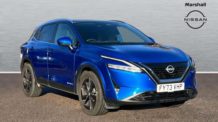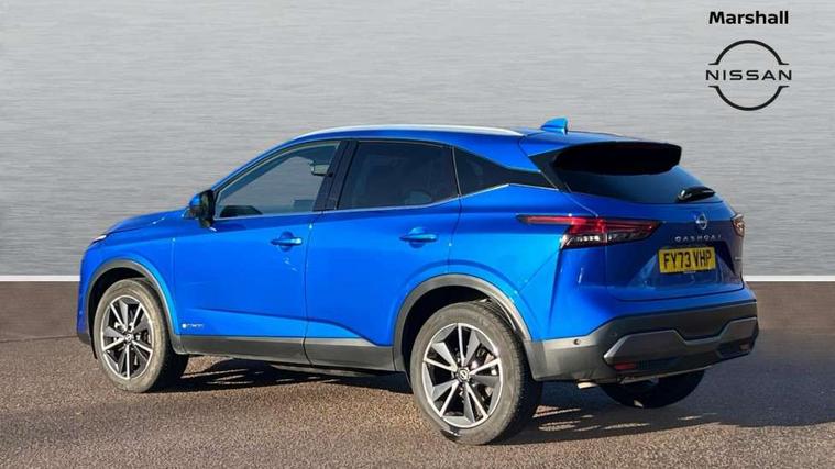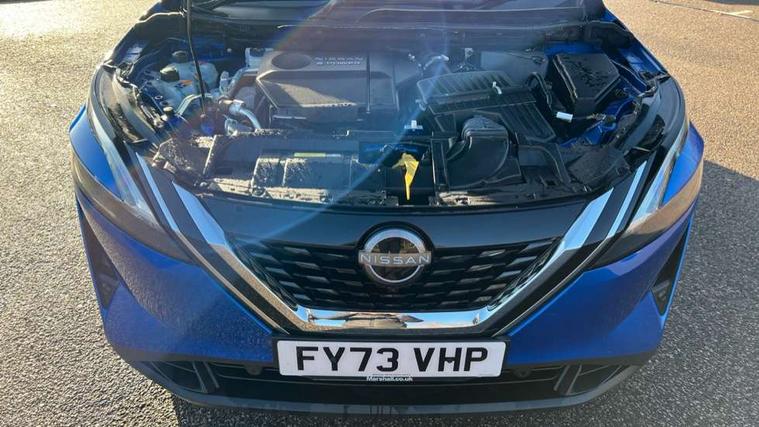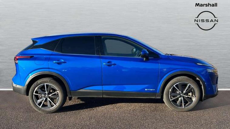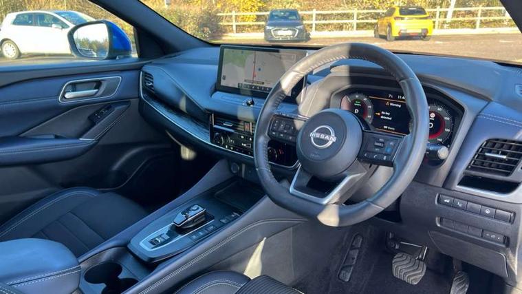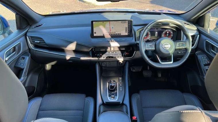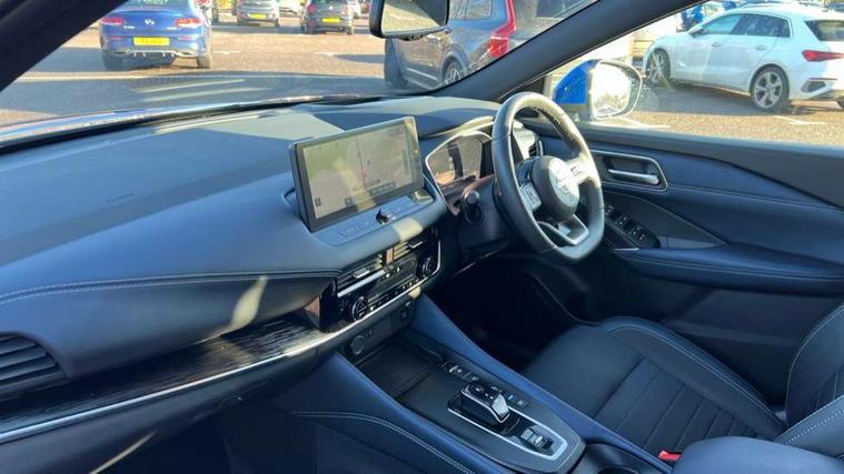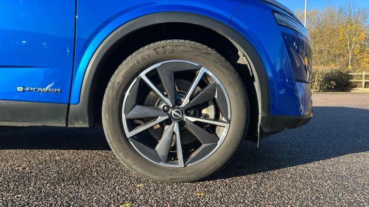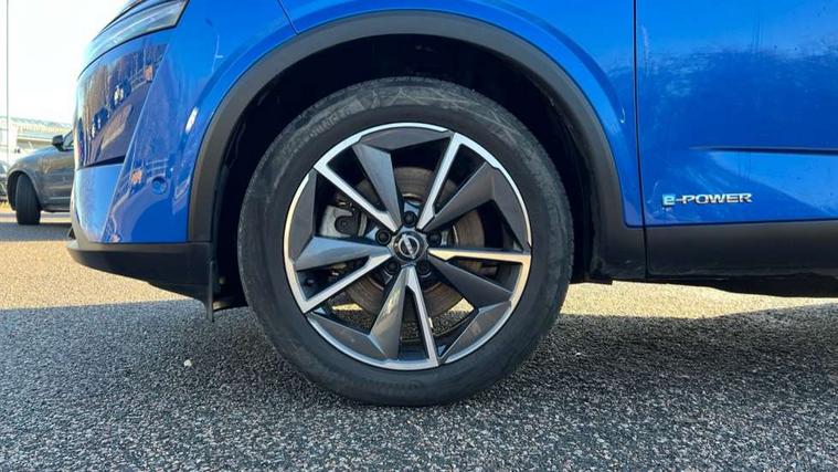 Advanced windscreen head up display, Blind spot warning, Drive modes (sport, normal, eco), e-Pedal step, Electric speed sensitive power steering, Emergency and breakdown call, Front and rear parking sensors, Full Digital 12.3" TFT Digital Combimeter, Google maps services - search, weather, 3D maps and Google street view, Hands free power tailgate, Idle stop/start system, Intelligent around view monitor, Intelligent Cruise control (ICC), Intelligent driver alert system, Intelligent forward collision warning, Intelligent lane intervention, Lane departure prevention, Lane departure warning system, Lane keep assist, Moving object detection, Nissan connect 12.3 inch touchscreen infotainment system, Nissan connect navigation, ProPILOT with Navi-Link, Push button starter, Rear cross traffic alert, Rear view camera, Remote control services - door locks, lights, horn and car locator, Telematics - notifications and connectivity services, TomTom live traffic services, Traffic sign recognition with legal speed adjustment, Trip computer, Virtual personal assistant and firmware over the air capability, Wireless Apple CarPlay and wired Android Auto, Wireless charging pad, 6 speakers, AM/FM audio system with DAB, Bluetooth audio streaming, Front USB connections (Type-A and Type-C), Rear USB charging only ports (Type-A and Type-C), Auto dimming rear view mirror, Auto rear wiper when reversing, Automatic hazard signal with emergency stop signal, Body colour mirror caps, Body coloured door handles, Bodyside mouldings, Chrome side window finisher, Door handle with button, e-POWER badging, Electric auto folding door mirrors, Electrically adjustable and heated door mirrors with LED turn indicator, Follow me home headlights, Front and rear LED turning signals, Headlights auto levelling system, Intelligent auto headlights, LED 3rd brake light, LED daytime running lights, LED headlights with adaptive driving beam, LED rear lights, One touch front and rear electric windows with remote opening and closing, Partially body coloured bumpers, Privacy glass, Rear bumper with graphite insert, Rear reversing light (bulb lighting), Rear roof spoiler, Rear side wing doors, Rear styling plate, Shark fin antenna, Splash free rain sensing wipers, Super UV and infrared cut glass, Thermaclear heated windscreen, Three blink turn signal, 12v power socket in dashboard and luggage, 2x Rear coat hooks, 3 bench rear seats in 2nd row, 3 rear headrests, 4 folding assist grip, 6 Luggage hooks - 4 on floor, 2 on side, 60/40 split folding rear seat bench, Ambient lighting around centre console, Ambient lighting in front doors, Centre console storage tray, Chrome interior door handles, Cloth/syntech leather monoform upholstery, Dark black/blueish PVC wrapping, Dark headlining, Driver and front passenger sunvisors with illuminated vanity mirrors, Driver seat back pocket, Dual zone automatic climate control with pollen filter, e-POWER shifter, Electrically adjustable driver seat, Electrically adjustable lumbar support for driver, Front and rear door storage, Front centre console and armrest, Front cupholders x 2, Front door with bottle holders, Glovebox with light, Hard trunk cover, Heated front seats, Heated steering wheel, Height adjustable driver's seat, Height adjustable front headrests, Height adjustable passenger seat, Leather steering wheel, Luggage board system, Luggage space lighting, Manual lumbar support on passenger seat, Manually adjustable passenger (slide recline + lifter), Multifunction steering wheel, Passenger seat back pocket, Rear armrest with 2 cupholders, Rear door bottle holders, Single front passenger seat, Soft PVC kneepad, Steering wheel switches, Tilt/telescopic adjustable steering wheel, Two rear isofix child seat anchorage points with top tether, Welcome light and doors with console tray ambient lighting, Glass roof pack with roof rails - Qashqai, 3x3 point rear seatbelt pretensioners + load limiters, ABS with EBD and brake assist, Active brake limited slip, Auto hold function, Child locks on rear doors, Curtain and front side, far side airbags, Driver and passenger airbags, Driver, passenger and 2nd row rear seat belt reminder, Electronic parking brake, Front seatbelt pretensioners + load limiters, Height adjustable front seatbelts, Hill start assist, Intelligent blind spot intervention, Intelligent front emergency braking with pedestrian, cyclist recognition and junction assist, Intelligent rear automatic braking, Tyre pressure monitoring system, Vehicle dynamic control, Capless fuel filler, Engine immobiliser, Intelligent Key, Remote central door locking with deadlocking, Thatcham Cat.1 alarm, Interior instrumental panel C finisher, 19" Diamond cut alloy wheels, Tyre puncture repair kit,
