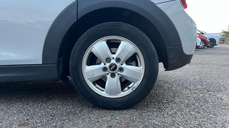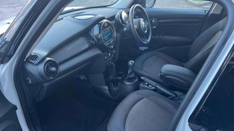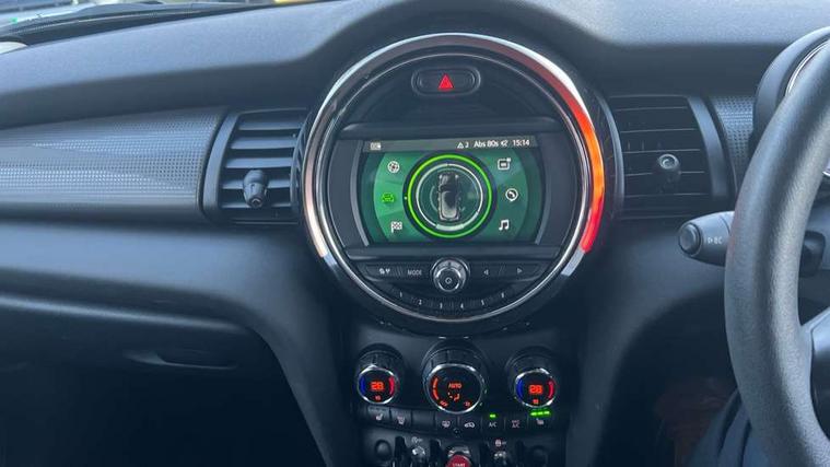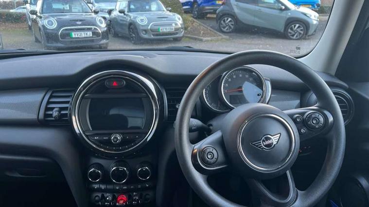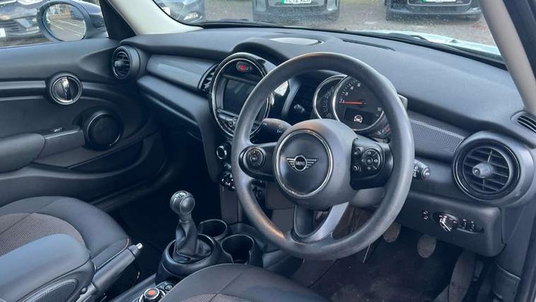 Automatic start/stop function with brake energy recuperation, Compatible mobile phone bluetooth with audio streaming, Electro-mechanical speed dependant steering assistance, Instrument cluster, Mini E-call, MINI TeleServices, On board computer, Service interval indicator, Double Vanos system, Fully variable valve control, Gear change indicator display, High precision injection, 6.5" touchscreen with LED ring, FM tuner and DAB digital radio, Automatic headlight activation switch, Body colour fuel filler cap, Chrome border high gloss black slats radiator grille, Dynamic brake lights, Electric front+rear windows, Heated rear window, Heated windscreen washer jets, LED headlight with closed ring and daytime driving lights, Left exhaust tailpipe with chrome finisher, Metal door sill strips with MINI imprint, Model logo Cooper on right of tailgate, Rain sensor window wipers, Rear fog lights, Rear LED lights with union jack design, Rear window wiper, Side scuttle panel with integrated indicator, Sun/heat protection glass, White indicator lenses, 12V Accessory socket in centre console, 4 lashing eyes in luggage compartment, 60/40 split folding rear seat, Carbon Black colour line, knee roll and door armrests, Chrome interior highlights, Colour line - Carbon black, Cupholders, Front and rear head restraints, Front and rear isofix with front passenger airbag deactivation, Glove compartment, Height and length steering column adjustment, Interior lighting with 12 basic colours selectable via toggle switch in roof, Leather gearshift lever and handbrake gaiters, LED reading lights, vanity mirror lights, front foot well light and spotlight on front seats, Manual air conditioning, Mechanical seat adjustment, driver seat height adjust, forward/back and front seats backrest, Mini logo projection on floor from drivers exterior mirror, Multifunction steering wheel, Satellite grey headlining, Storage compartments in doors, Sunvisors with vanity mirrors, 3 point seatbelts on all five seats, 6 Airbags - front, side, head and seat belt tensioners, Anti-lock braking system (ABS), DSC - Dynamic Stability Control, Front and rear disc brakes, Hill start assist, Single tone fanfare horn, Tyre pressure monitoring system, Alarm system with tilt sensor, monitoring doors, bonnet interior and tailgate, Electronic vehicle immobiliser, Start/stop toggle with keyless go, Tool kit, Tyre repair kit,