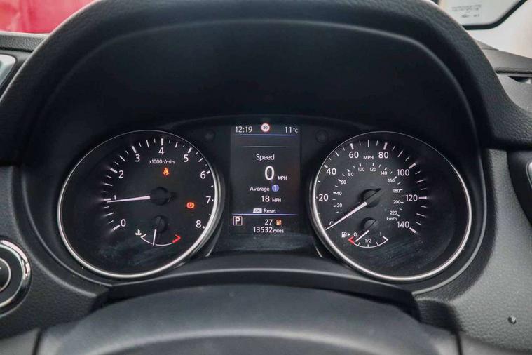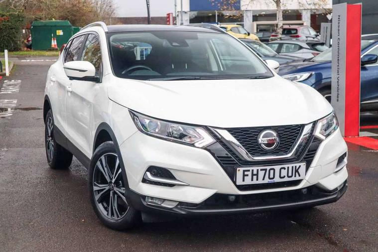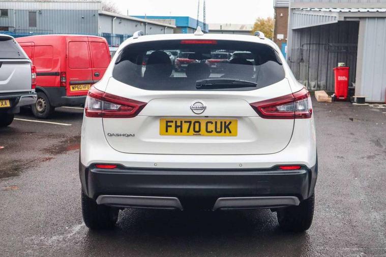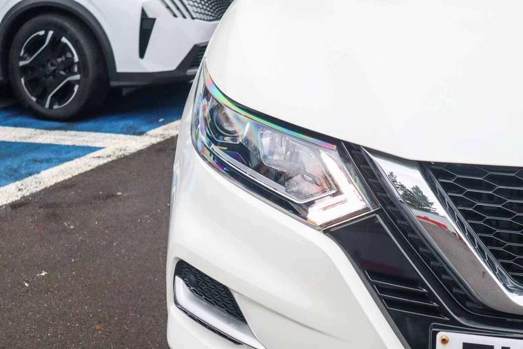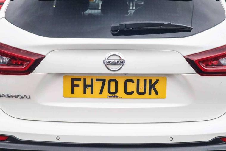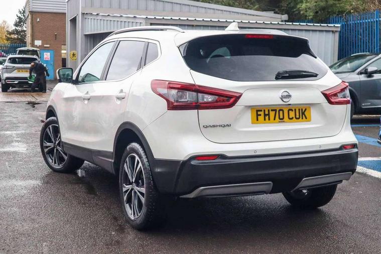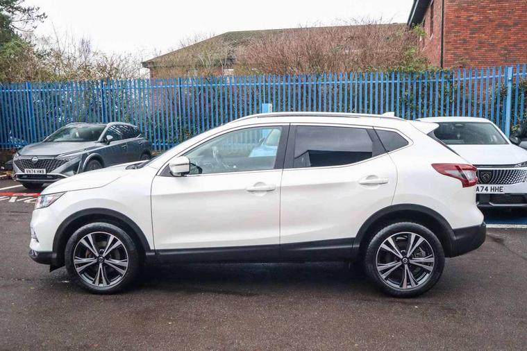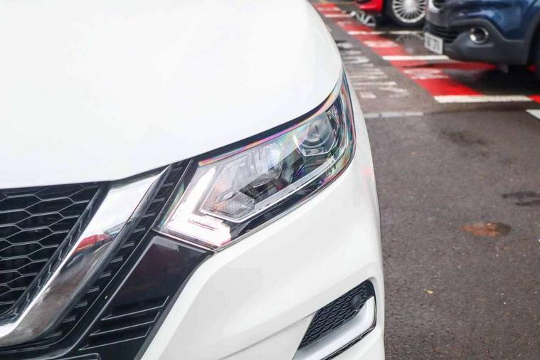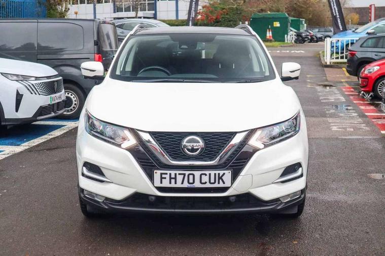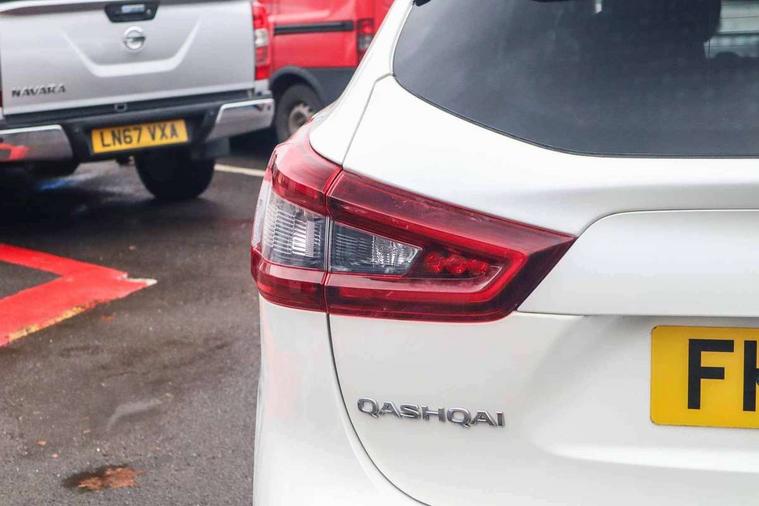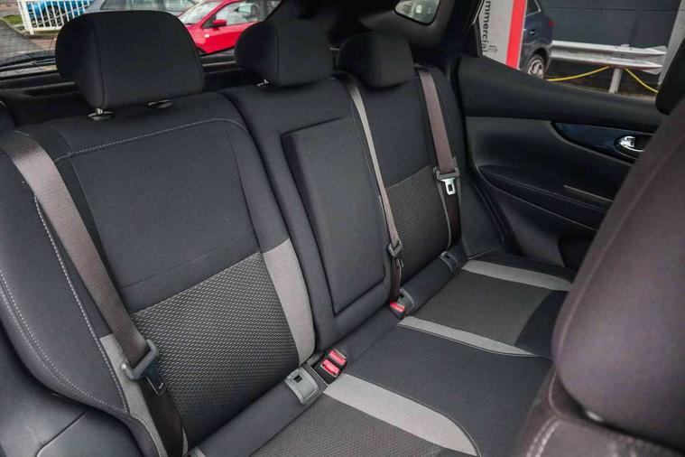 360 degree Intelligent around view monitor, Advanced drive assist display 5'' TFT coloured screen, Apple car play/Android Auto, Bluetooth connectivity, Cruise control + speed limiter, Electric speed sensitive power steering, Front parking sensors, Idle stop/start system, Intelligent park assist, Lane departure warning system, Nissan connect evo 7" touchscreen navigation and entertainment system, Normal or sport selectable steering, Outside temperature sensor, Premium Tomtom connected services, Push button starter, Rear parking sensors, Service interval indicator, Smartphone integration, Traffic sign recognition, Trip computer, Voice control system, Nissan chassis control (intelligent ride control, intelligent trace control, intelligent engine brake), 6 speakers, AM/FM radio, CD audio system, Aux-in socket, DAB Digital radio, Steering wheel mounted audio controls, USB port, Anti dazzle rear view mirror, Auto wipers, Body colour bumpers, Body coloured door handles, Body coloured door mirrors, Chrome window surround, Daytime running lights dip function when turn signal applied, Electric folding door mirrors, Electric front and rear windows with one touch illuminated window controls, Electrically adjustable door mirrors, Front fog lights, Halogen headlights, Heated door mirrors, High beam assist, Intelligent auto headlights, LED indicators in door mirrors, Matt silver roof rails, Privacy glass, Rear roof spoiler, Rear wiper with reverse link, Shark fin antenna, Signature LED daytime running lights, Silver rear styling plate, Underbody vortex generators, 2 X front 12v power sockets, 3 height adjustable rear headrests, 60/40 split folding rear seat, Ambient interior lighting, Ambient lighting around centre console, Bi-colour cloth upholstery, Boot lighting, Centre console storage box/armrest, Chrome interior door handles, Driver's seat manual height adjust, Dual zone climate control, Front and rear door pockets with bottle holders, Front and rear seat belt pre-tensioners with load limiters, Height adjustable front headrests, ISOFIX restraints on outer rear seats x2, Leather D shaped steering wheel, Leather gear lever, Leather knee pad, Luggage board system, Manual height adjustable passenger seat, Manual lumbar support on driver seat, Manual lumbar support on passenger seat, Monoform front sport seats with plastic backboard, Parcel shelf stow function under luggage board, Pollen filter, Rear armrest with 2 cupholders, Synthetic leather wrapped door handle with contrasting stitching, Tilt/telescopic adjustable steering wheel, Velour floor mats, Glass roof pack - Qashqai, 6 airbags - Driver, front passenger, curtain and side airbags, ABS, ESP, EBD and brake assist, Auto hold function, Child locks on rear doors, Electronic parking brake, Front and rear seat belt warning, Height adjustable front seatbelts, Hill start assist, Intelligent emergency braking with pedestrian recognition, Manual passenger airbag deactivation function, Three 3 point rear seatbelts, Tyre pressure monitoring system, Anti-theft immobiliser, Intelligent Key, Remote central locking, Thatcham Cat.1 alarm, Carbon graphite dash trim, 18" Two tone alloy wheels,