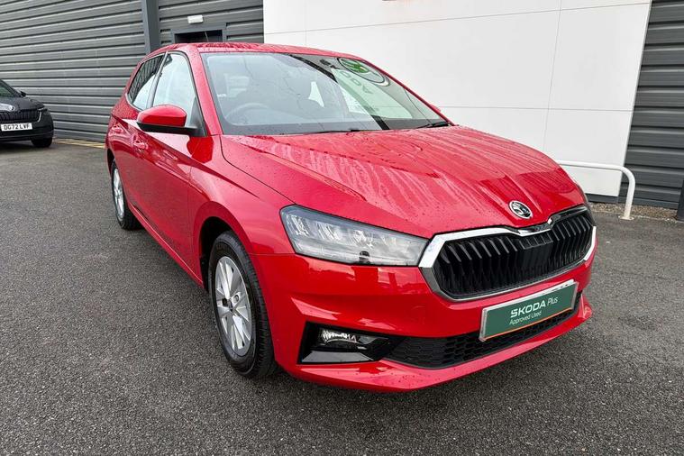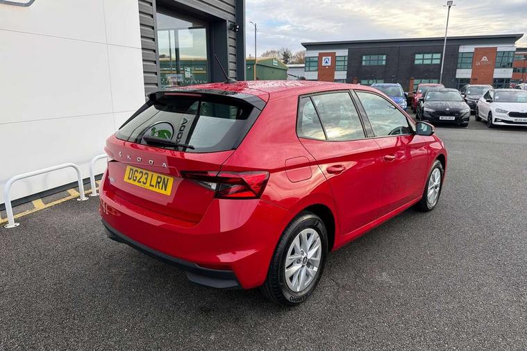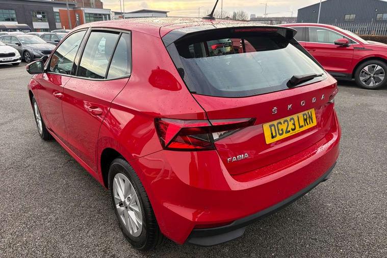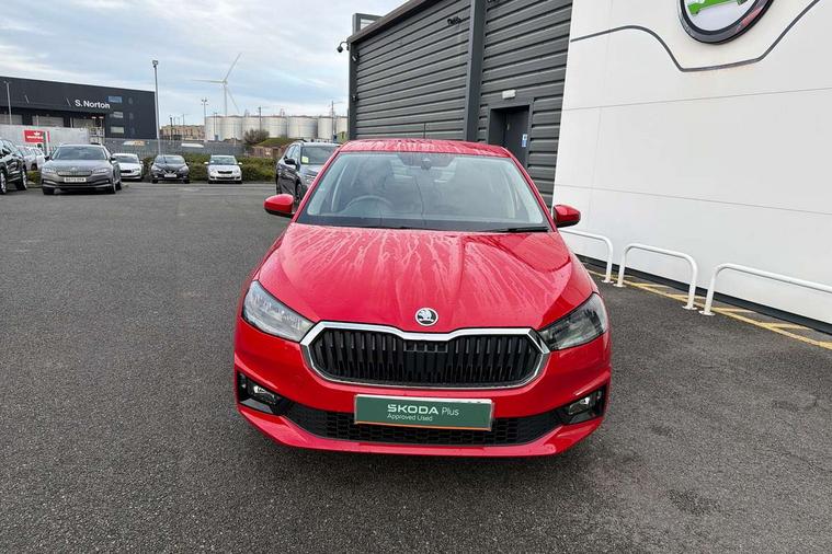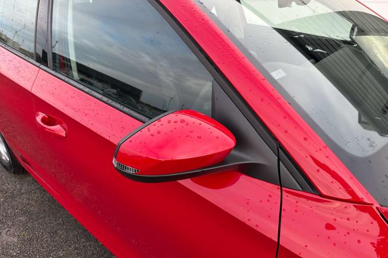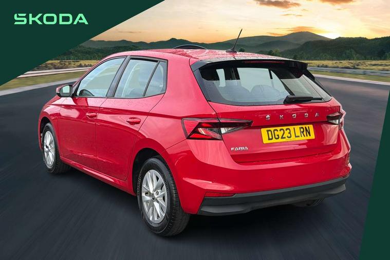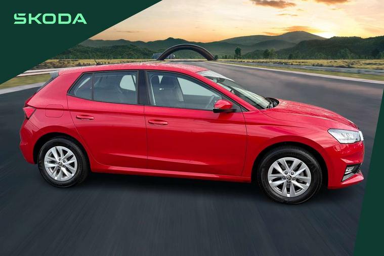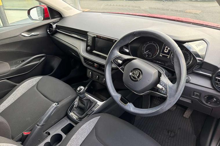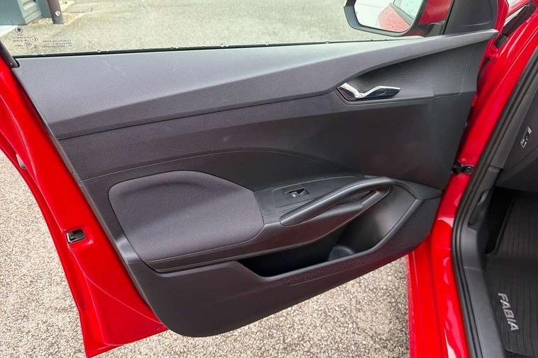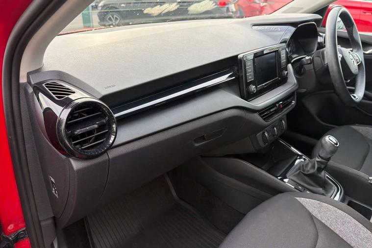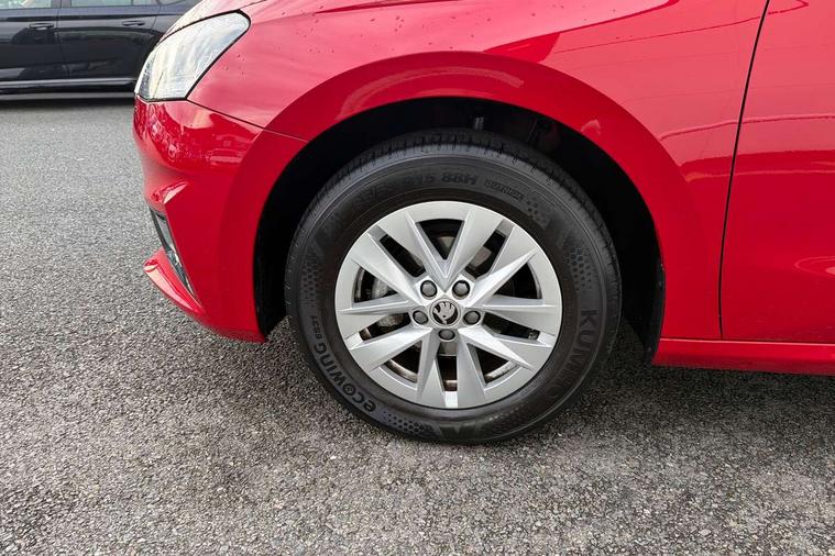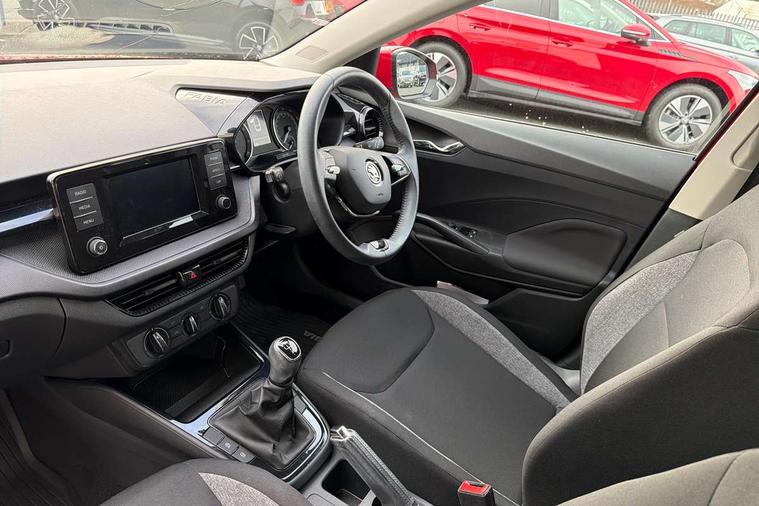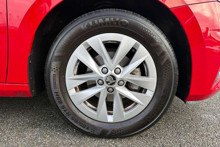 Bluetooth connection, Driver alert system - DAS, Electromechanical power steering, Exterior temperature gauge, Lane assist including road edge detection, Multifunction trip computer in black and white, Service interval indicator, Speed limiter, 2x USB-C in the front (for data transmission and charging), 4 speakers in front, Auxiliary socket for external MP3 player, DAB digital radio reception, Radio Swing with 6.5" colour display, Basic LED Headlights, Basic rear lights, Body colour door mirrors, Body coloured bumpers, Dimming rear view mirror with black frame, Door mirror integrated indicators, Electrically adjustable and heated door mirrors, Electrically adjustable front windows with function auto up/down, Front fog lights, Front window wiper intermittent control, Headlight range control - Automatic, Ice scraper in fuel cap, LED daytime running lights with coming and leaving home feature, Mechanical adjustable rear windows, Rain sensor, Rear LED fog light, Rear side wing doors, Rear window wiper with washing nozzles, Roof mounted spoiler, SKODA tailgate lettering in chrome, Third brake light, 2 reading lights in front and 2 reading lights in rear, 2 spoke leather multifunction steering wheel, 3 rear headrests, Backrest split and folding, Central console with fixed cup holder and storage box, Chrome handbrake release button, Fabric upholstery, Gearshift knob/handle in leather, Grain satin black interior door handles, Hand brake lever handle in leather, Height adjustable front headrests, Height adjustable front seats, Height adjustable steering wheel, ISOFIX and TopTether anchorage points to the outer rear seats, ISOFIX and TopTether on the front passenger seat, Luggage compartment lighting, Manual air conditioning, Manually adjustable lumbar support in front seats, Pollen filter, Rear seat bench unsplit, Single front passenger seat, Storm grey headlining, Sun visors with mirror and airbag label on passenger side, Ticket holder, 3-point height adjustable front seats belts with pretensioner and force limiter, Automatic warning lights in case of crash, Driver and passengers airbag with switch off function, e-Call+, ESC including ABS, MSR, ASR, EDS, HBA and XDS, Front and rear seat belt warning, FRONT ASSIST (AEB City and AEB Inter Urban), Front side airbags, Head airbags, One tone horn, Pedestrian protection, Three rear 3-points safety seat belts with pretensioner and force limiter including stop function for outer rear seat belts, Tyre pressure monitoring system, Anti-theft alarm system including immobiliser, interior monitoring, backup horn, and towing protection, Central locking with radio remote control, interior controls, SAFE function and 2 foldable keys, Black painted air vents, Glossy black decorative trim, Grain satin black central console cover, Grain satin black lower decorative trim, Satin black door and side trim panel in front, Anti-theft wheel bolts protection, Super-low rolling resistance tyres,