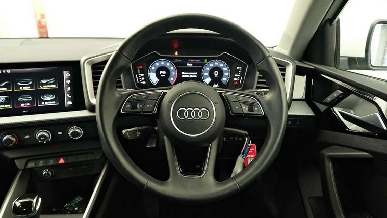 10.25" Digital instrument cluster display classis style instrument dials + speed, odometer, time, outside temperature, telephone menu + fuel level warning, Audi connect safety emergency and service including E-call, Audi drive select - power steering assistance + engine + gear shift 3 preset modes (auto, dynamic, efficiency and an Individual mode), Audi smartphone interface with connect compatible smartphone via USB directly MMI display + Nav, music, third party apps controlled via MMI controller, Automatic start/stop system, Bluetooth interface, Cruise control, Driver's information system, Electromechanical power steering, Lane departure warning system, Service interval indicator, Speed limiter, Voice control system, Washer fluid level indicator, Dynamic suspension, 1 x SDXC card reader, 2 x USB type C connection points, DAB Digital radio, MMI radio plus with 8.8" colour MMI display screen and MMI touch, Auto dimming rear view mirror, Body coloured bumpers, Body coloured door mirrors, Electric front and rear windows, Electrically adjustable, heated, folding door mirrors with integrated LED side indicator, Front side air inlets in grained matt black and C frame in titanium black, Heat insulating glass windscreen and side windows, Heated rear windscreen, LED headlights with LED rear lights + dynamic rear indicators + headlight adjustment and high beam, turning light + LED daytime running lights, Radiator grille and rear diffuser in matt titanium black, Radiator protective grille frame in matt aluminium silver, Rain and light sensors, Rear fog lights, Rear wiper, Scandium grey tailpipe trim, Side front spoiler lips in grained matt black, 12V socket in centre console with two cup holders, 3 rear seats with headrests, 40:60 Split folding rear seat or folded fully, Door sill trims with aluminium inlay, Driver and passenger seat with manual height adjust with forward and backwards adjustment, Front head restraints, Front/rear floor mats, Height and reach adjustable steering wheel, ISOFIX child seat mounting for front passenger and outer rear seats including top tether attachment point of outer rear seats, Leather gear knob with aluminium trim, Leatherette handbrake grip, Luggage compartment light with front and rear reading lights, Manually adjustable lumbar support in front seats, Novum cloth upholstery with front sport seats, Titanium grey cloth headlining, Luggage compartment pack - A1, 3x3 point rear seatbelts, Audi pre-sense front with pedestrain and cyclist recognition, Brake assist function, Driver and front passenger airbag with front side and head airbags, Electronic Stability Control including ABS, EBD, ASR and EDL, Front and rear seatbelt reminder, Front passenger airbag deactivation switch, Hill hold assist, Seatbelt height adjustment for front seats, Seatbelt monitoring, Tyre pressure warning light, Warning triangle and first aid kit, Anti theft alarm, Anti theft wheel bolts and loose wheel warning, Immobiliser, Remote central locking with 2 foldaway keys, Aluminium trim for control switches, air vents and digital instrument cluster, Silver grey accent areas including air vents, door handle recesses and centre console in diamond paint finish, Slate grey inlays polygon structure in fine paint finish,