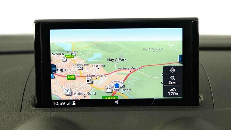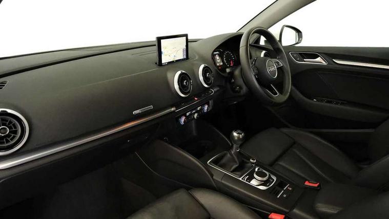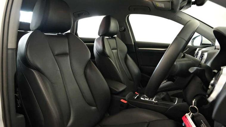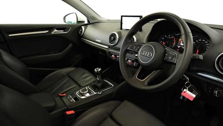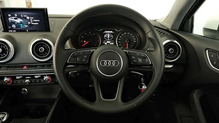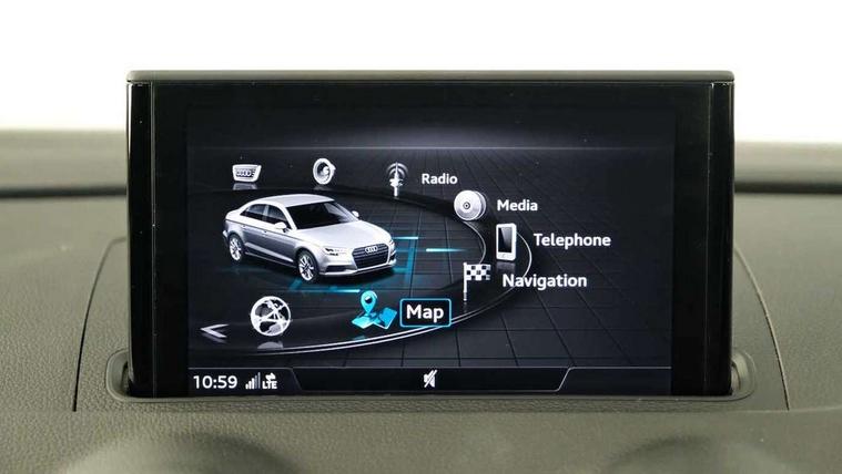Audi connect, Audi drive select, Audi smartphone interface, Automatic start/stop system, Bluetooth interface, Colour driver's information system display, Electro-mechanical PAS, SD card based MMI navigation, Service indicator, Voice control system, Dynamic suspension, 2 USB interfaces and Aux-In jack, CD player, DAB Digital radio, MMI radio plus with 7" colour MMI screen and MMI controller, Two SDXC card slots, Aluminium side window trim, Auto dimming rear view mirror, Automatic lights and wipers, Body colour bumpers, Body colour door mirrors, Body colour roof spoiler, Electrically adjustable and heated door mirrors with integrated LED side indicators, Front and rear electric windows, Heated rear window, Heated windscreen washer jets, Illuminated roof module, Model and engine designation badges at rear, Single chrome exhaust tailpipe, Sport specific side air inlet grille and diffuser insert, Xenon headlights with LED Daytime running light, 3 adjustable rear headrests, 3 spoke leather multifunction sports steering wheel, 4 lashing points to secure luggage, 60/40 split folding rear seat, Adjustable front centre armrest, Aluminium door sill trims, Driver/passenger sunvisors, Dual zone electronic climate control, Front and rear interior lights with delay, Front sports seats, Front/rear floor mats, Height/depth adjustable steering column, Illuminated glovebox, Illuminated luggage compartment, ISOFIX child seat mounting and Top Tether with front passenger airbag deactivation, Manual height adjustable front seats, Rock grey cloth headlining, Storage compartments in doors side trims, centre console and under front drivers seat, Non smoking pack - A3, Storage and luggage pack - A3/RS3, 3 point seatbelts on all seats, ABS/EBD, Active front headrests, Airbags - front driver/passenger, front & rear side, curtain, drivers knee, ASR, EDL, Electromechanical parking brake, ESC - Electronic Stability Control + traction control, Hill hold assist, Predictive pedestrian protection, Seatbelt warning, Tyre pressure warning, Warning triangle and first aid kit, Anti theft alarm, Anti-theft wheel bolts, Immobiliser, Remote control central locking, Aluminium air vent surrounds, Aluminium mistral silver inlay, Aluminium trim elements, Tool kit, Tyre repair kit,