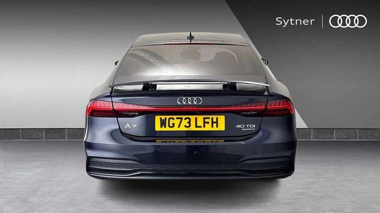 Audi connect safety and service (e-call), Audi connect with Amazon Alexa Integration, Audi drive select, Audi parking system plus - acoustic and visual park assist system for front and rear, Audi smartphone interface, Audi virtual cockpit - 12.3" high resolution LCD digital instrument cluster display, Automatic start/stop system with coasting functionality, Bluetooth interface, Colour driver's information system display, Electric boot lid release, Lane departure warning system, MMI nav plus with MMI touch + 10.1" and 8.6" HD haptic touch screen/3D city models/country information/online map/route info and personal route assist, Operating buttons in black, glass look with haptic feedback, Power operated tailgate, Progressive steering, Rear view camera, Service indicator, Voice control system, 24 litre AdBlue tank, Diesel particulate filter, Sports suspension, Audi music interface - 2 USB ports with charger and data functions, Audi sound system with 6 channel amplifier, 180 watt amplifying capacity and 10 loudspeakers including subwoofer, Auxiliary input socket, DAB digital radio module, Coming/leaving home animations in front and rear, Frameless auto dimming interior rear view mirror, Front and rear electric windows, Gloss black highlights on the exterior area of the Audi Single frame, Gloss black highlights on the front and rear bumpers, Gloss black highlights on the radiator grille, Gloss black highlights on the side windows trim strips, HD Matrix LED headlights with dynamic front and rear indicators, Headlight washers, Heat insulating glass in side and rear windows, Rain and light sensors, Rear side wing doors, Rear wiper, Retractable rear spoiler, S line air inlet design with inlay in high gloss black, S Line badge on front fender, S line badge on front grille, S Line Black rear diffuser with chrome inlays and rear grille, S Line side skirts, Signature LED daytime running lights, Third brake light, Towbar preparation, Windscreen with heat-insulating glass, 2 zone deluxe electronic climate control, 4-way electric lumbar support, 40/20/40 split folding 3 seater rear seat bench with rear centre armrest, Black cloth headlining, Electrically adjustable front seats - driver seat with memory, Front and rear headrests, Front centre armrest, Heated front seats, Height/reach adjust steering wheel, Illuminated door sill trims with S logo, Illuminated sun visors with vanity mirrors, ISOFIX child seat mounting and top tether in front and outer rear seats with front passenger airbag deactivation, Leather gear knob, Leatherette upper instrument panel and door shoulders, Luggage compartment floor, S line front and rear floor mats with contrast stitching, Single front passenger seat, Stainless steel pedals and foot rest, Tool kit and car jack, LED interior ambient lighting pack - A7, Non smoking pack - A7, 3 point seatbelts on all seats, Audi pre-sense front, Driver and passenger airbags, Electromechanical parking brake, Electronic stabilisation control including ABS, ASR and EDL, Extended pedestrian protection measures, Hill hold assist, Manual child lock in rear doors, Seatbelt monitoring, Tyre pressure warning light, Warning triangle and first aid kit, Anti theft alarm with tow away protection, Anti-theft wheel bolts and wheel loosening detection, Immobiliser, Keyless Go, Preparation for tracking system, Remote central locking, Carbon twill inlays, 20" 5 double arm design Audi sport cast aluminium high sheen matt grey look alloy wheels,