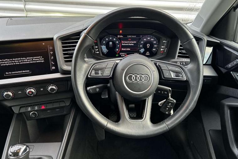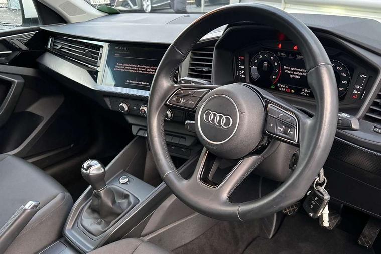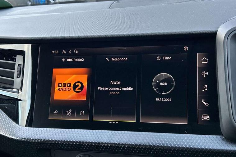 10.25" Digital instrument cluster display classis style instrument dials + speed, odometer, time, outside temperature, telephone menu + fuel level warning, Audi smartphone interface with connect compatible smartphone via USB directly MMI display + Nav, music, third party apps controlled via MMI controller, Automatic start/stop system, Bluetooth interface, Driver's information system, Electromechanical power steering, Emergency e-call, Emergency services call system, Lane departure warning system, Service interval indicator, Speed limiter, Voice control system, Washer fluid level indicator, Dynamic suspension, 1 x SDXC card reader, 2 x USB type C connection points, 6 passive loudspeakers, DAB Digital radio, MMI radio plus with 8.8" colour MMI display screen and MMI touch, Auto dimming rear view mirror, Body coloured bumpers, Body coloured door mirrors, Electric front and rear windows, Electrically adjustable, heated, folding door mirrors with integrated LED side indicator, Front side air inlets with front spoiler lip and rear diffuser in matt black grained, Heat insulating glass windscreen and side windows, Heated rear windscreen, High level LED brake light, LED headlights with LED rear lights + dynamic rear indicators + headlight adjustment and high beam, turning light + LED daytime running lights, Radiator grille in matt black, Rain and light sensors, Rear fog lights, Rear side wing doors, Rear wing door, Rear wiper, 12V socket in centre console with two cup holders, 3 rear seats with headrests, 3 seat bench in 2nd row, 3 spoke leather multifunction plus steering wheel, 40:60 Split folding rear seat or folded fully, Air vents, door handle recesses and centre console in black, Delta cloth upholstery, Driver and passenger seat with manual height adjust with forward and backwards adjustment, Front head restraints, Front passenger seat, Front/rear floor mats, Height and reach adjustable steering wheel, ISOFIX child seat mounting for front passenger and outer rear seats including top tether attachment point of outer rear seats, Leather gear knob with aluminium trim, Leatherette handbrake grip, Luggage compartment light with front and rear reading lights, Manual air conditioning, Titanium grey cloth headlining, Luggage compartment pack - A1, 3x3 point rear seatbelts, Audi pre-sense front with pedestrain and cyclist recognition, Brake assist function, Driver and front passenger airbag with front side and head airbags, Electronic Stability Control including ABS, EBD, ASR and EDL, Front passenger airbag deactivation switch, Hill hold assist, Manual rear child locks, Seatbelt height adjustment for front seats, Seatbelt monitoring, Tyre pressure warning light, Warning triangle and first aid kit, Anti theft alarm, Anti theft wheel bolts and loose wheel warning, Immobiliser, Remote central locking with 2 foldaway keys, Black inlays polygon structure, 15" 5 arm design alloy wheels,
