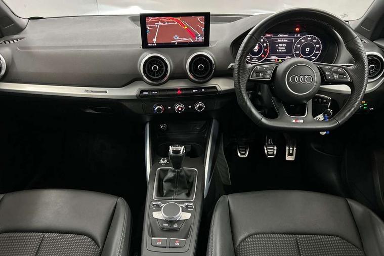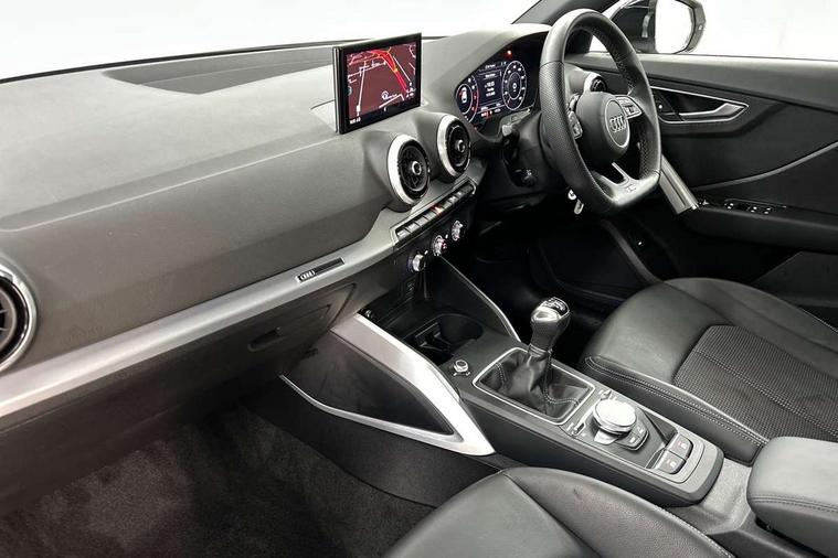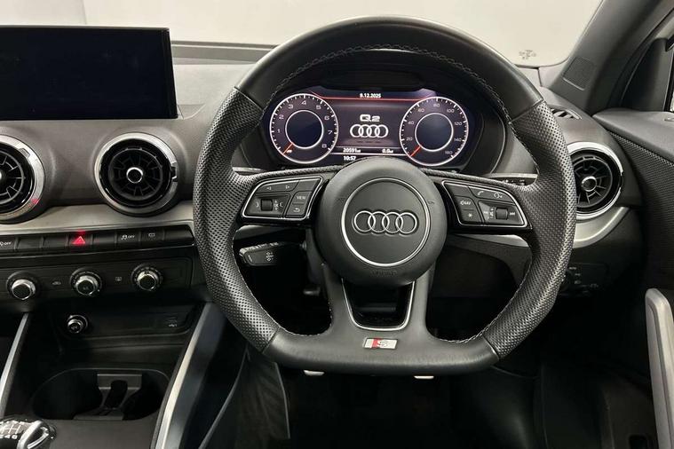3D map display, Audi connect navigation and infotainment includes innovative services, Audi connect remote and control connects your vehicle to your smartphone, Audi drive select: power steering assistance + engine (modes: comfort, auto, dynamic, efficiency, individual), Audi smartphone interface - Apple carplay/Android Auto, USB connect, 2xSDXC card readers, voice control for navi, telephone, music and 3rd party apps, Audi virtual cockpit, Automatic start/stop system with recuperation, Bluetooth interface includes bluetooth audio streaming, Cruise control, E-call, Jukebox hard drive memory for music (10GB), MMI navigation plus with 8.3" colour MMI screen and MMI touch, Natural voice recognition, Power operated tailgate, Progressive steering, Rear parking sensors, Sport suspension, 6 passive loudspeakers, DAB Digital radio, Audi beam, Auto dimming rear view mirror, Black window trims, Bumper in full body colour paint finish, Electrically adjustable, folding, auto dimming and heated door mirrors with integrated LED side indicators, Front windscreen with grey tinted sunband, LED daytime running lights, LED headlights with dipped beam, high beam, position lights, indicators, LED rear lights, LED third brake light, Privacy glass - dark tinted rear and rear side windows from B-pillar backwards, Rear side wing doors, Rear wiper, Variable front intermittent wipers, Wheel arch trims in manhattan grey, 12V socket in front, 3 seat bench in 2nd row, 3 spoke flat bottomed multi-function leather sport steering wheel, 4-way electric lumbar support for front seats including manual seat height adjustment for both front seats, 60/40 split folding rear seat bench, Black carpets, Black cloth headlining, Front and rear head restraints, Front centre armrest, Front sport seats, Front/rear floor mats, Height/reach adjust steering wheel, Illuminated door sill trims with S logo, ISOFIX child seat mounting in front passenger and rear outer seats, Manual air conditioning, Single front passenger seat, Stainless steel pedals, Black styling pack - Q2, 3x3 point rear seatbelts, 6 airbags - Front, curtain and front side airbags, Electromechanical parking brake, Electronic stabilisation control including ABS, ASR and EDL, Front passenger airbag deactivation, Hill hold assist, Pre-sense front with pedestrian recognition, Seatbelt monitoring, Tyre pressure warning light with visual and acoustic warning, Warning triangle and first aid kit, Anti theft alarm, Anti theft wheel bolts, Electronically operated child locks, Remote central door locking, Aluminium interior element, Black dashboard, Matt brushed aluminium trim inlays, Tool kit,