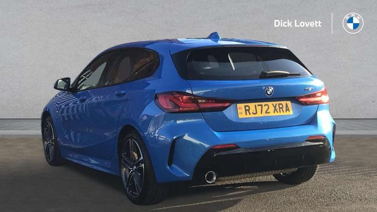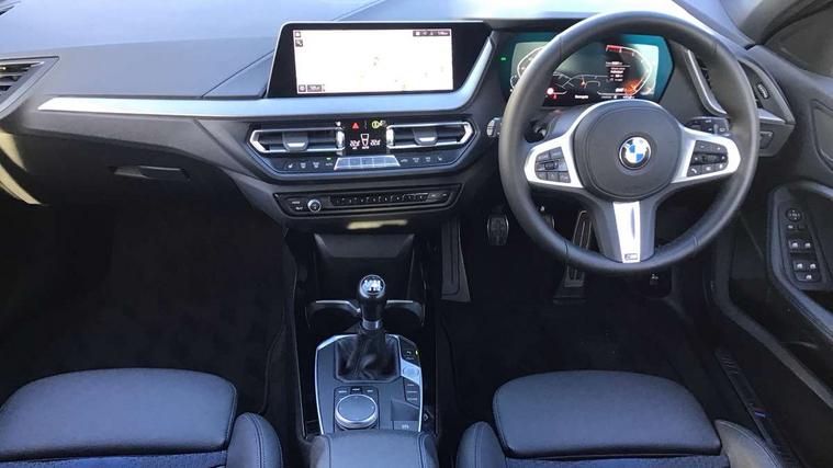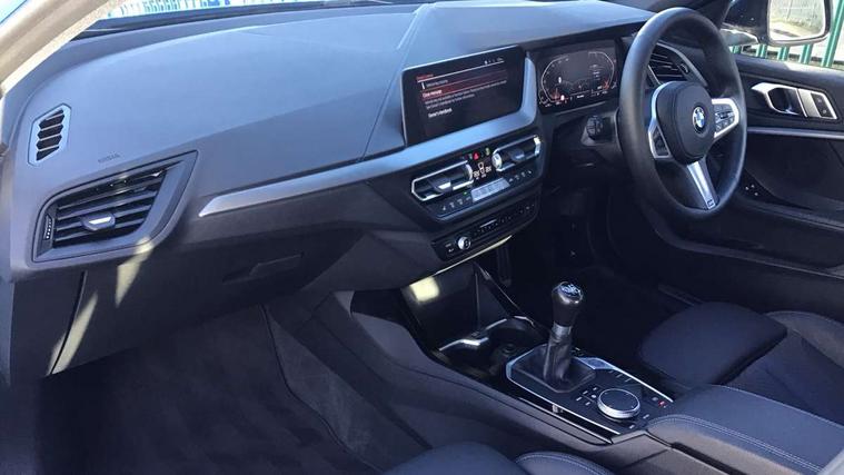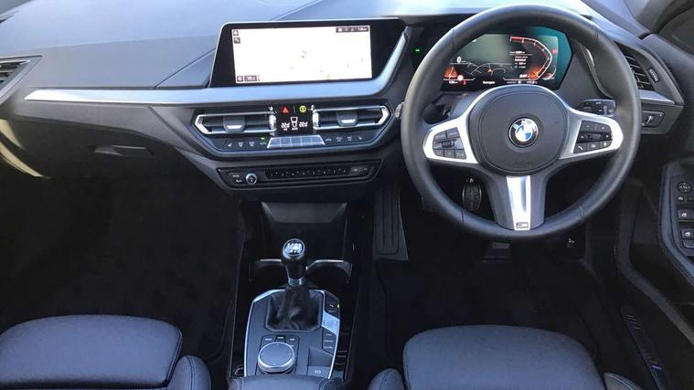 Active guard plus, Attentiveness assist, BMW ConnectedDrive online services, BMW Teleservices, Check Control warning system for monitoring of lights and door/luggage compartment open warning, Cruise control with brake assist, Eco pro mode, Front axle single joint with specific axle kinematics to minimise drive influences on steering + provide increased rigidity agile driving behaviour, Integrated owners handbook, Lane departure warning system, Oil sensor for level and grade, On board computer, Optimum shift indicator, Personal Profile, Pull away assistant, Rigidly mounted rear subframe - Multi link construction with separate spring / damper configuration and excellent driving characteristics, Speed limit Info including no-overtaking indicator, Speed limiter, Aluminium lightweight construction, Anti roll bar front and rear, Balancer shaft, Double VANOS twin scroll turbocharging system, Drive Performance Control, Electronic differential lock, High precision injection, M sport suspension, Petrol Particulate Filter, Twin tube gas filled shock absorbers with degressive characteristic curve, VALVETRONIC engine management, DAB Digital radio, Auto dimming rear view mirror, Automatic headlight beam throw control, Automatic windscreen wipers and automatic headlight, Body colour door handles, Body colour mirror caps, Body colour roof trims, Chrome 'M' logo side designation, Chrome exhaust twin tailpipes round 90mm in left, Chrome kidney grille frame with Satin Aluminium struts, Direction indicator side lights in exterior mirrors, Fading support, Folding side mirrors with auto dimming/folding wing mirrors with auto dimming, Follow me home headlights, Front and rear bumper system with replaceable deformation elements, Front and rear electric windows with open and close fingertip control, anti trap facility and comfort closing, Front door sill finishers in black plastic with M designation in metallic look, Green tinted heat protection glazing, Heated, electrically adjustable exterior mirror aspheric on driver side, convex on passenger side, High gloss shadowline window frame, Recess cover mirror frames and B/C pillar embelisher trim, High level third brake light, Integrated front windscreen with washer jets, LED daytime running lights, LED eyebrow turn indicators, LED front fog lights, LED Headlights, Lightweight engineering, Matt black air guide grilles, Matt black wheel arch trim, Model designation on electric bootlid, Nearside reverse light in rear light cluster, Preparation for high beam assistant, Rear fog lights, Rear side wing doors, Rear window wiper, Shark fin antenna, Trailer stabilisation logic, Visible VIN plate, Welcome lighting, 12V power socket in front centre console with blanking plug, 3 rear seat head restraints, 3 seat bench in 2nd row, 3 spoke sports leather steering wheel in black leather with black stitching and decorative finisher in pearl chrome, specific M badge + leather knob, Anthracite headlining, Black boot net with lashing eyes, Cargo function on 2nd seat row, Child seat ISOFIX attachment for two outer rear seats and front passenger seat with anchorage points, Conditioned based service, Driver and front passenger seat heating, Folding rear clothes hook, Four grab handles integrated in roof lining, Front and rear door pockets with bottle holders, Front and rear side armrest integrated into door trim, Front armrest, Front sports seats, Gearshift lever with M designation, Glove compartment, Height adjustable front head restraints, Luggage compartment for bag hooks on left and right, foldable luggage compartment liner and four lashing eyelets, Manual adjust steering wheel, Multi-function controls for steering wheel, Single front passenger seat, Storage compartment in centre console, Sun visors with vanity mirrors and insert tab, Two front centre console cupholders, Two zone automatic air conditioning, Velour floor mats, Additional interior lighting pack - 1 Series, BMW live cockpit professional pack- 1 Series, Connected pack professional - 1 Series, Interior lights pack - 1 Series, M Sport exterior styling aerodynamics pack - 1 Series, 2 tone horn, 3 point seatbelts on all seats, front pyrotechnic belt tensioners, stopper and belt force limiters, rear coded belt buckles, Airbags - Front driver/passenger, front and rear curtain head protection, front side, manual deactivation of front passenger airbag, Anti lock braking system (ABS) with brake assist, BMW emergency call, Brake drying, Braking readiness, Child proof locking system in rear door, City braking function, Comfort modes, Cornering brake control, Crash sensor activating central locking release, hazard warning lights, fuel cut off, interior lighting + activation of safety battery terminal clamp, Driver and front passenger seat belt security check, Dynamic stability control + (DSC+), Dynamic Traction Control - DTC, Electrically operated hand brake, Front and rear disc brakes, Seatbelt warning, Side impact protection, Tyre pressure monitoring system, Warning triangle and first aid kit, Central locking switch for all doors, fuel filler cap and luggage compartment, Deadlocking function system to all doors, Drive away locking system on all doors and luggage compartment with de-activated in iDrive settings, Locking wheel bolts, Remote control with integrated key with High-gloss Black inlay and M designation and 1 button for open/ close lock, window, open luggage compartment, Start/stop button illuminated in centre console with keyless engine start and auto start stop deactivation button, Thatcham Cat.1 alarm and immobiliser, Wheel slip limitation close to the actuator (ARB), Contrast stitching on instrument panel, Electrically powered 12V compressor, Reduced rolling resistance tyres,