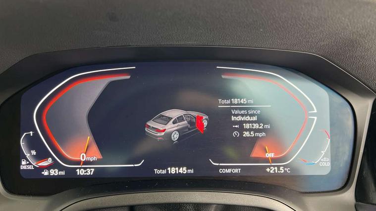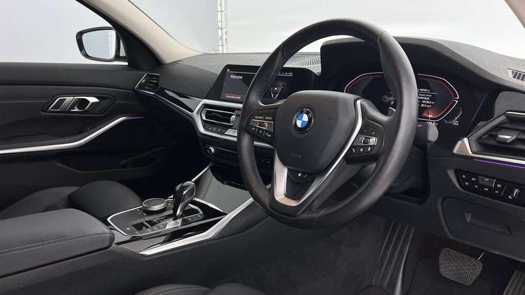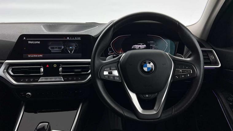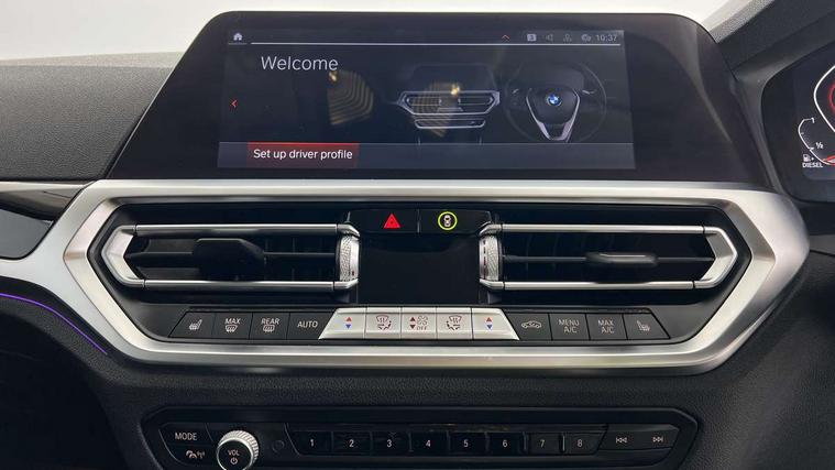 Active guard plus, Attentiveness assist, BMW Live Cockpit Plus with 8.8" central information display + 5.1" instrument display, Navigation, Intelligent voice control, 4G LTE connect, BMW service history, BMW Teleservices, Brake pad wear indicator in front and rear, Check Control warning system for monitoring of lights and door/luggage compartment open warning, Condition based service, Cruise control with brake function + speed limiter, Electric power steering with Servotronic steering optimised at all speed ranges, iDrive controller on centre console, Instrument cluster with speedometer with mph readout, tachometer, fuel gauge and oil temperature gauge, Integrated owners handbook, Oil sensor for level and grade, warning by check control system, On board computer - average speed+fuel consumption, service interval, clock/date, odometer/trip meter, outside temperature display and ice warning, Optimum shift indicator, Personal Profile - automatic lock when driving away selectable, Recovery braking system, 48V Mild hybrid technology, Balanced 50/50 weight distribution, Battery cut-out switch, Diesel particulate filter, Drive performance control - ECO PRO, comfort and sport modes, Incorrect fuelling protection, Larger capacity fuel tank, Sport automatic transmission with steering-wheel mounted gearshift paddles and launch control, Stroke dependent dampers, xDrive system permanent all-wheel drive variable torque distribution, DAB tuner, Electronic service booklet, Acoustic glazing, Active airstream chrome frame kidney grille with 8 high gloss black vertical slats, Automatic headlight beam throw control with load dependent regulating reaction, dynamic compensation of braking dive and acceleration squat, Body colour door handles, Body colour front and rear bumpers, Body colour fuel filler flap, Body colour mirror caps with bottom segment in matt black, Body colour roof mouldings, Brushed aluminium inserts in the front door sill finishers with BMW designation, Dynamic brake lights, Electric windows - front and rear, with open/close fingertip control, anti-trap facility and comfort closing, Exhaust tailpipe - split left and right, Exterior mirrors - electrically folding with anti-dazzle, Fading support, Green tinted heat protection glazing, High gloss black front bumper with specific design elements, High gloss black rear bumper with specific design elements, High gloss shadow line exterior trim, Interior rear view electrochromatic mirror with automatic anti dazzle function, LED daytime running lights, LED front fog lights, Lightweight engineering, Matt black exterior B pillar, Rain sensor with automatic headlight activation, Shark fin antenna, T-shaped design element right and left in black high gloss, Two part LED tailights in L-shape with components in smoked glass, brake light, LED turn indicator and rear fog light, Visible VIN plate, Welcome lights in interior and door handle area, Windscreen wipers with integrated washing jets, xDrive designation on left tailgate, 12V power socket in front storage compartment, 2 front cupholder in centre console with clamping elements and matt black inlay, 3 rear seats with non folding headrests with 3 point seat belts, 3 zone automatic air conditioning, 4 pieces lashing eyelets in luggage compartment, 40:20:40 split folding rear seat with loading system, Ambient lighting with welcome carpet light, Armrest integrated in front and rear door trim + front centre console armrest, Centred top Luggage compartment lights, Four grab handles integrated in roof lining, Front and rear door exit lighting (left / right), Front and rear door pockets, Front and rear reading lights, Front and rear velour floor mats, Front head restraints, Front sport seats, Heated driver and front passenger seats, Height adjustable mechanically and infinitely variable steering column, Illuminated armrest storage compartment, Illuminated glove compartment with separate small compartment, Interior lighting - front centre over interior mirror with soft light, rear centre and front and rear footwell lighting, Make-up mirror lights, Rear centre armrest with 2 cupholders, Rear centre console with storage compartment and ventilation grille, Sunvisors with vanity mirrors and ticket pocket, Three spoke multifunction sport leather steering wheel, Toolkit located in luggage compartment, Vernasca leather upholstery, Connected pack professional - 3 Series Saloon/Touring, 2 tone horn, BMW emergency call, Brake energy regeneration, Braking pre-tensioning, Child proof locking system in rear door, Child seat ISOFIX attachment rear outer seats, Coasting in idle in ECO PRO mode, Crash sensor activating of airbags, Unlocking doors, hazard warning lights, fuel cut off, interior lighting+activation of safety battery terminal clamp, Driver and front passenger side airbags, integrated in the door side seat backrest bolsters for all seat variants, Driver/Front Passenger airbags, Dry braking, Dynamic brake control, Dynamic stability control + (DSC+) - Anti-lock Braking System (ABS) with brake assist and cornering brake control + Automatic Stability Control (ASC), Dynamic Traction Control - DTC, Electromechanical parking brake including automatic hold function and automatic release of the parking brake when pulling away, Electronic differential lock control (EDLC), Front passenger manual airbag deactivation, Head airbags for all 4 outer seats, Hill start assist, Seat belt security check for driver and front passenger, Side impact protection, Three 3 point seat belts on all seats including front belt stopper, pyrotechnic belt tensioners and belt force limiters, Tyre pressure monitoring with three level warning strategy, Ventilated front and rear disc brakes, Warning triangle and first aid kit, Alarm system (Thatcham 1) with remote control and electronic engine immobiliser, Central locking switch for all doors, fuel filler cap and luggage compartment, Remote control with integrated key one button open/close vehicle and 