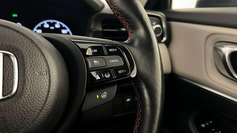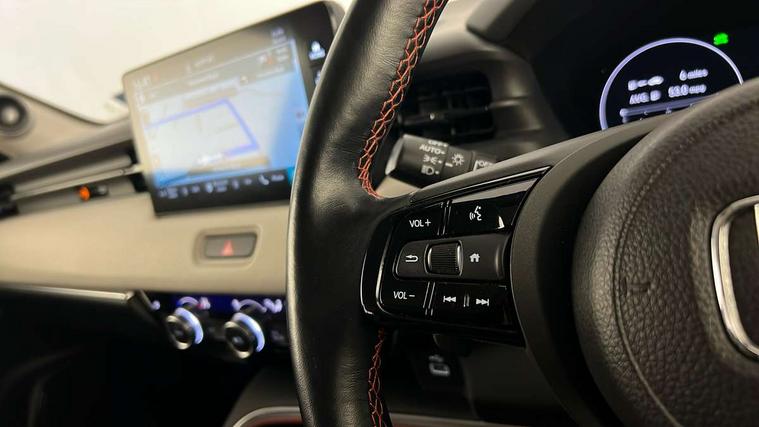 7" TFT instrument cluster, Adjustable speed limiter, Agile handling assist, BLIS (Blind Spot Information System) with Cross Traffic Monitor, Bluetooth hands free telephone connection, Drive modes select (Eco, normal and sport), eCall emergency system, Electric power steering, Emergency stop signalling system, Forward collision warning, Handsfree power tailgate with walkaway close, Honda CONNECT with navigation, 9" touchscreen, AM/FM/DAB/Apple Carplay and android auto, Honda sensing with blind spot information, adaptive cruise control and lane keep assist, Idle stop, Intelligent speed limiter, Low speed following, Rear parking sensors and rear view camera, Tachometer, Traffic sign recognition, WiFi connectivity, Wireless charger, Vehicle stability assist, 'Shark fin' mobile antenna, 2 USB sockets in rear, 2x USB Front socket (1 data & 1 charge), Premium audio system, Steering wheel mounted remote controls, Auto dimming rear view mirror, Auto headlight levelling, Auto high beam, Automatic coming home lighting, Automatic headlights, Automatic rain sensing wipers, Body colour bumpers, Body colour tailgate spoiler, Body coloured door handles, Electric front and rear windows, Electrically adjustable and heated door mirrors, Exterior and interior unique colour scheme (orange, white & blue accents), Front sequential turn, Front wiper de-icer, Headlight washers, Heated front windscreen, Heated rear window, High gloss side window surrounds, High level third brake light, LED cornering lights, LED daytime running lights, LED front fog lights, LED headlamps, Rear side wing doors, Rear wiper, Retractable/reverse auto tilt door mirrors, Roof rails, Smoked tail lights, Two tone roof, Variable front intermittent wipers, Windscreen shadeband, 3 rear headrests, 3 seat bench in 2nd row, 60/40 split folding rear seat, Ambient interior lighting, Cargo net hooks, Courtesy lights, Driver seat back pocket, Driver's seat height adjustment, Driver/passenger sunvisors with illuminated vanity mirrors, Dual automatic air conditioning, Front and rear map reading lights, Front head restraints, Front seat armrests, Heated front seats, Heated steering wheel, Isofix points, Luggage area under floor storage box, Magic seat flexibility system, Manual height/reach adjust steering wheel, Paddle shift controls, Passenger seat back pocket, Rear centre armrest, Rear ventilation, Single front passenger seat, Smooth leather steering wheel, Tonneau cover, Trunk cargo band, Trunk light, 3x3 point rear seatbelts, ABS+EBD+Brake assist, Anti-whiplash front headrests, Collision mitigation braking system, Collision mitigation throttle control, Deflation detection system, Dual front SRS airbags, Electric child locks, Electronic parking brake, Front and rear curtain airbags, Front and rear safety belts with Emergency Locking Retractor, Front side airbags, Hill descent control, Hill start assist, Low speed safety system, Passenger SRS airbag cut-off device, Regenerative braking system, Door deadlocks, Immobiliser, Keyless smart entry with push button start, Mirrors and windows key fob operation, Remote central locking with 2 remote folding keys, Security alarm, 18" Black cut alloy wheels, Tyre repair kit,