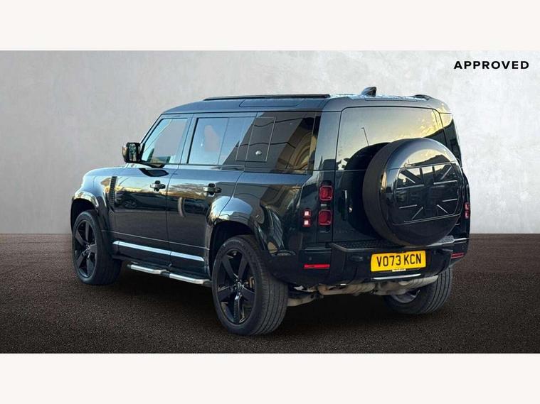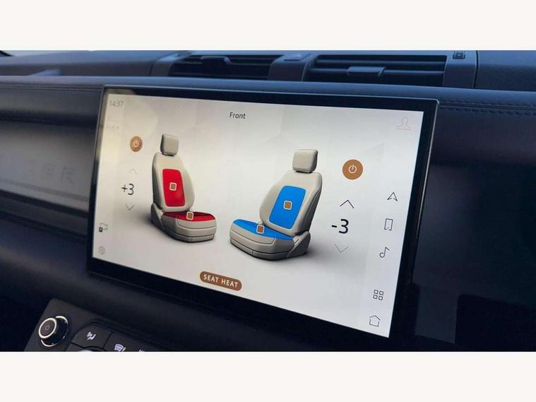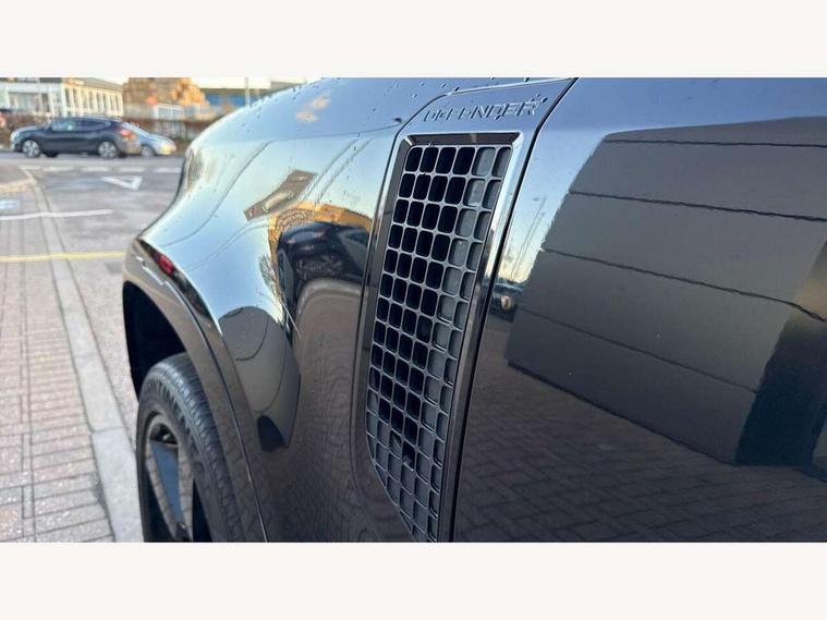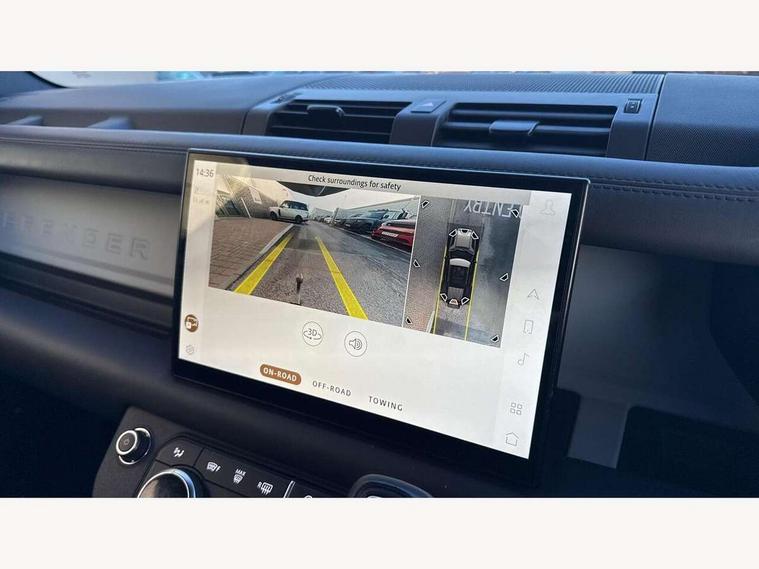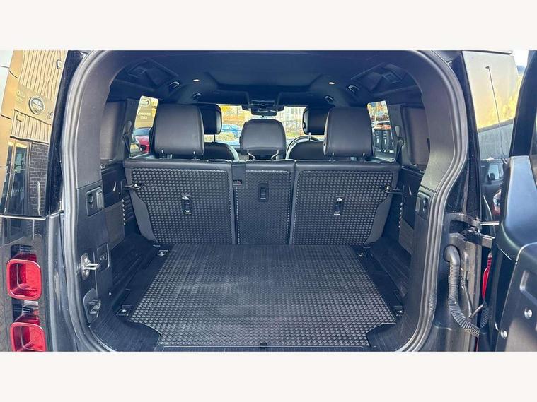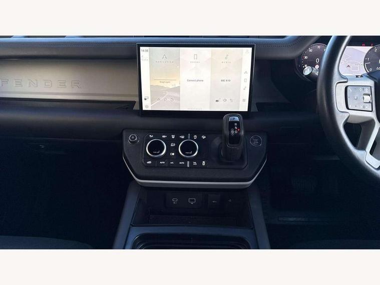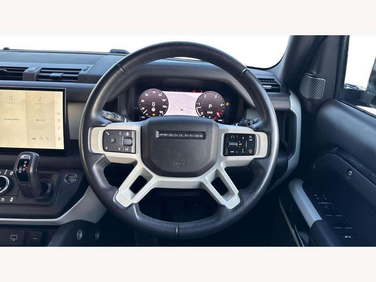 11.4" touchscreen, 360 degree parking aid, 3D Surround Camera with 360 View, 180 Rear View, Front Traffic Detection, Forward Vehicle Guidance, Tow Hitch Assist and clear sight Ground View, Adaptive cruise control, Android Auto, Apple CarPlay, Assisted tailgate with soft close, Blind spot assist, Bluetooth system, Brake pad wear indicator, Clear exit monitor, Connected navigation pro, Driver condition monitor, Electric power assisted steering (EPAS), Interactive driver display, Lane keep assist, Push button start, Rear collision monitor, Rear traffic monitor, Traffic sign recognition with adaptive speed limiter, Trip computer, Wade Sensing, 8 speed automatic transmission, All wheel drive system, Twin speed transfer box, DAB Radio (Digital Audio Broadcasting), Meridian 400w sound audio system with 11 speakers and subwoofer, Pivi pro connected, Automatic headlight levelling, Automatic headlights, Black exposed rear recovery eyes, Centre high mounted stop light, ClearSight interior rear view mirror, Electric heated/power fold door mirrors with approach lights and auto dimming driver side, Electric windows with one touch open/close and anti-trap, Follow me home lighting, Front fog lights, Heated rear window with timer, Heated windscreen, LED tail lights, Privacy glass, Puddle lights, Rain sensing windscreen wipers, Rear fog lights, Rear side wing doors, Rear wiper, Side hinged tailgate, Trailer stability assist, X-Dynamic badge, 12V power socket in loadspace, 14 way heated and cooled electric adjustable memory front seats with 4 way manual headrests, 3 seat bench in 2nd row, Alpine lights, Configurable cabin lighting, Durable rubber cabin flooring, Durable rubber loadspace flooring, Electric reach + rake adjustable steering column, Extended leather upgrade, Footwell lights, Front passenger isofix child seat attachment, Heated steering wheel, Loadspace cover, Loadspace Hook, Multifunction steering wheel, Overhead stowage for sunglasses, Premium cabin lighting, Rear headrests, Rear ISOFIX, Rear reading lights, Single front passenger seat, Standard seat configuration, Storage glovebox, Sunvisors with illuminated vanity mirrors, Online pack with data plan - Defender, 5 x 3 point seatbelts, ABS, Brake hold function, Cornering brake control (CBC), Customer configurable autolock, DSC - Dynamic Stability Control, EBD - Electronic brakeforce distribution, Electric parking brake (EPB), Emergency brake assist, Emergency braking, ESP + traction control, Front airbags with passenger seat occupant detector, HDC - Hill descent control, Hill launch assist, Low traction launch, Power operated child locks, Remote for (e-Call, Optimised assistance call, InControl app, Climate, beep and flash and door), RSC - Roll stability control, Seat belt reminder, TPMS (Tyre pressure monitoring system), Alarm, Immobiliser, Intrusion sensor, Keyless entry, Locking wheel nuts,