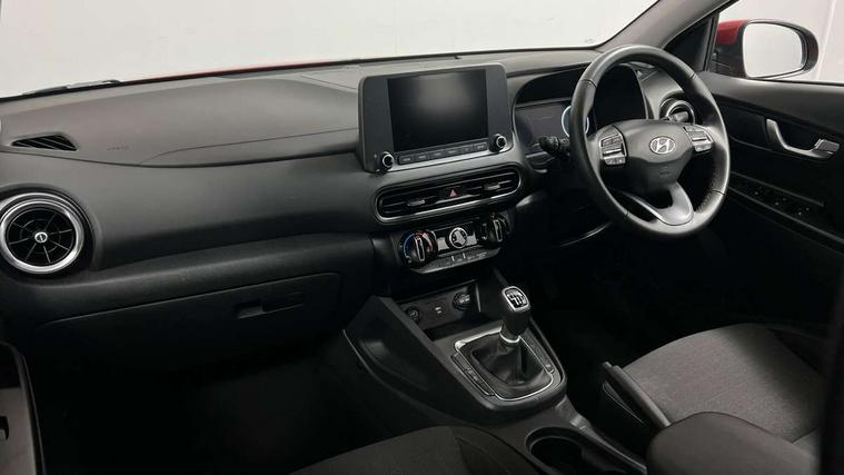 8" Touchscreen display audio + smart device integration, Bluetooth connectivity, Cruise control + speed limiter, Digital clock, Driver attention warning, Driver supervision instrument cluster with 10.25" LCD display, eCall emergency call system, Forward collision avoidance assist with pedestrian detection, Lane follow assist, Lane keep assist, Leading vehicle departure alert (LVDA), Parking system with rear camera and guidance system, PAS, Phone connection with apple carPlay and android auto, Rear parking sensor, Roadside assistance, Windscreen washer fluid sensor and warning indicator, 6 speed intelligent manual transmission, 6 speakers (2 front, 2 tweeters, 2 rear), Front USB ports, RDS and Digital DAB, Steering wheel mounted audio/phone controls, Automatic headlights with dusk sensor, Body colour door mirrors and handles, Door mirror integrated indicators, Electric front/rear windows with drivers one touch/anti-trap, Electrically adjustable and heated door mirrors, Halogen headlights, Halogen rear lights, LED daytime running lights, Positioning Lights - LED, Rain sensor, Rear roof spoiler with integrated LED brake light, Rear side wing doors, Rear wiper, Roof rails, Tinted glass with front door glass and windscreen with shade band, 12V power outlet in front console, 3 seat bench in 2nd row, 60/40 split folding rear seat, Adjustable head restraints, Air conditioning, Centre interior light, Cloth upholstery, Door scuff plate, Driver's seat height adjustment, Driver/passenger sunvisors and illuminated vanity mirrors, Front interior light, Front passenger seat manual adjustments, Height/reach adjustable steering column, Isofix rear child seat fastenings, Leather wrapped steering wheel and gear knob, Luggage compartment lighting, Luggage hooks, Metal paint effect interior door handles, Parcel shelf, Rear centre console with air vents, Single front passenger seat, Sunglasses holder, Vertical adjustment rear head restraints, Trailer wiring package - Kona, Airbags - front, front side and curtain airbags, Anti-lock brake system (ABS), Childproof rear door locks, Downhill brake control, EBD + Brake Assist, Electronic stability control, Fasten seatbelt reminder, Fixed 3 point for second row centre passenger seatbelt, Front seatbelt pretensioners, Height adjustable front seatbelts, Hill start assist control (HAC), Manual parking brake, Passenger airbag deactivate switch, Rear seat alert, Traction control, Tyre pressure monitoring system, Alarm/immobiliser, Deadlocks, Folding key, Locking wheel nuts, Remote central locking, 17" Alloy wheels,