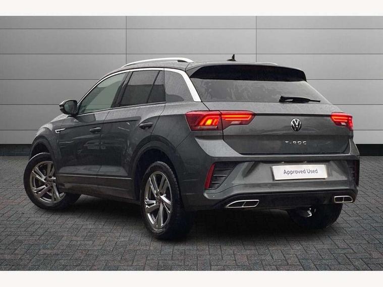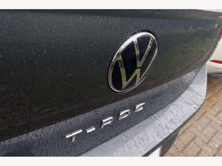 10.25" Digital cockpit pro, Bluetooth mobile phone interface, Driver alert system with fatigue detection, Driver tips and journey analysis, Emergency call service, Lane keeping system Lane Assist, Modified key software - reduce switch off time for key status change to Long no motion, Online services, Park assist including front and rear parking sensors, Service interval indicator, Tailgate/trunk lid release from outside, Think blue trainer driver tips and journey analysis, Warning sound and light for front seatbelts unfastened, Wireless app connect, Battery regeneration during braking, Start/stop function with battery regeneration, Diversity antenna for FM reception, Front and rear 6 speakers, Music playback - MP3, WMA and AAC files, Premium USB cable in choice of either Apple or Android smartphone compatibility, SD card slot, Simultaneous pairing of 2 compatible mobile devices, Title and cover art display, We Connect and We Connect Plus functionality, 3rd brake light, Auto dimming interior rear view mirror, Automatic hazard lights activation under emergency braking, Automatic headlight control with LED separate daytime running lights with coming/leaving home function, Extended roof spoiler, Exterior mirrors aspherical on driver side, convex on front passenger side, External USB type C socket and charging sockets, Front windscreen wiper with intermittent wipe and 4 position delay, Heated rear window, LED Plus headlamps, LED rear combination lamps, LED rear number plate lights, LED tail lamp rear comination lamps, Power windows with comfort operation and circuit breaker, R-Line design body coloured bumpers, Rain sensor, Rear exhaust tailpipe, Rear fog light on one side and reversing lights on both sides, Rear side wing doors, Rear wash/wipe with intermittent wipe setting, Remote electrically foldable door mirrors, puddle lights and reverse activated passenger's door mirror, 12V power socket in centre console, 3 rear head restraints, 3 seat bench in 2nd row, 4 load lashing points in luggage compartment, Air care climatronic air conditoning system with active combination filter and 2-zone temperature control, Black roof lining, Chrome plated radiator grille inserts, air vent surrounds and light switch surrounds, Door and side trim panel with leatherette insert, Drawer under drivers seat, Front + rear carpet mats, Front centre armrest, Front cupholders x 2, Front footwell illumination, Front reading light, Front scuff plates with R logo, Instrument lighting, white adjustable panel illumination, Interior ambient lighting and surround lighting, Interior light delay, Isofix child seat preparation, Leather gearshift handle, Load-through provision with cup holder when folded down ('Unsplit rear seat bench, split folding backrest, with centre armrest), Luggage compartment lighting, Single front passenger seat, Stainless steel pedals, Storage compartment in left and right luggage area, Storage compartment in rear doors, Storage compartments in driver and front passenger doors, Sunvisors with illuminated vanity mirrors, Variable boot floor, height adjustable and removable, Driver assistance pack without proactive passenger protection - T-Roc, 3 point height adj front seatbelts + pretensioners, 3 point seatbelts in outer rear with ECE label, ABS, Child locks on rear doors, Driver and front passenger airbag with front passenger airbag deactivation, Driver and front passenger safety-optimised head restraints, Drivers seatbelt reminder, Electronic parking brake, Electronic Stability Control (ESC) inc EDL (Electronic Differential Lock) and ASR (Traction Control), Front and rear passengers curtain airbag system including front side airbags, Front assist with city emergency braking and pedestrian monitoring, Front seat side impact airbags, Hill start assist, Predictive pedestrian protection, Rear disc brakes, Single tone horn, Tyre pressure loss indicator, Volkswagen roadside assistance, Alarm with interior protection, Anti-theft alarm system with interior monitoring, backup horn, and towing protection, Remote central locking with SAFELOCK, radio remote control with 2 remote control folding keys, Trims for alloy wheels,