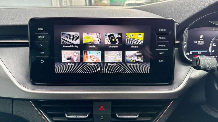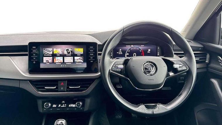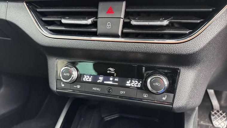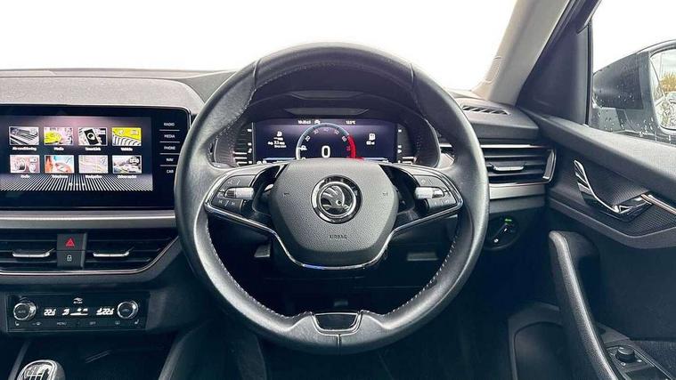 Amundsen satellite navigation with 9.2" glass colour touchscreen display, voice control, virtual cockpit, web radio and traffic sign recognition, Bluetooth system, E-call, Front and rear parking sensors, Front assist system, Gesture control, PAS, Rear view camera, Service indicator, Speed limiter, Virtual cockpit with 10.25" display, Wireless SmartLink for apple car play, android auto and mirrorlink, 8 Speakers, Auxiliary input socket, DAB Digital radio, Auto dimming rear view mirror, Body colour bumpers, Body colour door mirrors and handles, Chrome grille surround, Electric folding door mirrors, Electrically adjustable and heated door mirrors, Front and rear electric windows, Headlight range control, Heated rear window, LED rear lights - low functionality, Light sensors, Privacy glass, Rear fog lights, Rear side wing doors, Rear wiper, 12V Accessory socket in centre console, 3 seat bench in 2nd row, Chrome inner door handles, Dual zone climate control, Front head restraints, Glove compartment with illumination, Ice scraper, Isofix child seat fittings on outer rear seats, ISOFIX on front passenger seat, Manual lumbar support for front seats, Rake/reach adjustable steering wheel, Reading lights, Single front passenger seat, Sun visors with illumination on front passenger, Textile floor mats, Third rear headrest, Top tether for front passenger seat, Umbrella in driver's door, 3x3 point rear seatbelts, Airbags - driver and front passenger, ESP, Front passenger airbag deactivation switch, Front side airbags with curtain airbags, Hill hold control, Manual parking brake, Manual rear child locks, One tone horn, Rear disc brakes, Seatbelt reminder for driver an co-driver, Traction control, Tyre pressure monitor, Anti-theft alarm system with interior monitoring, backup horn, towing protection and remote central locking with SAFE system, Anti-theft wheel bolts, Electronic engine immobilizer, Latice curved decorative insert on the dashboard with hot stamping in copper and white ambient lighting white,