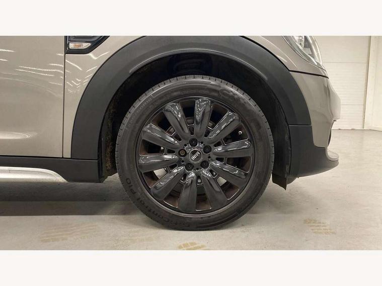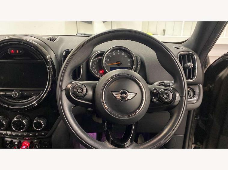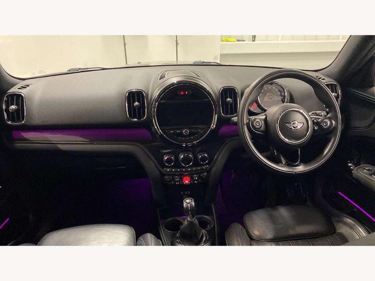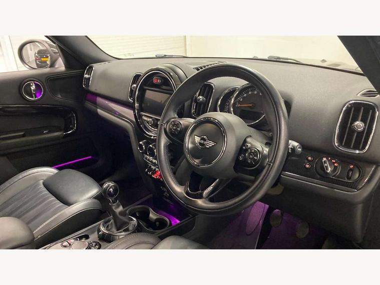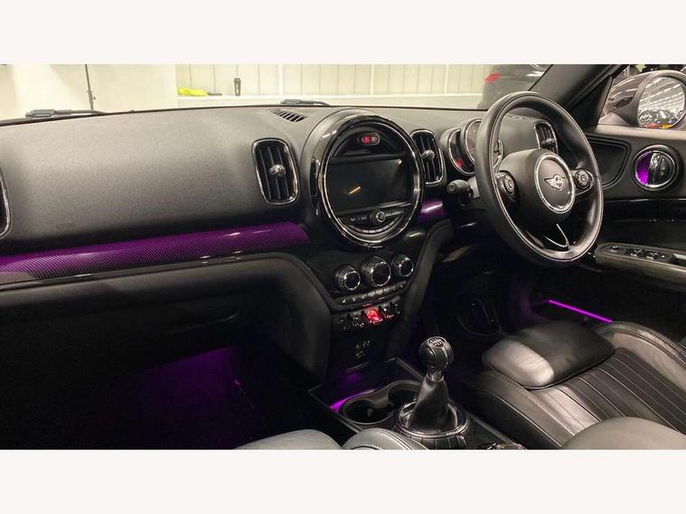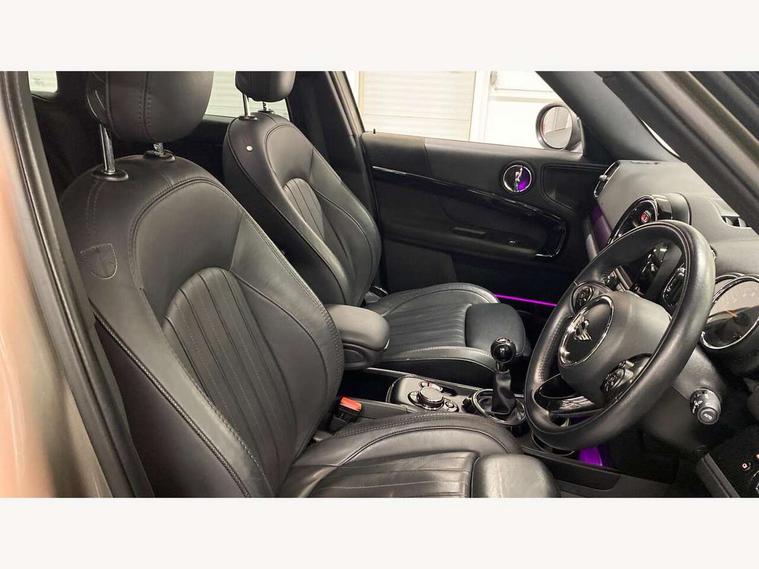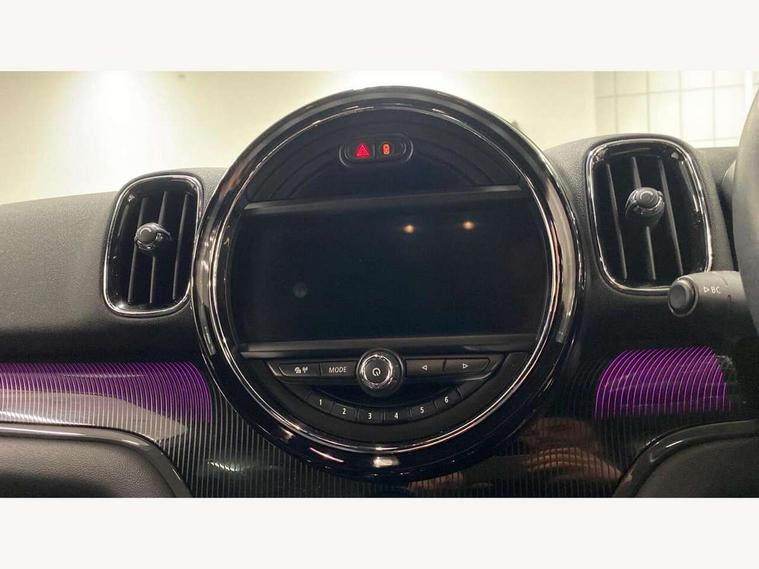 Brake pad wear indicator warning light, DTC - Dynamic traction control, Exterior temperature gauge, Intelligent emergency call, MINI TeleServices, Navigation system, On board computer, Personal Profile, Service interval indicator, Servotronic speed sensitive power steering, Electronic differential lock, Auxiliary input socket, DAB digital radio module, MINI Connected, MP3 compatible radio/single CD player, Radio visual boost, Anti dazzle rear view mirror, Blue tinted glass, Chrome door handles, Chrome exhaust tailpipe, Chrome headlight surround, Chrome plated radiator grille, Chrome window surround, Electric front windows + one touch + anti-pinch, Electrically adjustable door mirrors, Follow me home headlights, Heated door mirrors/heated windscreen washers, Heated rear window with automatic switch off, Metal look door sill finishers, Rain sensor including auto headlights activation, Rear wiper, Roof spoiler, White indicator lights, 12V power point front, 2 cupholders in front centre console, 4 lashing points to secure luggage, 40:20:40 split folding rear seats, Centre console storage box, Chrome interior door handles, Driver/passenger sunvisors, Front and rear headrests, Front and rear Isofix child seat preparation, Front and rear velour floor mats, Front centre armrest with storage compartment, Front interior light, Front passenger grab handle, Front seat backrest storage nets, Heater with recirculation function, Height/reach adjust steering wheel, Luggage compartment lighting, Multifunction steering wheel, Rear grab handles, Sensatec gearshift and handbrake, Storage compartments in doors, Toolkit in luggage compartment, Interior lights pack - Countryman, MINI Excitement Pack - Countryman, 3 point automatic seatbelts, 3 point seatbelts on all rear seats, ABS, Cornering brake control (CBC), Crash Sensor - activates hazard/interior lighting + unlocks doors, Driver and passenger airbags, Driver and passenger side airbags, DSC - Dynamic Stability Control, Electronic brake force distribution, Electronic parking brake, Front curtain airbags, Front passenger airbag deactivation, Fuel cut off safety device, Hill start assist, Pyrotechnically pre-tensioned front seatbelts, Tyre pressure warning, Automatic door locking, Keyless Start, Locking wheel bolts, RF remote control central locking, Second remote key, Thatcham category 1 alarm + immobiliser,