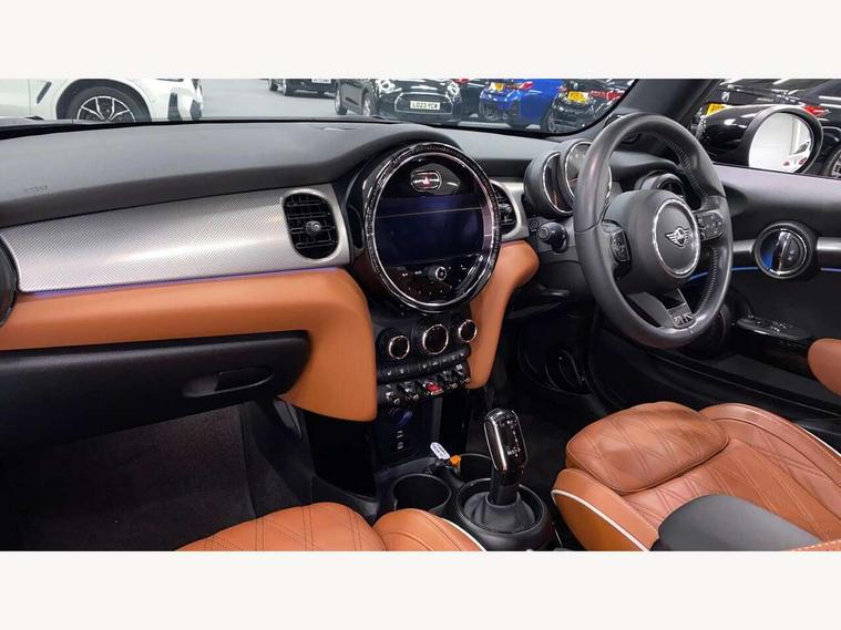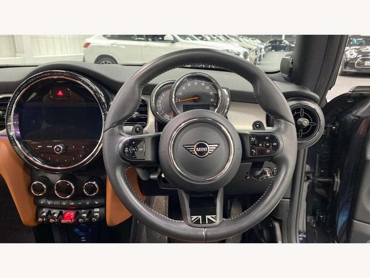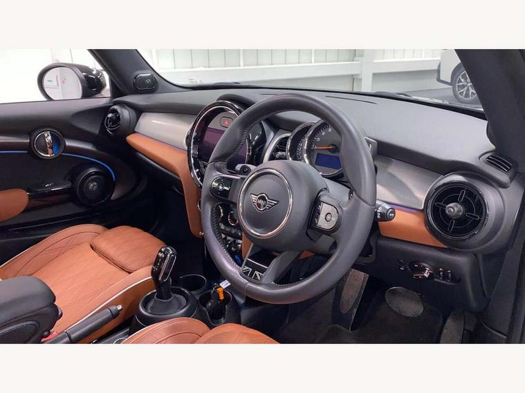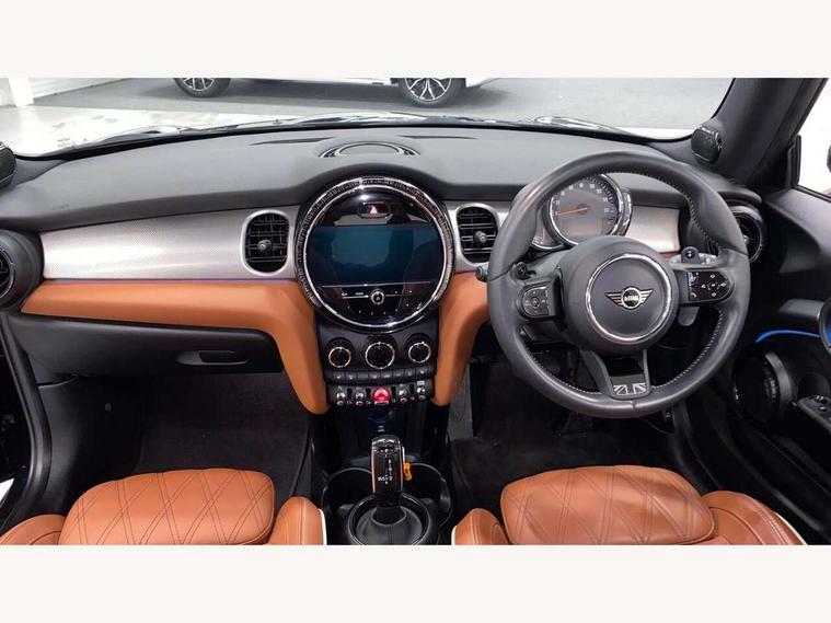 Apple CarPlay, Automatic start/stop function with brake energy recuperation, Compatible mobile phone bluetooth with audio streaming, Cruise control with brake assist, Electro-mechanical speed dependant steering assistance, Flexible car sharing preparation, Instrument cluster, MINI Driving Modes - centre toggle switch to control driving setting (sport, mid and green), Mini E-call, MINI TeleServices, On board computer, Rear park distance control, Service interval indicator, Double Vanos system, Fully variable valve control, High precision injection, Performance Control, Steptronic sport transmission with double clutch and steering wheel paddles, 8.8" touchscreen with LED ring, FM tuner and DAB digital radio, 3rd brake light, Automatic headlight activation switch, Bonnet scoop, Chrome line exterior - radiator grille bars, tailgate handle, lower front grille grating and rear central fog-light, Dynamic brake lights, Electric front windows, Heated rear window, Heated windscreen washer jets, LED headlight with closed ring and daytime driving lights, Metal door sill strips with Cooper S, Model logo Cooper S on right of tailgate, Rain sensor window wipers, Rear fog lights, Rear LED lights with union jack design, Rear window wiper, Side scuttle panel with integrated indicator, Sun/heat protection glass, White indicator lenses, 12V Accessory socket in centre console, 2 seat bench in 2nd row, 4 lashing eyes in luggage compartment, 60/40 split folding rear seat, Carbon black colour line - Knee roll and door armrest, Chrome interior highlights, Chrome line interior - air vents, gear lever base, door handles and speakers in doors, Cupholders, Front and rear head restraints, Front and rear isofix with front passenger airbag deactivation, Front floor mats in velour, Glove compartment, Height and length steering column adjustment, Interior lighting with 12 different colours across the dashboard, underneath door bezel with illuminated laser-engraved design on central display, Leatherette gearshift lever and handbrake gaiters, LED reading lights, vanity mirror lights, front foot well light and spotlight on front seats, Manual air conditioning, Mechanical seat adjustment - forward/back & backrest for front seats and driver seat height adjust, MINI yours badge on exterior pillar, Multifunction steering wheel, Passenger seat height adjuster, Satellite grey headlining including grab handles and clothes hooks, Single front passenger seat, Storage compartments in doors, Storage pocket on back of front seats, Sunvisors with vanity mirrors, Walknappa leather steering wheel with grey seam and MINI Yours badge on Piano Black lower steering wheel spoke, 3 point seatbelts on all four seats, 6 Airbags - front, side, head and seat belt tensioners, Anti-lock braking system (ABS), DSC - Dynamic Stability Control, Front and rear disc brakes, Two tone horn, Tyre pressure monitoring system, Alarm system with tilt sensor, monitoring doors, bonnet interior and tailgate, Electronic vehicle immobiliser, Start/stop toggle with keyless go, Tool kit,