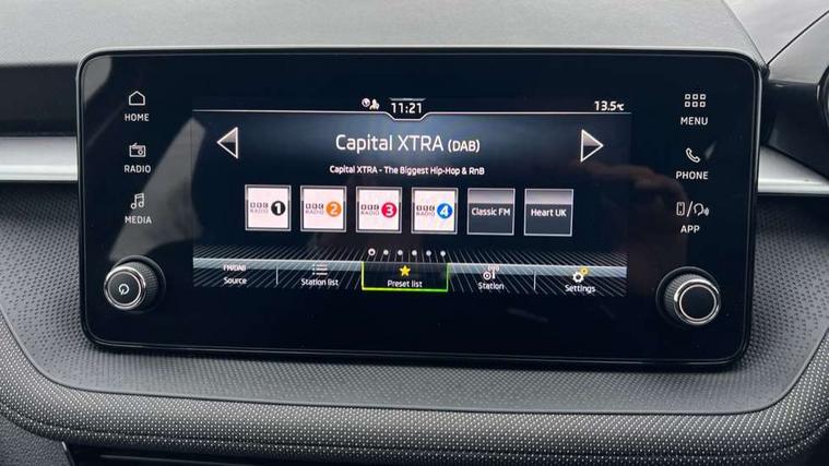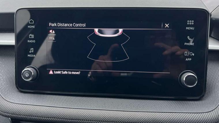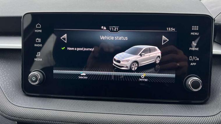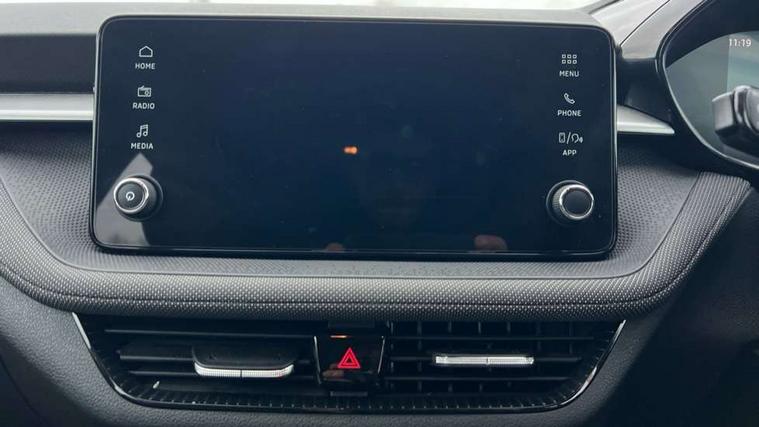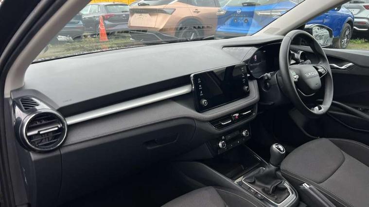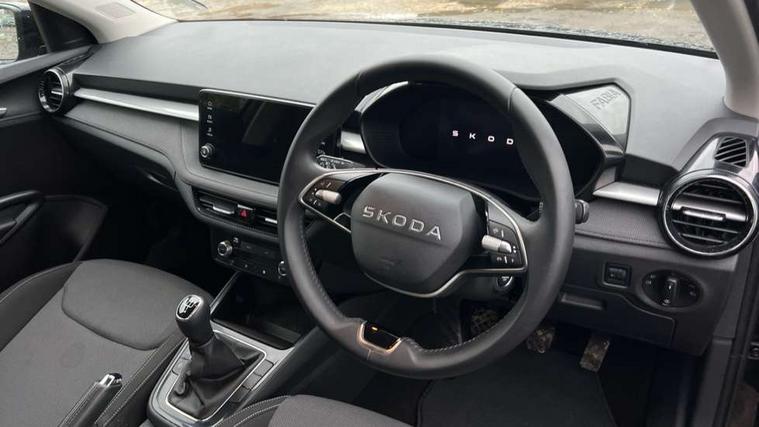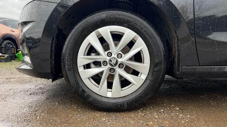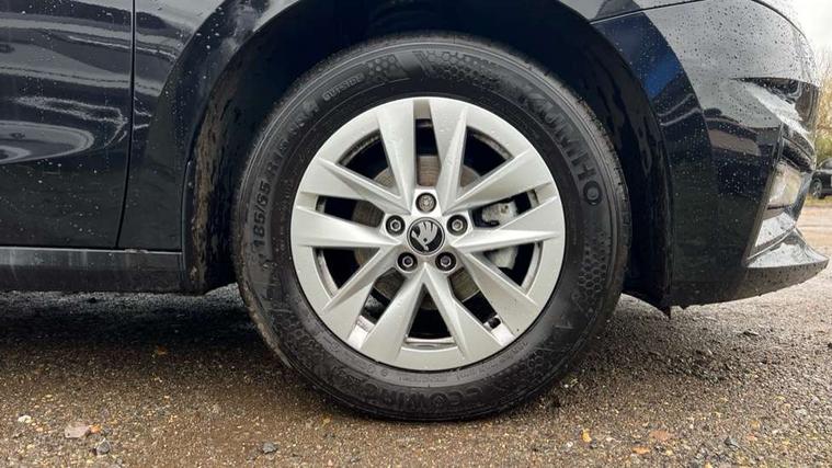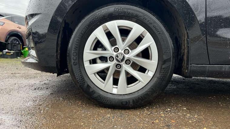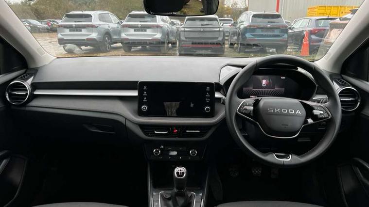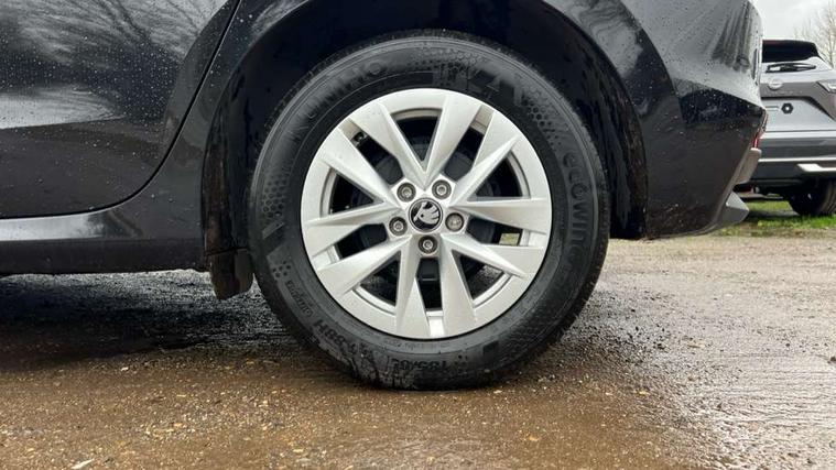 8" Digital instrument display, Advanced driver attention and drowsiness monitor, Bluetooth connection, Electromechanical power steering, Exterior temperature gauge, Service interval indicator, Traffic sign recognition, Wireless SmartLink for Apple CarPlay and Android Auto, 6 Speakers (4 in front and 2 in rear), 8.25" Skoda infotainment touchscreen display, Auxiliary socket for external MP3 player, DAB digital radio reception, Auto dimming rear view mirror, Body colour door mirrors, Body coloured bumpers, Door mirror integrated indicators, Front and rear electric windows, Front window wiper intermittent control, Headlight range control - Automatic, Ice scraper in fuel cap, LED 3rd brake light, LED daytime running lights with coming and leaving home feature, LED rear lights, Rear LED fog light, Rear side wing doors, Rear window wiper with washing nozzles, Roof mounted spoiler, SKODA tailgate lettering in chrome, Unique dark chrome design logo on alloy wheels, 2 reading lights in front and 2 reading lights in rear, 3 rear headrests, Backrest split and folding, Central console with removable cup holder and storage box, Chrome handbrake release button, Dual zone air conditioning with climatronic electronic control, Fabric upholstery, Front centre armrest, Gearshift knob/handle in leather, Grain satin black interior door handles, Hand brake lever handle in leather, Height adjustable front headrests, Height adjustable front seats, Height adjustable steering wheel, ISOFIX and TopTether anchorage points to the outer rear seats, ISOFIX and TopTether on the front passenger seat, Luggage compartment lighting, Manually adjustable lumbar support in front seats, Pollen filter, Rear seat bench unsplit, Single front passenger seat, Skoda lettering on steering wheel, Storm grey headlining, Sun visors with mirror and airbag label on passenger side, Textile floor mats, Ticket holder, Umbrella in drivers door, 3-point height adjustable front seats belts with pretensioner and force limiter, Automatic warning lights in case of crash, Driver and passengers airbag with switch off function, e-Call+, ESC including ABS, MSR, ASR, EDS, HBA and XDS, Front and rear seat belt warning, FRONT ASSIST (AEB City and AEB Inter Urban), Front side airbags, Head airbags, One tone horn, Pedestrian protection, Three rear 3-points safety seat belts with pretensioner and force limiter including stop function for outer rear seat belts, Tyre pressure monitoring system, Anti-theft alarm system including immobiliser, interior monitoring, backup horn, and towing protection, Central locking with radio remote control, interior controls, SAFE function and 2 foldable keys, Black painted air vents, Grain satin black central console cover, Metallic grey upper decorative trim, Satin black door and side trim panel in front, Textile Kota grey lower decorative inserts, Anti-theft wheel bolts protection, Super-low rolling resistance tyres,
