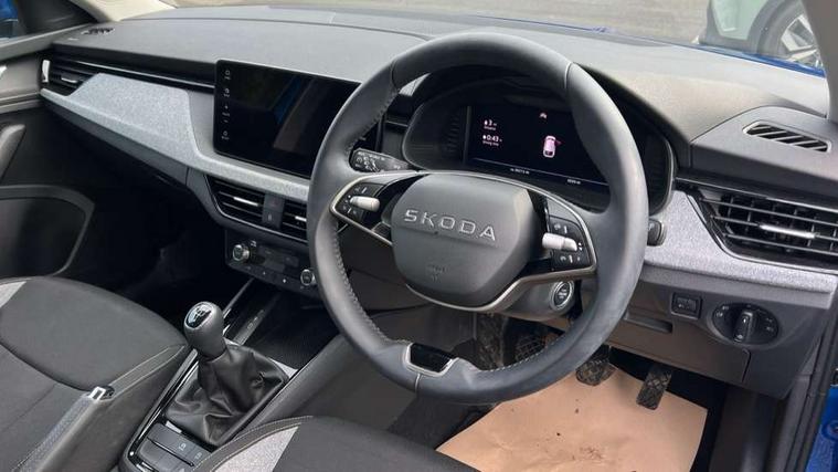 Advanced driver attention and drowsiness monitor, Bluetooth, e-Call (emergency call), Front assist system, PAS, Rear parking sensors, Rear view camera, Speed limiter, Tailgate, Traffic sign recognition, Virtual Cockpit - 10.25" digital display, Voice control system, Wireless smartlink, 4 USB C ports, 8 Speakers, 9.2" Skoda navigation display, DAB radio, Auto dimming rear view mirror, Automatic headlamp activation with Coming home and Leaving home feature, Automatic high/low beam, Body colour bumpers, Body colour door mirrors and handles, Chrome moulding around grille, Front and rear electric windows, Full LED headlights, Heated rear window, LED 3rd brake light, LED brake lights, LED daytime running lights, LED front turning lights, LED high beam, LED low beam, LED taillights, Rear LED fog light, Rear side wing doors, Rear wiper, Tinted windows, Unique dark chrome design logo on alloy wheels, 12V socket in luggage compartment, 3 seat bench in 2nd row, Black / Grey armrest stitching, Black hotstamping, Cargo elements, Chrome inner door handles, Door inserts in satin black, Driver and passenger sun visors with vanity mirror, Dual zone climate control, Front and rear roof lights, Front centre armrest, Front head restraints, Glasses storage in roof liner, Height adjustable driver seat, Height adjustable passenger seat, Ice scraper, Illuminated glove compartment, Inner circulation control with pollen filter, ISOFIX for front passenger seat, Isofix preparation for back seats, Leather gearknob and handbrake lever, Loft cloth upholstery, Luggage net under rear parcel shelf, Manual lumbar support for front seats, Net package and top tether hooks in boot space, Pearl grey ceiling, Pocket on the back of both front seats, incl. mobile phone pockets, Single front passenger seat, Skoda lettering on steering wheel, Textile floor mats, Third rear headrest, Ticket holder, Top tether for front passenger seat, Umbrella in driver's door, 3x3 point rear seatbelts, ABS, Child locks, Curtain airbags and front side airbags, Disc brakes, Driver and front passenger airbags, ESP, Hill hold control, Manual leather parking brake, One tone horn, Passenger airbag switch off function, Seatbelt reminder for driver and front passenger, Tyre pressure monitoring system, Anti theft alarm system with interior monitoring, backup horn and towing protection, Anti-theft wheel bolts, Remote central locking with 2 remote folding keys, SAFE function for remote central locking, Decord pad, door inserts Kota uni,