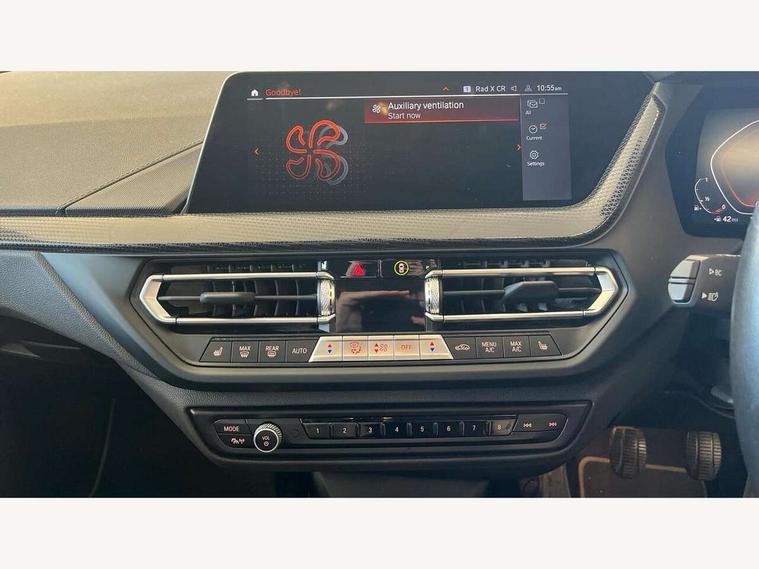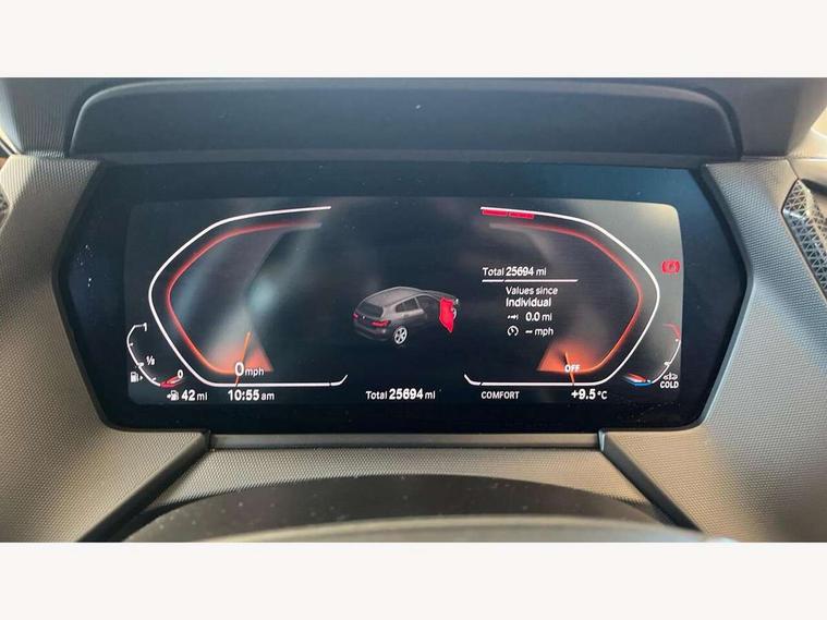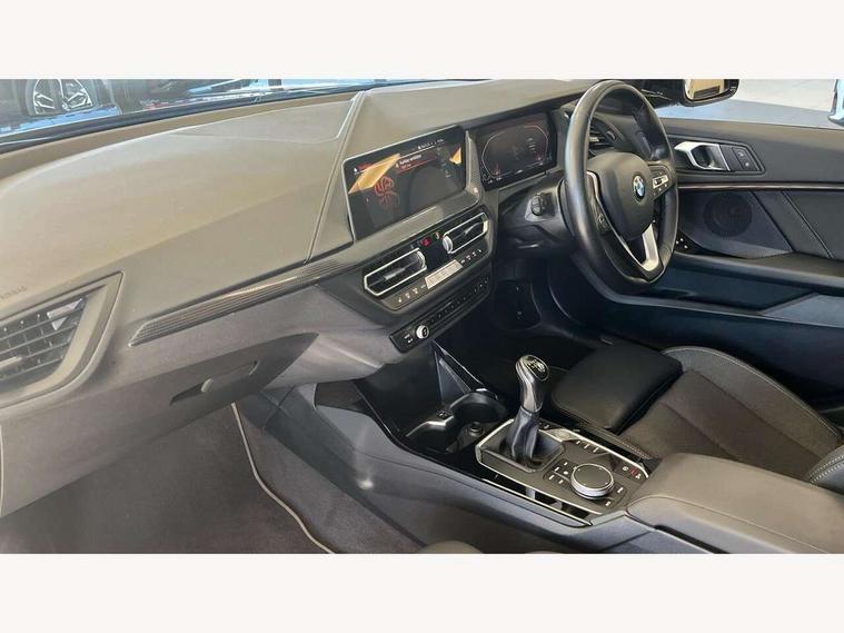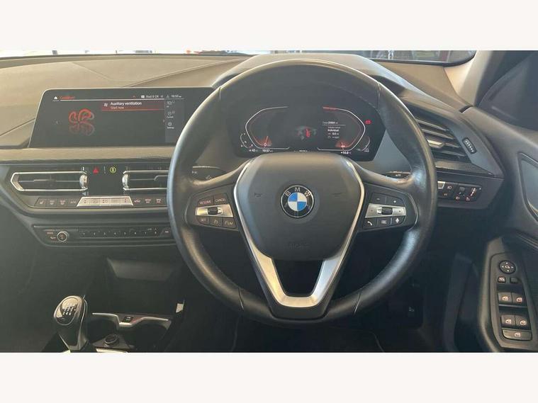 Active guard plus, Attentiveness assist, BMW ConnectedDrive online services, BMW Teleservices, Check Control warning system for monitoring of lights and door/luggage compartment open warning, Cruise control with speed limiter, Eco pro mode, Electric power steering with Servotronic steering optimised at all speed ranges, Front axle single joint with specific axle kinematics to minimise drive influences on steering + provide increased rigidity agile driving behaviour, Integrated owners handbook, Lane departure warning system, Oil sensor for level and grade, On board computer, Optimum shift indicator, Personal Profile, Pull away assistant, Rigidly mounted rear subframe - Multi link construction with separate spring / damper configuration and excellent driving characteristics, Speed limit Info including no-overtaking indicator, Aluminium lightweight construction, Anti roll bar front and rear, Balancer shaft, Double VANOS twin scroll turbocharging system, Drive Performance Control, Electronic differential lock, High precision injection, Petrol Particulate Filter, Suspension with twin tube gas filled shock absorbers with degressive characteristic curve, VALVETRONIC engine management, DAB Digital radio, Auto dimming rear view mirror, Automatic windscreen wipers and automatic headlight, Body colour door handles, Body colour mirror caps, Body colour roof trims, Chrome exhaust twin tailpipes round 90mm in left, Direction indicator side lights in exterior mirrors, Electrically adjustable exterior mirror with mirror adjustment switch on drivers armrest and aspheric on driver side, convex on passenger side, Fading support, Follow me home headlights, Front and rear bumper system with replaceable deformation elements, Front and rear electric windows with open and close fingertip control, anti trap facility and comfort closing, Front bumper in Body colour with exclusive Sport air inlets finished in High gloss Black, Front door sill finishers in black plastic with BMW designation in metallic look, Green tinted heat protection glazing, High gloss shadowline window frame, Recess cover mirror frames and B/C pillar embelisher trim, High level third brake light, Integrated front windscreen with washer jets, Kidney grille in chrome frame with highgloss black struts, LED daytime running lights, LED eyebrow turn indicators, LED front fog lights, Lightweight engineering, Manual headlight beam throw control, Manual headlight levelling, Matt black air guide grilles, Matt black wheel arch trim, Model designation on electric bootlid, Nearside reverse light in rear light cluster, Preparation for high beam assistant, Rear bumper in Body colour with exclusive Sport design elements finished in High gloss Black, Rear fog lights, Rear side wing doors, Rear window wiper, Shark fin antenna, Trailer stabilisation logic, Visible VIN plate, Welcome lighting, 12V power socket in front centre console with blanking plug, 3 rear seat head restraints, 3 seat bench in 2nd row, 3 spoke sports leather steering wheel in black leather with black stitching and decorative finisher in pearl chrome + gearshift lever knob in leather, Black boot net with lashing eyes, Cargo function on 2nd seat row, Child seat ISOFIX attachment for two outer rear seats and front passenger seat with anchorage points, Conditioned based service, Driver and front passenger backrest net on rear, Driver side folding compartment in instrument panel, Folding rear clothes hook, Four grab handles integrated in roof lining, Front and rear door pockets with bottle holders, Front and rear side armrest integrated into door trim, Front armrest, Front sports seats, Glove compartment, Height adjustable front head restraints, Luggage compartment for bag hooks on left and right, foldable luggage compartment liner and four lashing eyelets, Manual adjust steering wheel, Multi-function controls for steering wheel, Single front passenger seat, Storage compartment in centre console, Storage compartment in luggage compartment, Stowage of the parcel shelf in luggage compartment trim, Sun visors with vanity mirrors and insert tab, Two front centre console cupholders, Two zone automatic air conditioning, Type C two USB ports in rear centre console, Velour floor mats, BMW live cockpit professional pack- 1 Series, Connected pack professional - 1 Series, Interior lights pack - 1 Series, 2 tone horn, 3 point seatbelts on all seats, front pyrotechnic belt tensioners, stopper and belt force limiters, rear coded belt buckles, Airbags - Front driver/passenger, front and rear curtain head protection, front side, manual deactivation of front passenger airbag, Anti lock braking system (ABS) with brake assist, BMW emergency call, Brake drying, Braking readiness, Child proof locking system in rear door, City braking function, Comfort modes, Cornering brake control, Crash sensor activating of airbags, Unlocking doors, hazard warning lights, interior light, safety battery terminal, Driver and front passenger seat belt security check, Dynamic stability control + (DSC+), Dynamic Traction Control - DTC, Electrically operated hand brake, Front and rear disc brakes, Seatbelt warning, Side impact protection, Tyre pressure monitoring system, Warning triangle and first aid kit, Central locking switch for all doors, fuel filler cap and luggage compartment, Deadlocking function system to all doors, Drive away locking system on all doors and luggage compartment with de-activated in iDrive settings, Locking wheel bolts, Remote central locking with two Integrate key, one button for opening and closing all lock, open and close window, button for open luggage compartment, Start/stop button illuminated in centre console with keyless engine start and auto start stop deactivation button, Thatcham Cat.1 alarm and immobiliser, Wheel slip limitation close to the actuator (ARB), Contrast stitching on instrument panel, Illuminated Berlin interior trim, Electrically powered 12V compressor, Reduced rolling resistance tyres,