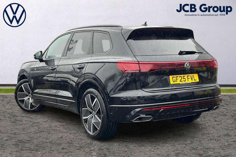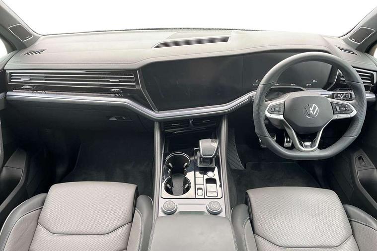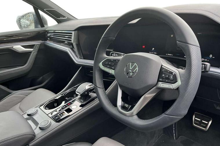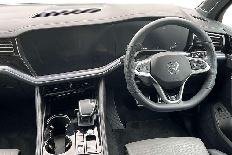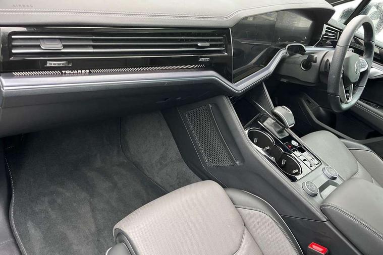 15" Screen Top infotainment system Premium (MIB3), Adaptive cruise control, Advanced driver attention and drowsiness monitor, Driver profile selection, Dynamic road sign display, E-Sim card for online connectivity, eCall emergency system, Innovision cockpit, Intelligent park assist, Mobile phone interface with inductive charging, Multi-colour Active Info display, Park Assist - Sensor controlled steering aid to assist parallel or bay parking, PAS, Warning signal and warning light for front and rear seatbelts not fastened, Wireless app connect, Adaptive chassis control, DAB Digital radio, Diversity antenna for AM/ FM reception, We Connect and We Connect Plus functionality, Automatic coming/leaving home lighting function, Automatic headlights, Black door mirrors, Black style comfort bumpers, Dynamic headlight range control with dynamic cornering light, Electric front tilt/slide panoramic sunroof and fixed rear sunroof, Electrically power adjustable, heated, folding, auto dimming, front passenger exterior door mirror lowering function, External USB type C socket and charging sockets, Gloss black roof rails, HD LED Matrix beam plus digital headlight projection with variable light distribution, Headlight washers, Highway light, LED 3rd brake light, LED daytime running lights, LED rear combination lamp with variable lighting functions and special styling, Poor weather light, Rain sensor, Rear exhaust tailpipe, Rear fog light with back up light on both sides, Rear light bar and illuminated logo, Rear side wing doors, Rear wiper, Stainless steel door sill protection, 12V socket in centre console, 3 rear headrests, 3 seat bench in 2nd row, 4 zone climate control, Airbag label on sun visor and B-pillar, Brushed stainless steel pedals, Double sun visors with illuminated vanity mirrors, Front + rear carpet mats, Front centre armrest, Leather wrapped multifunction sports steering wheel, heated, with touch control and shift paddles, Mechanical rear seat release, Power adjustable lumbar support in front, Power seats in front, right side with memory features and seat cushion depth adjustment, Rear seat backrest and split folding with center armrest, Single front passenger seat, Memory pack plus - Touareg, 3 point seatbelts, outer rear with ECE lable, ABS, Child locks on rear doors, Curtain airbags, Driver and front passenger safety-optimised head restraints, Driver/Front Passenger airbags, Extended pedestrian protection measures, Front assist, Front seat side impact airbags, Generative braking with start and stop system, Height adjustable 3 point front seatbelts with pre tensioners, Passenger airbag deactivate switch, Three 3 point rear seatbelts, Two tone horn, Tyre pressure loss indicator, Warning triangle and first aid kit, Alarm system with interior protection, Easy open and close sensor controlled luggage compartment opening and closing with remote unlocking, Keyless Access Keyless locking and starting system with SAFELOCK, Aluminium decorative inserts, Black decorative trims, Gloss black decorative inserts in centre console, Tool kit,