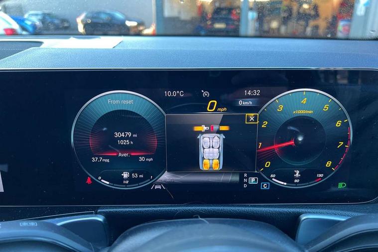 10.25" Digital instrument cluster display screen, 10.25" Digital media screen display, Active lane keeping assist, Attention assist - Monitors steering behaviour and long journey fatigue, Brake pad wear indicator warning light, Car wash mode, Cruise control with limiter, DYNAMIC SELECT with a choice of driving modes (ECO, Comfort, Sport and Individual), ECO start/stop function, Fluid level warning indicator for fuel, oil, coolant and washer fluid, Hard disk navigation, Hey Mercedes Voice activation, Lamp failure indicator, Mercedes me connect including emergency call system, accident recovery, breakdown and maintenance management, Mercedes me remote services, Outside temperature gauge, Owners manual and service booklet in English, Parameter steering system, Pre-installation of private car share, Preinstallation for parking damage notification, Radio aerial integrated into front and rear windshields, Service indicator (ASSYST), Smartphone integration with Apple CarPlay and Android auto, Speed limit assist, Trip computer in multifunction display with current consumption indicator, Comfort suspension, Rear axle multi-link, DAB digital radio tuner, MBUX multimedia system with DAB digital radio and touchpad including satellite navigation, Mercedes Benz sound system (225 W) with 10 speakers, 1 central speaker, speakers on doors, a tweeter on door, one sub woofer + boost amplifier, Pre installation for Mercedes Benz Link, USB (type C) port in front stowage compartment, USB (type C) ports (2) in stowage compartment, Adaptive brake lights, Aerial for GPS, AMG bodystyling door panels black grained with chrome plated inserts, AMG bodystyling front apron with chrome splitter, AMG bodystyling rear apron with diffuser optics and chrome trim element, AMG specific front and rear bumper including underride guard in high gloss chrome, Beltline strips and weather strip in chrome, Body coloured bumpers, Body coloured door handles with chrome insert for keyless entry, Body coloured door mirror caps, Electric adjustable and heated door mirrors with integrated LED side indicators, Exhaust system with dual flow exhaust pipes (non-functional), Front and rear electric windows, Headlamp assist automatic headlamp activation, Heated glass rear windscreen + timer control, High level LED third brake light, Interior mirror with black reading lamps and frameless, LED high performance headlamps with integrated LED daytime running lights, LED tail lamp, Polished aluminium roof rails, Privacy glass with dark tinting on rear side windows and rear window, Radiator grille with pins in chrome and single louvre with chrome insert, Rain sensor windscreen wipers, Rear fog lamp, Rear side wing doors, Rear wiper, Two visible tailpipe trim elements exhaust, 3 seat bench in 2nd row, 3 spoke multifunction sport steering wheel in nappa leather, Air conditioning - Two zone thermotronic luxury automatic climate control with display, AMG sports pedals with brushed stainless steel surfaces and black rubber studs, Artico man-made leather/Microfibre Dinamica upholstery with red contrast stitching, Automatic child seat recognition sensor, Black floor mats with AMG lettering, Black roof lining, Fore/aft adjustment rear seats, Freight packaging with tie-down hooks, Front centre armrest with stowage, Front door sills with illuminated changeable cover, Front passenger grab handle with brushed side silver chrome, Front sports seats with adjustable head restraints, Galvanished gear shift paddles on steering wheel, Heated front seats, Height/reach adjustable steering column, Interior lighting - 64 colour Ambient lighting, Luggage net on driver/front passenger seat backrest, Net in front passenger footwell, Rear armrest with two integral cup holders for drinks, Rear seat easy entry, Single front passenger seat, Stowage compartment in centre console, Stowage compartment with retractable cover, Third row of seats for two people on rear seat, Touchpad on center console, Twin front cup holders, Two outer rear seat isofix and top tether child seat fixing points, Interior lighting with light and sight pack - GLB, Keyless go pack - GLB, Mirror pack - GLB, Parking pack - GLB, Seat comfort package - GLB, 3 rear 3 point seatbelts, Active bonnet pedestrain safety measure which detects an impact and raises bonnet by 65mm, Active brake assist includes forward collision warning system with autonomous braking, Adaptive brake assist with hold function and hill start assist, Airbags - kneebag for driver, Anti-lock braking system (ABS) with brake assist, Childproof locks manually operated for rear doors and electrically operated for rear power windows, Crash responsive emergency lighting, Curve dynamic assist, Driver and front passenger head and sidebags, Driver and front passenger windowbags, Dual stage driver and front passenger airbags, Electronic parking brake, Electronic stability programme with acceleration skid control, Front and rear seatbelt reminder, Front brake callipers with Mercedes Benz lettering, Front passenger seat occupancy sensor, Tyre pressure monitoring system, Warning triangle and first aid kit, Interior monitoring system, Remote central locking and crash sensor with emergency opening function, Thatcham category 1 alarm system with immobiliser and interior protection, Urban guard vehicle protection - Anti theft alarm system, tow away protection with visual and acoustic warning and alarm siren, Vehicle key with decorative surround in chrome, Black air vents with chrome surround, Carbon structure trim, 19" AMG 5 twin spoke light alloy wheels painted in high gloss black with high sheen finish, Summer tyres, Tirefit tyre sealant kit,