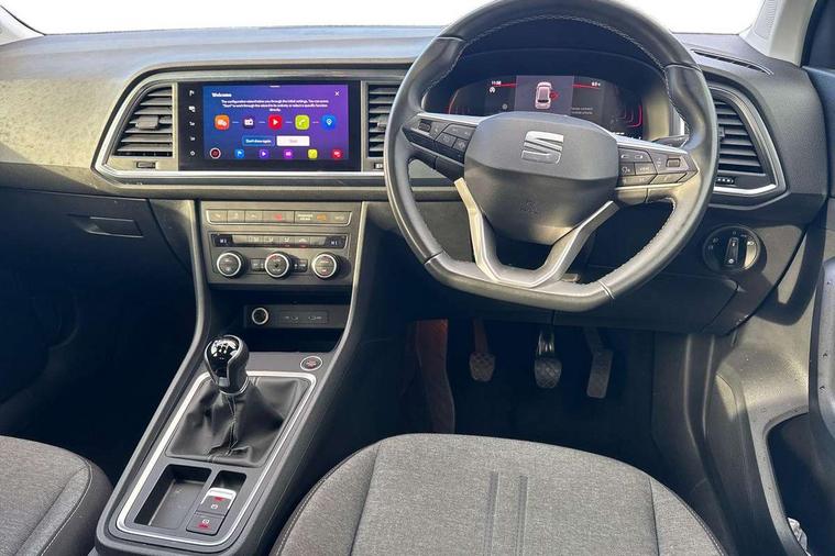 8" Digital cockpit, Colour multi-function on board computer display, Cruise control system with speed limiter, E-call, Outside temperature gauge, PAS, SEAT drive profile with driving experience button - Normal, Sport, Eco and Individual mode, steering and throttle response, Self parking functionality (includes front and rear parking sensors), Start/stop system, Tailgate, Trip computer, Wireless full link smartphone integration, Wireless phone charger, Steering wheel mounted audio/phone controls, Black wheel arch surrounds, Body colour bumpers, Chrome front grille frame, Chrome roof rails, Chrome side window trim, Daytime running lights, Door mirrors with welcome light silhouette, Dynamic headlight range control with self adjusting whilst driving, Electric adjustable/heated/folding door mirrors, Front and rear electric windows, Full LED headlamps with lens and LED front fog lamps with cornering function, LED rear tail lights with dynamic indicators, Rear fog lights, Rear side wing doors, Rear wash/wipe, Simulated exhaust pipes, Variable front intermittent wipers, 12V socket in front, 3 seat bench in 2nd row, 60/40 split folding rear seat, Cloth upholstery with front comfort seats, Drawer under right front seat, Dual zone climate control, Front and rear head restraints, Front centre armrest, Front seat back storage pockets, Height adjustable driver and passenger seat with lumbar adjustment, ISOFIX points in outer rear seats with top tether anchorage points, Leather steering wheel and gear knob, Rear armrest and easy back seat release mechanism from boot, Single front passenger seat, Interior lighting pack - Ateca, Navigation system pack with DAB - Ateca, 3x3 point rear seatbelts, ABS, Traction control system (TCS), Electronic stability control (ESC) and Electronic differential lock system (XDS), Airbags - Driver and front passenger airbag with deactivation, front side, two curtain and driver's knee airbags, Electric parking brake with auto hold function, Front and rear seatbelt reminder, Front assist with autonomous emergency braking, Hill hold control, Manual rear child locks, Single tone horn, Tiredness recognition system, Traction control, Tyre pressure monitoring system, Alarm, Keyless entry, Locking wheel bolts, Remote central locking, Chrome interior detailing, 18" Performance machined alloy wheels 36/2 in nuclear grey,
