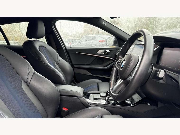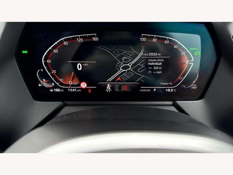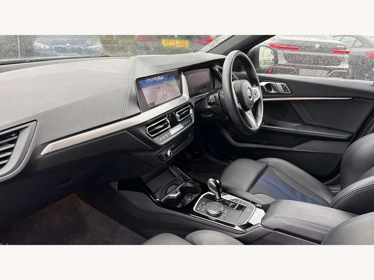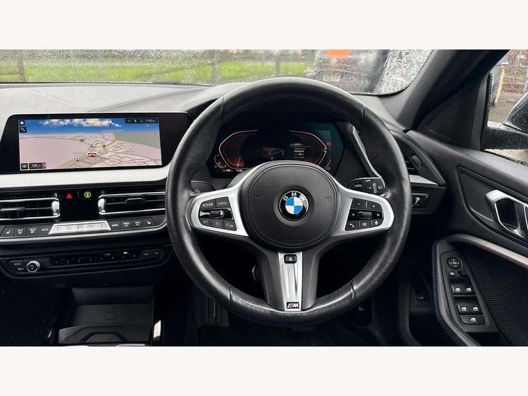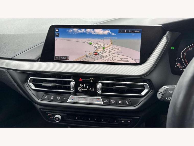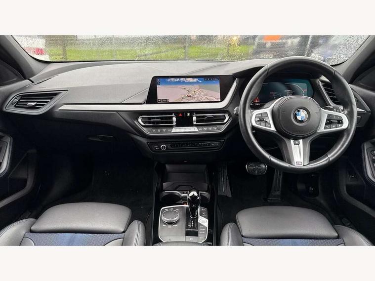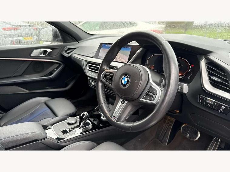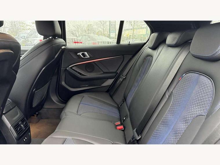 Active guard plus, Attentiveness assist, Bluetooth / WiFi interface for wireless connection of mobile terminal devices and audio streaming, BMW ConnectedDrive online services, BMW Teleservices, Check Control warning system for monitoring of lights and door/luggage compartment open warning, Cruise control with brake assist, Eco pro mode, Front axle single joint with specific axle kinematics to minimise drive influences on steering + provide increased rigidity agile driving behaviour, Integrated owners handbook, Lane departure warning system, Oil sensor for level and grade, On board computer, Optimum shift indicator, Personal Profile, Pull away assistant, Rigidly mounted rear subframe - Multi link construction with separate spring / damper configuration and excellent driving characteristics, Speed limit Info including no-overtaking indicator, Speed limiter, Aluminium lightweight construction, Anti roll bar front and rear, Balancer shaft, Double VANOS twin scroll turbocharging system, Drive Performance Control, Electronic differential lock, High precision injection, M sport suspension, Petrol Particulate Filter, Twin tube gas filled shock absorbers with degressive characteristic curve, VALVETRONIC engine management, DAB Digital radio, Auto dimming rear view mirror, Automatic headlight beam throw control, Automatic windscreen wipers and automatic headlight, Body colour door handles, Body colour mirror caps, Body colour roof trims, Chrome 'M' logo side designation, Chrome exhaust twin tailpipes round 90mm in left, Chrome kidney grille frame with Satin Aluminium struts, Direction indicator side lights in exterior mirrors, Fading support, Folding side mirrors with auto dimming/folding wing mirrors with auto dimming, Follow me home headlights, Front and rear bumper system with replaceable deformation elements, Front and rear electric windows with open and close fingertip control, anti trap facility and comfort closing, Front door sill finishers in black plastic with M designation in metallic look, Green tinted heat protection glazing, Heated, electrically adjustable exterior mirror aspheric on driver side, convex on passenger side, High gloss shadowline window frame, Recess cover mirror frames and B/C pillar embelisher trim, High level third brake light, Integrated front windscreen with washer jets, LED daytime running lights, LED eyebrow turn indicators, LED front fog lights, Lightweight engineering, Matt black air guide grilles, Matt black wheel arch trim, Model designation on electric bootlid, Nearside reverse light in rear light cluster, Preparation for high beam assistant, Rear fog lights, Rear side wing doors, Rear window wiper, Shark fin antenna, Trailer stabilisation logic, Visible VIN plate, Welcome lighting, 12V power socket in front centre console with blanking plug, 3 rear seat head restraints, 3 seat bench in 2nd row, 3 spoke sports leather steering wheel with black leather and stitching, pearl chrome decorative finish, specific M Badge, Ambient interior lighting, Anthracite headlining, Child seat ISOFIX attachment for two outer rear seats and front passenger seat with anchorage points, Conditioned based service, Driver and front passenger seat heating, Floor mats in anthracite velour with contrasting colour seam to match contrast stitching on instrument panel, Folding rear clothes hook, Four grab handles integrated in roof lining, Front and rear door pockets with bottle holders, Front and rear side armrest integrated into door trim, Front armrest, Front sports seats, Glove compartment, Height adjustable front head restraints, Luggage compartment for bag hooks on left and right, foldable luggage compartment liner and two lashing eyelets, Manual adjust steering wheel, Multi-function controls for steering wheel, Single front passenger seat, Storage compartment in centre console, Sun visors with vanity mirrors and insert tab, Two front centre console cupholders, Two zone automatic air conditioning, Additional interior lighting pack - 1 Series, Additional storage compartment pack with code 493 -1 series, BMW live cockpit professional pack- 1 Series, Connected pack professional - 1 Series, Interior lights pack - 1 Series, M Sport exterior styling aerodynamics pack - 1 Series, 2 tone horn, 3 point seatbelts on all seats, front pyrotechnic belt tensioners, stopper and belt force limiters, rear coded belt buckles, Airbags - Front driver/passenger, front and rear curtain head protection, front side, manual deactivation of front passenger airbag, Anti lock braking system (ABS) with brake assist, BMW emergency call, Brake drying, Braking readiness, Child proof locking system in rear door, City braking function, Comfort modes, Cornering brake control, Crash sensor activating central locking release, hazard warning lights, fuel cut off, interior lighting + activation of safety battery terminal clamp, Driver and front passenger seat belt security check, Dynamic stability control + (DSC+), Dynamic Traction Control - DTC, Electrically operated hand brake including automatic hold function, Front and rear disc brakes, Seatbelt warning, Side impact protection, Tyre pressure monitoring system, Warning triangle and first aid kit, Central locking switch for all doors, fuel filler cap and luggage compartment, Deadlocking function system to all doors, Drive away locking system on all doors and luggage compartment with de-activated in iDrive settings, Locking wheel bolts, Remote control with integrated key with High-gloss Black inlay and M designation and 1 button for open/ close lock, window, open luggage compartment, Start/stop button illuminated in centre console with keyless engine start and auto start stop deactivation button, Thatcham Cat.1 alarm and immobiliser, Wheel slip limitation close to the actuator (ARB), Contrast stitching on instrument panel, Electrically powered 12V compressor, Reduced rolling resistance tyres,