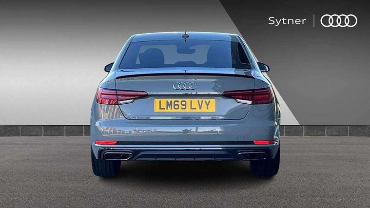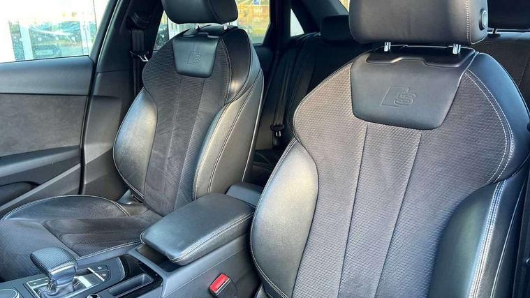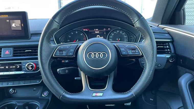 7" Colour driver information system, Audi connect safety and service (e-call), Audi drive select, Audi parking system plus with front and rear sensors, Audi Pre sense collision avoidance, Bluetooth interface, Electric boot release, Electromechanical power steering, MMI SD card Navigation, Service interval indicator, Stop/start button, Voice control system, 54 litre fuel tank, 2 USB interfaces and Aux-In jack, DAB digital radio module, Acoustic windscreen, Air inlets in titanium black, Auto dimming rear view mirror, Automatic headlights + automatic windscreen wipers, Blue tinted glass, Body colour bumpers, Body colour door handles, Chrome rolled exhaust, Chrome tailpipe finisher, Electric front windows, Electric rear windows, Headlight range control, High beam assistant, High gloss black door mirrors, High gloss black triangular aperture at rear door, LED daytime running lights, LED indicators in door mirrors, Privacy glass with front acoustic glazing, Radiator grille and frame in Titanium Black, Rain and light sensors, Rear diffuser in Twilight grey matt, S Style rear spoiler, Titanium black front and rear air intakes, Titanium black window surround, 3 spoke flat bottom high multi-function leather steering wheel, 3 zone climate control, 4 way electric lumbar support for driver and front passenger, 40/20/40 split folding rear seats with rear centre armrest, Black cloth headlining, Contrast stitching on seats, steering wheel and gear lever gaiter, Front centre armrest, Front headrests, Front/rear floor mats, Height and reach adjustable steering wheel with full size airbag, Illuminated door sill finishers, Isofix child seat preparation for front passenger/outer rear seats inc passenger airbag deactivation, Jack and tool kit, Luggage compartment carpet, Perforated leather gearknob, Rear headrests, Stainless steel foot rest, Stainless steel pedals, Sunvisors with vanity mirrors, Top tether anchor plate for isofix child seat, Non Smokers pack, S line exterior styling pack - A4 Saloon, 3 point seatbelts on all rear seats, Adaptive driver and front passenger airbags, Electromechanical parking brake, Electronic stabilisation control including ABS, ASR and EDL, Front head airbags, Front seatbelt pretensioners + load limiters, Front side airbags, Multi-Collision braking, Pop-up bonnet for pedestrian protection, Seatbelt warning, Traction control, Tyre pressure warning, Variable restraint system, Warning triangle and first aid kit, Anti theft alarm, Keyless Start, Locking wheel bolts, Remote central locking, Thatcham category 1 alarm + immobiliser, MMI radio plus with smartphone interface, Piano black finish inlay, Tyre repair kit,