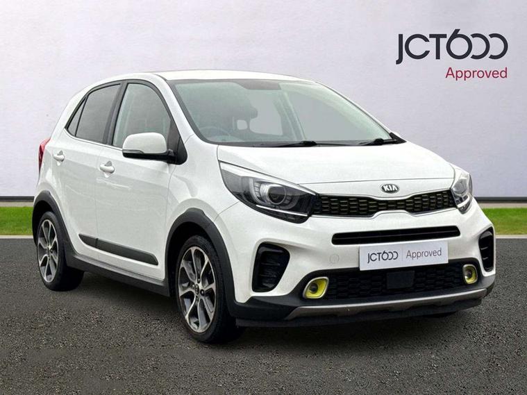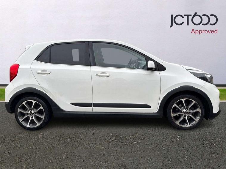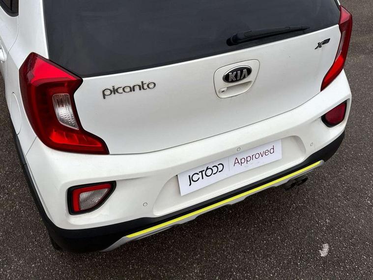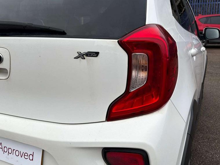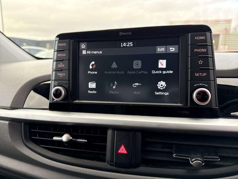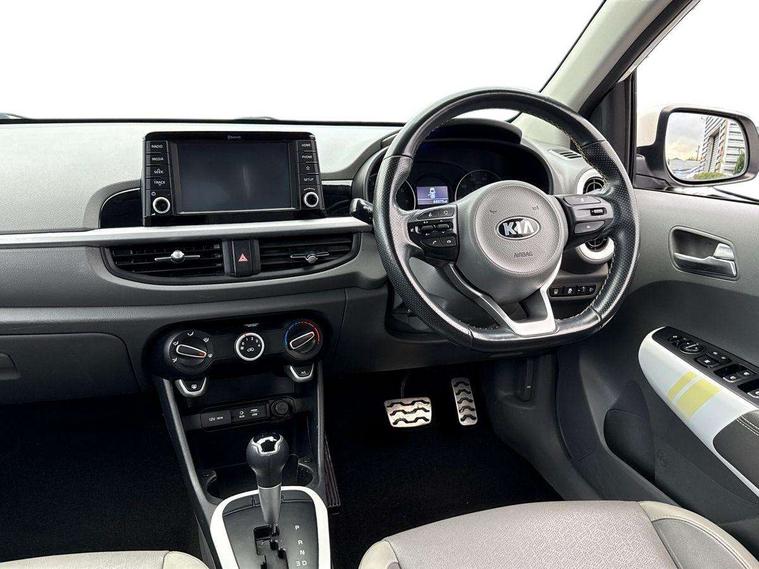 7" touch screen, Apple car play/Android Auto, Digital clock, Emergency stop signalling system, External temperature gauge, PAS, Rear parking sensors, Reversing camera, Tachometer, Trip computer, Voice control system, 6 speakers, Bluetooth connectivity including audio streaming, DAB Digital radio, Steering wheel mounted controls, USB and auxiliary socket, Automatic headlights, Black bodyside mouldings, Black grille with chrome surround, Black wheel arch cladding, Body colour bumpers, Body colour door handles, Body colour door mirrors, Chrome side window trim, Day/night rear view mirror, Electric adjustable/heated/folding door mirrors, Front and rear electric windows, Front fog lights, Headlamp levelling, Heated rear window, LED daytime running lights, LED rear lights, Privacy glass, Projector headlamps, Rear wash/wipe, Silver skid plates, Twin exhaust pipes, Variable front intermittent wipers, Welcome home function, 12V power point front, 60/40 split/folding 2nd row of seats, Assist grips, Centre console storage and sliding armrest, Coat hooks, Cupholders in centre console, Driver seat height adjust, Driver's sun visor with vanity mirror, Faux leather upholstery, Front interior light, Glovebox, Height adjustable front seat head restraints, Height adjustable rear seat head restraints (x2), Isofix child seat attachment, Leather steering wheel and gear knob, Load area light, Manual air conditioning, Passenger front seat pockets, Passenger sunvisor with vanity mirror, Rear parcel shelf, Satin chrome interior door handles, Slide/reclining front seats, Stainless steel pedals, Tilt adjustable steering wheel, Advanced Driver Assistance Pack - Picanto, 3x3 point rear seatbelts, ABS/EBD, Automatic unlocking of doors in case of impact, Curtain airbags, Dual front airbags, ESC + BAS + VSM + HAC, Front seatbelt pretensioners + load limiters, Front side airbags, Height adjustable front seatbelt anchors, Hill start assist, Passenger airbag deactivate switch, Rear child proof door locks, Seatbelt warning, Side impact protection, Traction control, Tyre pressure monitoring system, Anti theft alarm, Engine immobiliser, Folding key, Locking wheel nuts, Remote central door locking, Speed sensitive auto door locking, High gloss black centre fascia, 16" alloy wheels, Tyre repair kit,