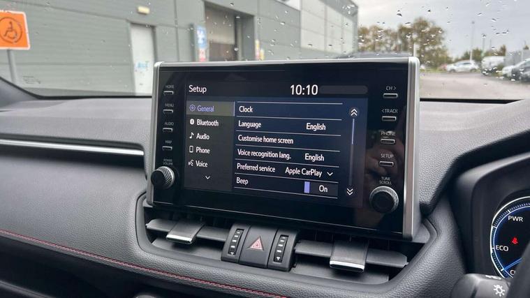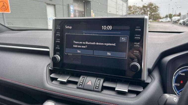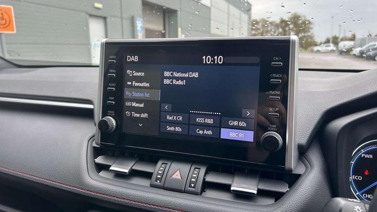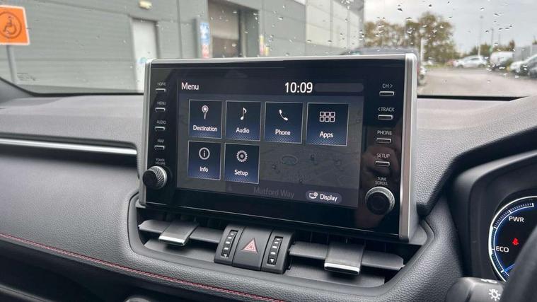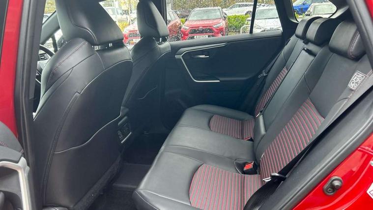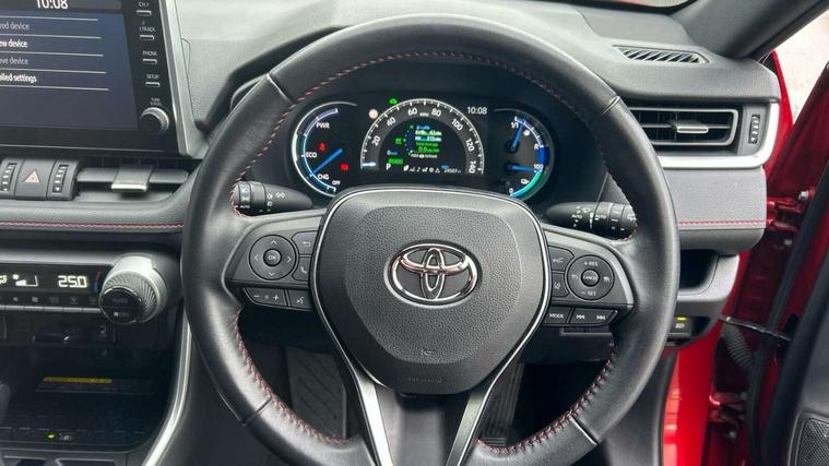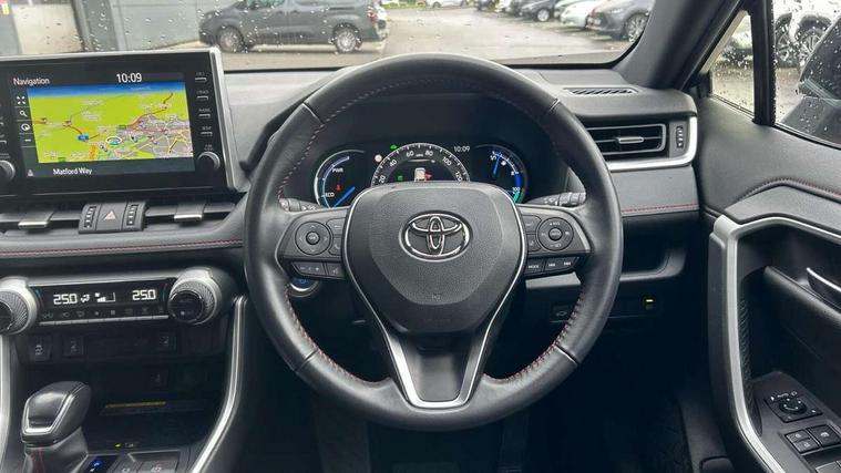 7" Coloured TFT multi informational display, Analog tachometer, Apple car play and Android auto, Blind spot monitoring with rear cross traffic alert, Bluetooth system, Cyclist Detection, Day and night time pedestrian detection, Digital speedometer, Drive mode selector, Driver attention alert system, eCall emergency call system, ECO-driving indicator, Electric power steering, EV audible alert, Front parking sensors, Hybrid system indicator, Intelligent adaptive cruise control, Lane departure alert with steering control, Lane trace assist, Lights on warning, Memory on adjustable speed limiter, My T Connected services, Power boot opening and closing, Push button start, Rear parking camera, Rear parking sensors, Remote boot door release in cabin, Remote boot door release in key, Road sign assist - RSA, Smartphone integration, Touch 2 Go navigation system, Traffic sign recognition, Trip computer, Voice control system, Wireless Mobile Phone Charger, 6.6 kw fast charger, 7.5m cable with home charging plug, Vehicle Stability Control (VSC), 2x USB sockets in front armrest, 2x USB sockets in rear, 6 speakers, 9" Multimedia display, Auxiliary socket for external MP3 player, DAB audio, Toyota touch 2 multimedia system, USB in front centre console, Anti-jam protection on power windows, Auto high beam, Auto up and down function on all power windows, Automatic headlamp levelling, Automatic headlights, Automatic wipers, Automatically retractable door mirrors, Bi-tone black roof, Black door mirrors, Black door moulding, Black front bumper, Black front grille, Black front under-run, Black rear bumper, Black rear spoiler, Black rear under-run, Black roof rails, Black Shark-fin antenna, Body colour door handles, Chrome window surround, Door mirror puddle lights, Dual exhaust pipes, Electric adjustable door mirrors, Emergency brake-light signal (EBS), Follow me home headlights, Framed electrochromatic rear view mirror, Front fog lights, Heated door mirrors, Honeycomb upper front grille, LED daytime running lights, LED dual beam projector headlights, LED front light guide, LED High mounted stop lamp, LED rear lights, Power front windows, Power rear windows, Privacy glass, Rear windscreen defogger, Rear wiper, Trailer sway control, Turning signal integrated indicators in door mirrors, 1.5L front and rear bottle holder, 12V socket in boot, 12v socket in front, 220v power socket in boot, 2x Rear coat hooks, 3 rear headrests, 60/40 split fold rear seat back with toyota easy flat system, Adjustable speed limiter switch on steering wheel, Array microphone, Black roof lining, Blue ambient lighting on front cupholders and open tray on passenger dashboard, Boot light, Clean air filter, Driver and front passenger personal light, Driver and front passenger Whiplash Injury Lessening seats, Driver and passenger seatback pockets, Driver and passenger sunvisors with illuminated vanity mirrors, Dual sided deck board in boot, Dynamic sports seats, Floor mats, Folding rear centre armrest, Front centre armrest, Front cupholders, Front footwell lights, Front headrests, Front/rear roof mounted assist grips, Heated driver and front passenger seats, Heated rear seats, Illuminated entry system, Isofix child seat preparation, Leather gearshift, Lockable glovebox, Manual telescopic and tilt 3-spoke nappa leather steering wheel, Manually reclining and sliding front passenger seat, Multimedia switches on steering wheel, Pollen filter, Power height-adjustable sliding reclining and lumbar support for driver seat, Rear console box, Rear door armrests with cupholder, Rear passenger air vents, Rear view display in display audio screen with dynamic guide lines, Reclining rear seats, Remote dual zone automatic air conditioning, Retractable tonneau cover, Satin chrome interior door handles, Silver gear shift surround on centre console, Sunglasses holder, Synthetic leather upholstery, Telephone and voice recognition switches on steering wheel, Under floor storage in luggage area, 3x3 point rear seatbelts, ABS/EBD, Acoustic vehicle alerting system, Adjustable front driver and passenger seat belt extender, Brake assist function, Brake hold function, Child proof door locks, Collision mitigation braking system, Driver/Front Passenger airbags, Driver/front passenger side airbags, Drivers knee airbag, Electronic parking brake, Electronic Stability Programme (ESP), Front and rear curtain airbags, Front and rear seatbelt reminder, Front passenger airbag detector, Hill start assist, Passenger airbag cut-off device, Pedestrian detection, Pre collision system, Seatbelt pretensioners with load limiters, Toyota safety sense, Traction control, Tyre pressure warning, Glass-breaking alarm sensors, Immobiliser, Intrusion alarm, Light - on and Key in reminder, Motion sensor alarm, Remote central locking, Smart entry + Smart start, Speed sensitive auto door locking, Tilt detection sensors, Black centre air vent surround, Black centre console, Soft-touch black upper dashboard with silver insert, Soft-touch texture on lower dashboard, 19" 5 spoke black machined face alloy wheels, Tyre repair kit,