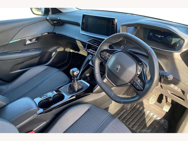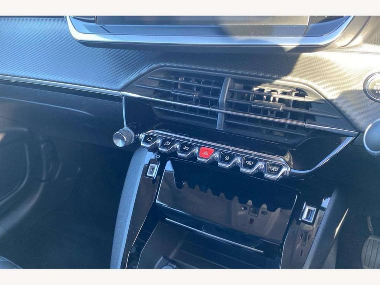 Bluetooth telephone facility, Driver attention warning, Exterior temperature indicator with ice warning, Lane keep assist, Mirror screen with mirror link, apple carplay and android auto, Multi function trip computer, PEUGEOT i-Cockpit with compact steering wheel, PEUGEOT i-Cockpit with configurable 3D headup instrument panel, PEUGEOT SOS and assistance, Push button start, Rear parking sensors, Smart phone docking station, Speed limit recognition and recommendation, Visio Park 1 with 180 degree Colour reversing camera, 2 front USB socket with USB-C, 2x USB sockets in rear, 6 speakers radio with mp3 compatible, DAB Digital radio, Voice recognition for radio, navigation and telephony features, 2 X Rear number plate lights, Automatic hazard light activation upon heavy brake application, Automatic lights, Automatic windscreen wipers, Body coloured exterior door handles, Dark tinted rear side and tailgate windows, Diamond black rear spoiler (roof), Eco LED headlights, Electric front windows + one touch + anti-pinch, Electric rear windows with one touch/anti-pinch, Electrically adjustable, heated and power folding door mirrors, Electrochrome rear view mirror, Follow me home headlights, Gloss black finish on B pillar, Gloss black rear cluster connecting strip, Gloss black window surround, Headlights left on audible warning, LED daytime running lights with 3 claw headlight with distinctive tooth design, LED side indicator lights integrated into door mirrors, Model designation badges front and rear, Nera black door mirror shells, Radiator grille chrome chequered, Rear bumper with gloss black finish, Rear full LED 3D peugeot signature claw effect lights with daylight function, Rear reversing lights, Rear windscreen wiper triggered automatically in reverse gear, Roof mounted aerial, Tailgate with heated rear windscreen and wiper blade, 1/3 to 2/3 split folding rear seats, 12V socket, Automatic air conditioning, Black rods on rear headrests, Black wheel nut covers, Driver and front passenger comfort seats, Driver and front passenger seat manual adjustment in longitudinal and back rest angle, Driver seat mechanical height adjustment, Electric power steering with reach and rake adjustable steering column, Front centre armrest with storage compartment, Front LED interior light with 2 reading spotlights and rear interior light with timer, Gear shift indicator, High centre console with 2 cup holders, Leather steering wheel, Map pockets on the backs of the front seats, Piano keys gloss black plated toggle switches to access main functions of the vehicle, Roof lining - light grey, Satin chrome gear lever, Seatbelt unfastened on the move audible and visual alert for front and rear seats, Tri material cloth/leather upholstery, 2x Isofix child seat fitting on outer rear seats, 3 rear 3 point seatbelts, ABS (Anti-lock Braking System) with EBD (Electronic Brakeforce Distribution) and EBA (Emergency Braking Assistance), Adaptive driver and front passenger airbags with passenger airbag deactivation function, Child locking functionality on rear doors, Driver/front passenger side airbags, Electric parking brake, ESP with Hill Assist, Front and rear curtain airbags, Front and rear disc brakes, Front optimised safety headrests and 3 x rear retractable headrests with height adjustable, Front three point retractable seatbelts with force limiters, Pedestrians active safety brake, Tyre pressure sensor, Acoustic vehicle alert system (AVAS), Automatic door locking when moving off, Deadlock, Electronic code immobiliser, Thatcham cat. 1 alarm with anti lift sensor, Carbon effect Dashboard, front and rear door panel finish, 16" Soho diamond cut alloy wheels, Tyre puncture repair kit,