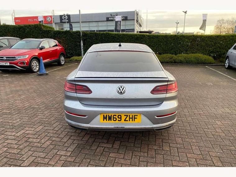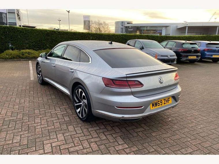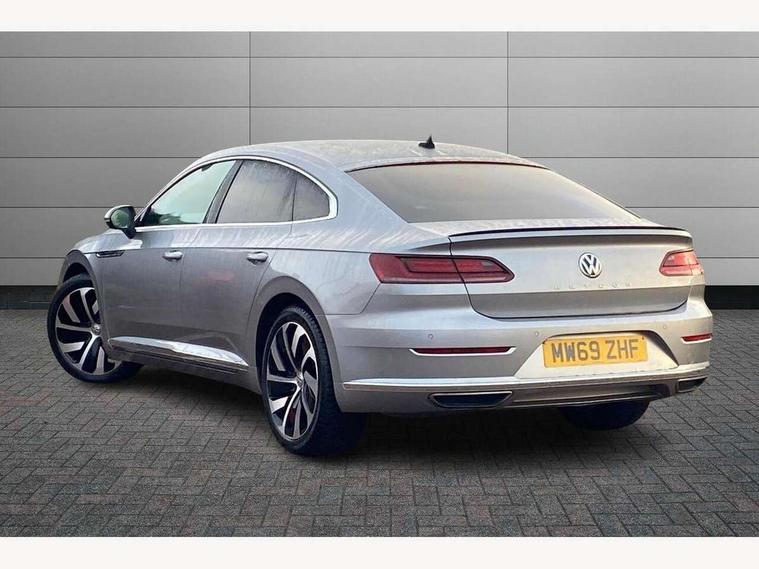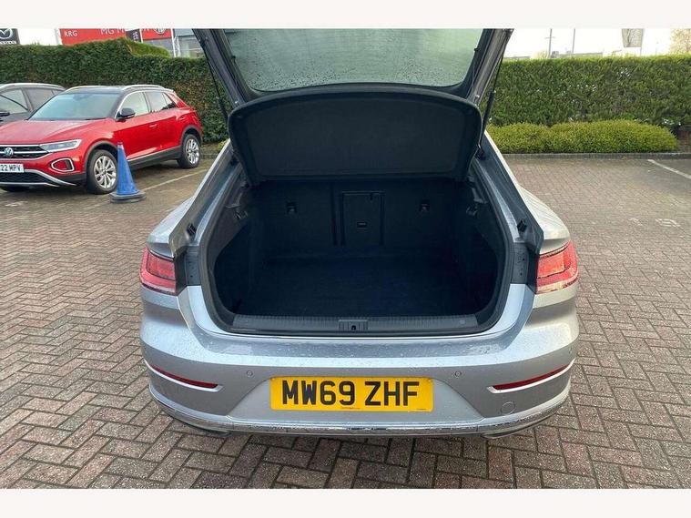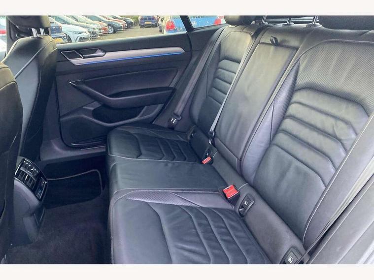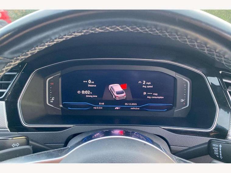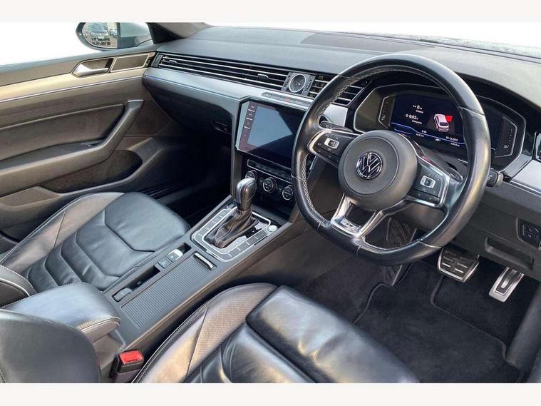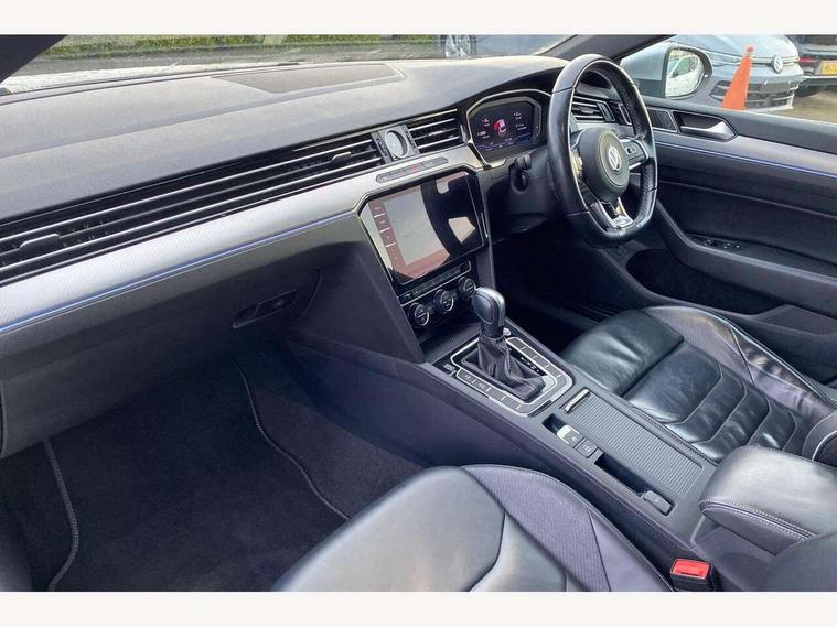 'Lights On' Reminder warning buzzer, 2D/3D map view, Active Info display 12.3" high resolution TFT dash display with customisable menu and information, Adaptive Cruise Control with pedestrian detection and speed limiter, Analogue clock in the dasboard, Bluetooth telephone and audio connection for compatible devices, Car-Net Security and Service, Discover navigation pro with 9.2" touchscreen, integrated voice activation, gesture control, car-net guide and inform plus, Driver alert system with fatigue detection, Driver profile selection, Front Assist with radar sensor controlled distance monitoring system, Lane assist, Low washer fluid warning light, Press and drive key, Progressive steering, Remote boot unlocking, Speedo and rev counter, electronic odometer, trip, service interval display and fuel gauge, Start/Stop function, Streaming and internet, Think blue trainer driver tips and journey analysis, Traffic jam assist, Warning sound and light for doors and boot lid opening, Warning sound and light for front and rear seat belts if unfastened, Battery regeneration during braking, Part galvanised body, CD/MP3/WMA and SD card reader, DAB Digital radio, Driver Personalisation profile selection, MDI with USB/iPod connection cables, Premium USB cable in choice of either Apple or Android smartphone compatibility, SMS functionality - read, compose and send SMS messages using touch-screen display, Title and cover art display, USB interface 3.0 with type C, Auto dimming interior rear view mirror, Automatic coming/leaving home lighting function, Automatic hazard lights activation under emergency braking, Automatic headlights with dusk sensor, Black gloss rear tailgate spoiler, Body colour bumpers, Body colour door handles, Body colour side skirt, Body coloured top and matt black lower door mirrors, Chrome lower door mouldings, Chrome side window surrounds, Chrome trim headlights extending into the radiator grille, Chrome trim on lower bumpers, Chrome trim on radiator grille louvres, Dynamic cornering lights, Dynamic light assist, Electric adjust/heated/foldable with auto dimming on driver side, puddle lights on door mirror and reverse activated kerbview adjust on passenger side, Emergency release function in rear tailgate, Frameless side windows with one touch and convenience opening and closing functions, Front and rear electric windows, Front fog lights, Headlight range control, Headlight washers, Heated rear window, Heated windscreen washer jets, High level 3rd brake light, LED headlights with separate daytime running lights, LED number plate light, LED tinted rear light clusters with dynamic indicators, Left and right chrome effect trapezoid dummy exhaust tailpipe surrounds, R Line bading on front raddiator grille, R Line Design front bumper, R Line lettering on side fender vents, R Line logo on door sill protectors, Rain sensor, Rear tinted glass on rear side windows with 87% and rear windows with 77%, Side skirts with chrome inserts, Windscreen wipers/ intermittent wipe + 4 position delay, 12V socket in centre console storage area, 12V socket in storage compartment with soft touch opening cover, 12V socket on rear of front centre armrest, 2 bag hooks in luggage compartment, 2 reading lights front and rear with interior delay and dimming function, 3 spoke leather multifunction steering wheel including paddle shift with Aluminium inserts and R-Line logo, 3 Zone electronic climate control with automatic air recirculation, 4 load lashing points in luggage compartment, 60/40 split folding rear seat with armrest, Aluminium finish interior door handles, Aluminium trim on upper and lower air vents extending across cockpit, Front + rear carpet mats, Front and rear interior lighting with delay and dimming function, Front centre armrest with storage compartment, longitudinal and height adjustable and two rear air vents, Front cupholders x 2, Front footwell ambient lighting, Front seat and rear pockets, Front seats with R-line logo on seat backrest, Gearshift paddles, Glovebox, Heated front seats, Height adjustable 3 rear head restraints, Height/reach adjust steering wheel, Illuminated vanity mirrors, Isofix child seat preparation easy fit for two outer rear seats, Jack and tool kit, Light strips below trim in front doors and dashboard, Luggage compartment lighting, Nappa leather upholstery, Rear armrest with 2 cupholders, Rear load through provision with 2 cup holders in armrest when folded down, Removable luggage compartment cover, Stainless steel footrest and pedals, Storage compartment in drivers and front passengers door, Storage compartment in rear doors, Storage compartment with soft touch opening cover in centre console, Storage compartments in luggage area left and right, Titan headlining, USB charging point, 3 rear three-point seat belts with tensioners on outer seats, ABS+EBD+Brake assist, Active bonnet, City Emergency Braking in active traffic speeds up to 19mph, Drivers and front passengers airbags with passengers deactivation switch, Drivers and front passengers safety optimised head restraints, Drivers knee airbag, Electronic parking brake with auto hold, Electronic stability control (ESC) includes ASR, EDL, EDTC and trailer stabilisation function, Front and rear curtain airbags, Front seat side impact airbags, Front ventilated disc brakes and rear disc brakes, Height adjustable front 3 point seatbelts + pretensioners, Hill start assist, Outer rear seat side impact airbags, Pedestrian monitor, Proactive passenger protection system, Rigid safety cell with front and rear crumple zones, Two tone horn, Tyre pressure loss indicator, Warning triangle, Alarm with interior protection, Electronic engine immobiliser, Remote central locking with 2 remote folding keys, Piano black centre console, Silver Rise decorative inserts in dash and door panels, Full size alloy spare wheel,