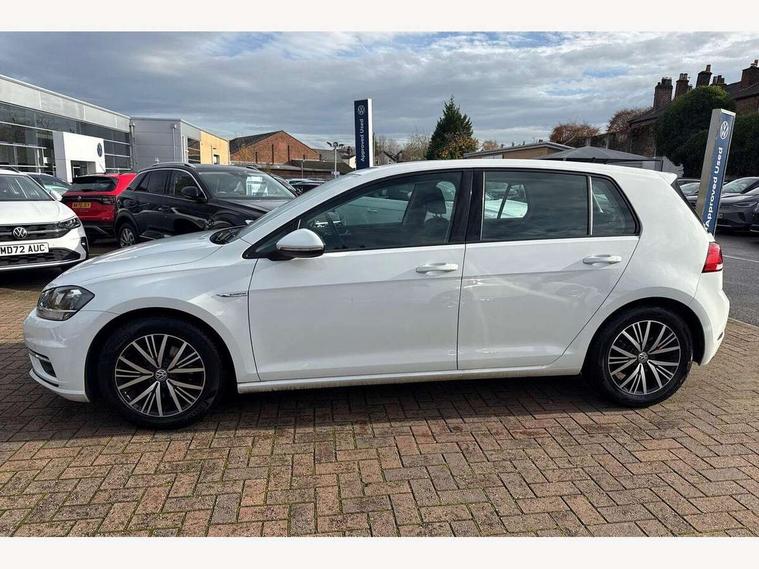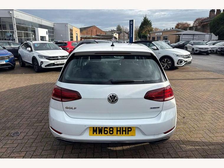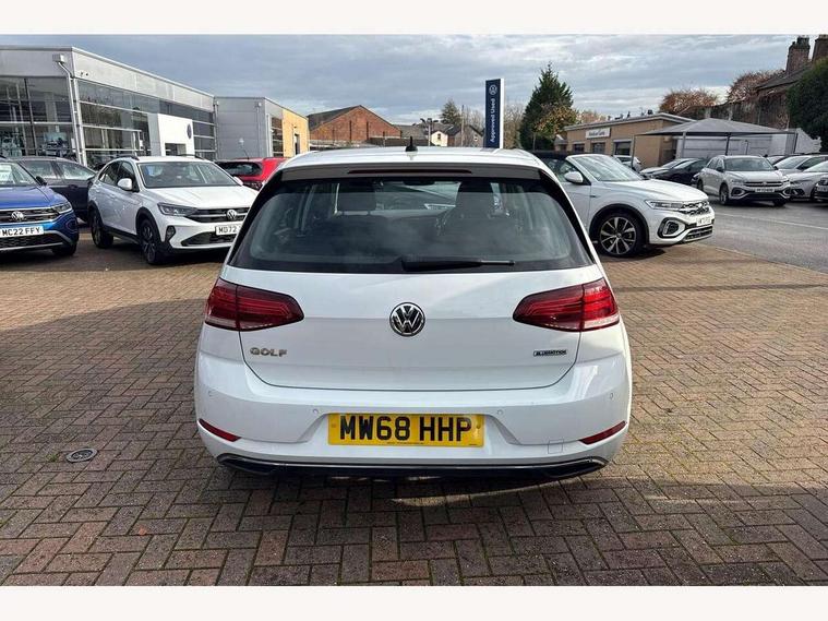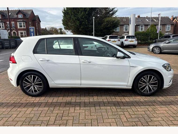 'Lights On' Reminder warning buzzer, 8" colour touch screen, ACC - Adaptive cruise control with front assist, forward collision warning, distance monitoring, city emergency brake and speed limiter, App-Connect, Bluetooth telephone and audio connection for compatible devices, Brake pad wear indicator warning light, Drive mode selector, Driver alert system, Driver profile selection, Front assist, radar sensor controlled distance monitor, city emergency braking + predictive pedestrian protection, Front assistant collision mitigation, Instrument cluster in white, Multifunction computer with visual gear change recommendation for fuel consumption, Power assisted speed sensitive electro-mechanical steering, Speedo, rev counter, electronic odometer, trip, service interval display, exterior temperature and fuel gauge, Stop/start system, Ultrasonic front and rear optical and audible parking sensors, Warning buzzer and light for front seatbelts unfastened, Battery regeneration during braking, XDS electronic differential lock, 8 Speakers, Composition media system, DAB Digital radio receiver, MP3/WMA compatability, SMS Functionality, USB and SD card connectivity, Aerodynamic black radiator grille with chrome trimmed insert, Automatic coming/leaving home lighting function, Automatic dimming rear view mirror/rain sensor, Black rear diffuser, Body colour bumpers, Body colour door handles, Body colour door mirrors with integrated indicators, Electric front windows, Electric rear windows, Electrically adjustable and heated door mirrors, Glavanised body, Heated rear windscreen, High level 3rd brake light incorporating LED Technology, Range adjustable headlights via infotainment system with LED daytime running lights, Rear number plate lights incorporating LED technology, Rear window aerial, Rear window wash/wipe with intermittent wipe, Reflectors in all doors, Remote electrically foldable door mirrors, door mirror puddle lights and reverse activated kerb-view adjustment on passengers door mirror, Tailgate with integrated rear roof spoiler, Windscreen wipers/ intermittent wipe + 4 position delay, 12V socket in luggage compartment, 3 rear headrests, 4 load lashing points in luggage compartment, 60/40 split folding rear seat backrest, Bag hook in luggage compartment x 2, Cooled glovebox, Dust/pollen filter, Front and rear reading lights incorporating LED technology, Front centre armrest with storage compartment and two rear air vents, Front seat back storage pockets, Grab handles front x 2, rear x 2 with integrated coat hooks, Height and reach adjustable steering wheel, Illuminated vanity mirrors, Instrument lighting white adjustable panel illumination, Interior light delay, Isofix preparation for 2 rear child seats, Load through provision with rear centre armrest and cupholders x2, Luggage compartment light, Multifunction leather steering wheel with leather trimmed gear knob, Overhead storage box, Pearl grey headlining, Storage box in luggage compartment, Storage compartment in roof console with cover, Storage compartments in front doors, Storage compartments in rear doors, Stowable luggage compartment cover, Sun visors, Three spoke multi-function leather trimmed steering wheel and gearknob, Variable boot floor, height adjustable and removable, Mirror pack - Golf, 3 rear three point seatbelts, Airbags - Driver's and front passenger's, curtain airbag, Driver's knee, front side impact and passenger's airbag deactivation switch, Anti-lock Braking System (ABS) with Hydraulic Brake Assist (HBA), Automatic post collision braking system, Child locks on rear doors, Driver/Passenger optimised head restraints, Electronic parking brake with auto hold, Electronic stability control (ESC) including Electronic differential lock (EDL) and ASR (Traction control) with deactivation via infotainment system, Pre crash preventive occupant protection, Three point height adjustable front seatbelts with tensioners, Tyre pressure loss indicator, Alarm with interior protection, Electronic engine immobiliser, Remote central locking with 2 remote folding keys, Brushed dark silver decorative inserts in dash and door panels, Chrome plated air vent surround, Chrome-plated light switch surround, Polar night black centre console, Steel space saver spare wheel,