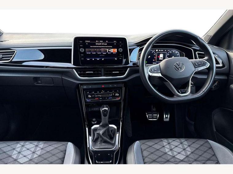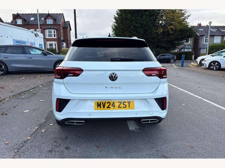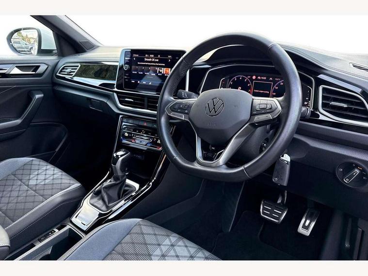 10.25" Digital cockpit pro, Advanced driver attention and drowsiness monitor, Bluetooth mobile phone interface, Emergency call service, Lane keeping system Lane Assist, Modified key software - reduce switch off time for key status change to Long no motion, Online services, Park assist including front and rear parking sensors, Service interval indicator, Tailgate/trunk lid release from outside, Think blue trainer driver tips and journey analysis, Warning sound and light for front seatbelts unfastened, Wireless app connect, Battery regeneration during braking, Start/stop function with battery regeneration, Diversity antenna for FM reception, Music playback - MP3, WMA and AAC files, Premium USB cable in choice of either Apple or Android smartphone compatibility, SD card slot, Simultaneous pairing of 2 compatible mobile devices, Title and cover art display, We Connect and We Connect Plus functionality, 3rd brake light, Auto dimming interior rear view mirror, Automatic hazard lights activation under emergency braking, Automatic headlight control with LED separate daytime running lights with coming/leaving home function, Electrically adjustable and heated door mirrors, Extended roof spoiler, Exterior mirrors aspherical on driver side, convex on front passenger side, External USB type C socket and charging sockets, Front windscreen wiper with intermittent wipe and 4 position delay, Heated rear window, LED rear combination lamps, LED rear number plate lights, Power windows with comfort operation and circuit breaker, R-Line design body coloured bumpers, Rain sensor, Rear exhaust tailpipe, Rear fog light on one side and reversing lights on both sides, Rear side wing doors, Rear wash/wipe with intermittent wipe setting, Remote electrically foldable door mirrors, puddle lights and reverse activated passenger's door mirror, 12V power socket in centre console, 3 rear head restraints, 3 seat bench in 2nd row, 4 load lashing points in luggage compartment, Air care climatronic air conditoning system with active combination filter and 2-zone temperature control, Black roof lining, Chrome plated radiator grille inserts, air vent surrounds and light switch surrounds, Door and side trim panel with leatherette insert, Front + rear carpet mats, Front centre armrest, Front cupholders x 2, Front footwell illumination, Front reading light, Front scuff plates with R Line logo, Front seat back storage pockets, Glove compartment door with light, Instrument lighting, white adjustable panel illumination, Interior ambient lighting and surround lighting, Interior light delay, Isofix child seat preparation, Leather gearshift handle, Load-through provision with cup holder when folded down ('Unsplit rear seat bench, split folding backrest, with centre armrest), Luggage compartment lighting, Single front passenger seat, Stainless steel pedals, Storage compartment in left and right luggage area, Storage compartment in rear doors, Storage compartments in driver and front passenger doors, Sunvisors with illuminated vanity mirrors, Variable boot floor, height adjustable and removable, Driver assistance pack without proactive passenger protection - T-Roc, 3 point height adj front seatbelts + pretensioners, 3 point seatbelts in outer rear with ECE label, ABS, Child locks on rear doors, City emergency braking and pedestrian monitoring, Driver and front passenger airbag with front passenger airbag deactivation, Driver and front passenger safety-optimised head restraints, Drivers seatbelt reminder, Electronic parking brake, Electronic Stability Control (ESC) inc EDL (Electronic Differential Lock) and ASR (Traction Control), Front and rear passengers curtain airbag system including front side airbags, Hill start assist, Predictive pedestrian protection, Rear disc brakes, Two tone horn, Tyre pressure loss indicator, Volkswagen roadside assistance, Anti-theft alarm system with interior monitoring, backup horn, and towing protection, Remote central locking with SAFELOCK, radio remote control with 2 remote control folding keys, Trims for alloy wheels,