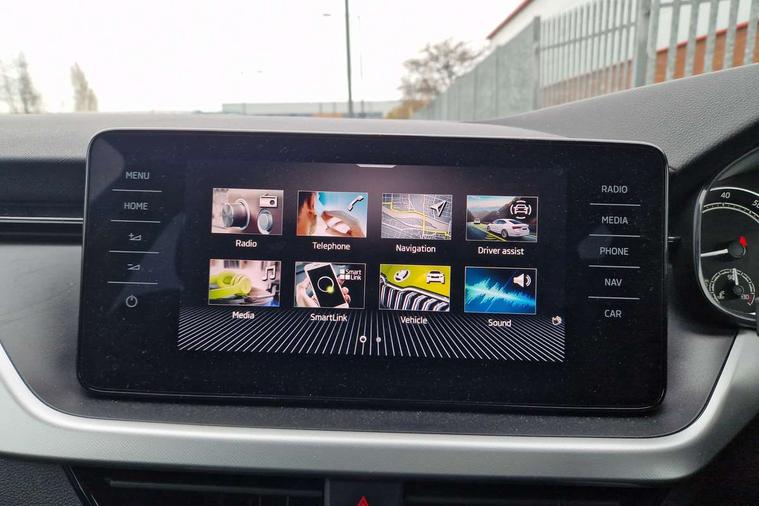 Amundsen satellite navigation with 9.2" glass colour touchscreen display, web radio, voice control and traffic sign recognition, Bluetooth system, E-call, Front assist system, Gesture control, PAS, Service indicator, Speed limiter, Wireless Smartlink for Apple CarPlay (wired for Android Auto), 8 Speakers, Auxiliary input socket, DAB Digital radio, Body colour bumpers, Body colour door mirrors and handles, Chrome grille surround, Dimming rear view mirror with black surround, Electrically adjustable and heated door mirrors, Front and rear electric windows, Headlight range control, Heated rear window, LED rear lights - low functionality, LED third brake light, Light sensors, Privacy glass, Rain sensor, Rear fog lights, Rear side wing doors, Rear wiper, 12V Accessory socket in centre console, 3 seat bench in 2nd row, Chrome inner door handles, Cloth upholstery, Front head restraints, Glove compartment with illumination, Height adjustable driver and front passenger seats - manual, Ice scraper, Isofix child seat fittings on outer rear seats, ISOFIX on front passenger seat, Manual lumbar support for front seats, Rake/reach adjustable steering wheel, Reading lights, Single front passenger seat, Sun visors with illumination on front passenger, Textile floor mats, Third rear headrest, Top tether for front passenger seat, Umbrella in driver's door, 3x3 point rear seatbelts, Airbags - driver and front passenger, ESP, Front passenger airbag deactivation switch, Front side airbags with curtain airbags, Hill hold control, Manual parking brake, Manual rear child locks, One tone horn, Rear disc brakes, Seatbelt reminder for driver an co-driver, Traction control, Tyre pressure monitor, Anti-theft alarm system with interior monitoring, backup horn, towing protection and remote central locking with SAFE system, Anti-theft wheel bolts, Electronic engine immobilizer, Silver haptic decorative insert on the dashboard with hot stamping in glossy black,
