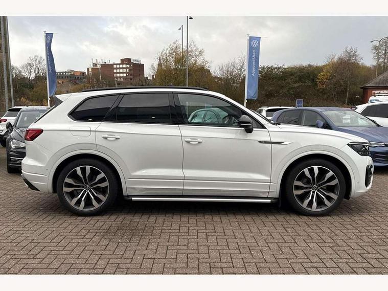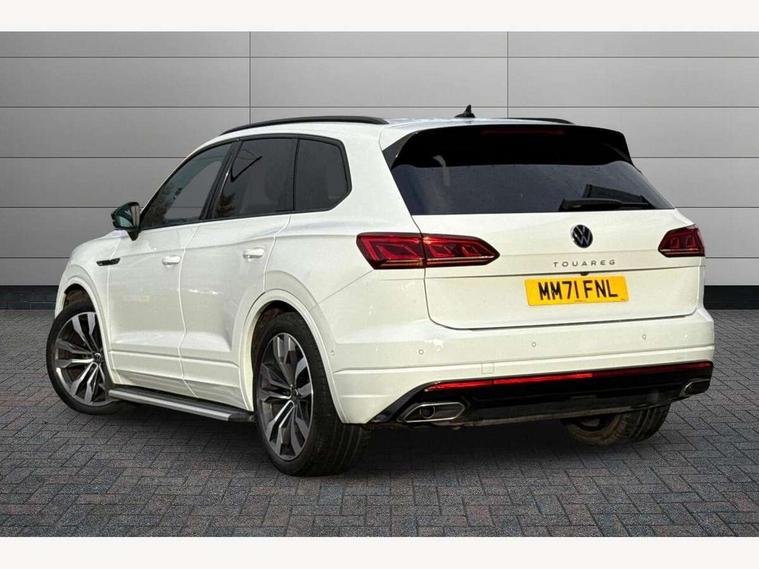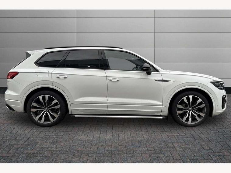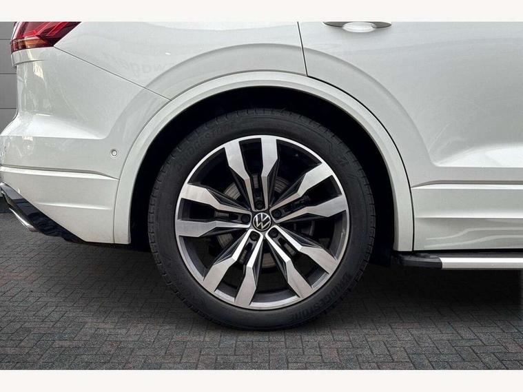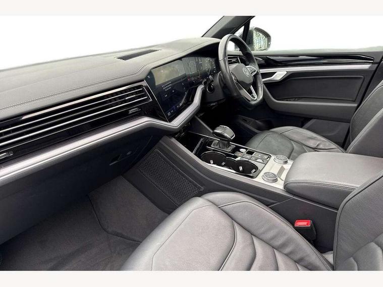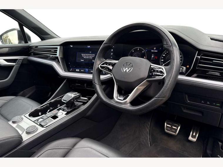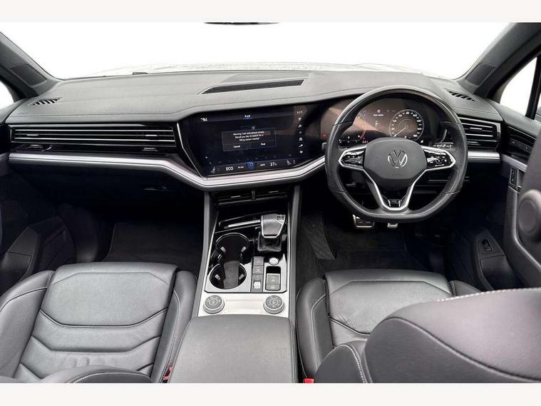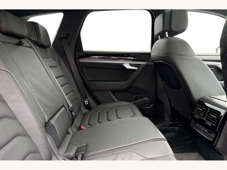 2D/3D map view, ACC - Adaptive cruise control with front assist, forward collision warning, distance monitoring, city emergency brake and speed limiter, Apple car play/Android Auto, Audible and visual fatigue detection system, Bluetooth hands free telephone connection, Car information display, Drive select with Damper control, Driver alert system, Driver profile selection, Dynamic road sign display camera controlled system with visual warning for traffic and road signs, eCall emergency system, Fully electric tailgate + keyless entry and start, Instrument cluster, MirrorLink, Multifunction camera with lane assist, Multifunction computer premium with 7" colour display, One touch indicators with repeat function, Service interval indicator, Speed sensitive power steering, Start/stop system with regenerative braking, Tailgate power latch, Think blue trainer driver tips and journey analysis, Traffic sign recognition, Voice control system, Wireless Smartphone charger, 24 litre AdBlue tank, Torsen limited slip differential, DAB Digital radio, Dynamic navigation based on TMC+, Gesture control for infotainment system, Multi device interface (MDI) with illuminated USB-C connection, Music playback - MP3, WMA and AAC files, SD card slot, Simultaneous pairing of 2 compatible mobile devices, SMS functionality - read, compose and send SMS messages using touch-screen display, Title and cover art display, Volkswagen media control, Adaptive low beam for urban and motorway use, Auto dimming rear view mirror, Automatic coming/leaving home lighting function, Automatic headlights, Black anodised roof rails, Black door mirrors, Black rear diffuser, Black side window surrounds, Black upper and lower grille louvres extending into headlights and radiator grille, Body colour door handles, Body coloured wheel arches, C signature gloss black front air intake, Chromed tailpipe on the left and right integrated in the bumper with trapezoid design, Dusk sensor, Dynamic headlight range control, Electric front tilt/slide panoramic sunroof and fixed rear sunroof, Electrically power adjustable, heated, folding, auto dimming, front passenger exterior door mirror lowering function, Front and rear electric windows, Galvanised body, Gloss black finish B pillar, Gloss black rear diffuser, Headlight washers, Heat insulating darkened glass in side and rear windows, Heated windscreen washer jets, IQ.Light-LED matrix headlight, daytime running light with dynamic cornering light and indicator, LED rear fog light, LED rear number plate lights, Plastic scuff plates in door apertures, Poor weather light, Puddle lights, Rain sensor, Rear side wing doors, Rear wiper, 12V socket in front and rear centre console and boot, 2 Coat hooks on B pillar, 3 rear head restraints, 3 spoke sport heated leather multi-function sports steering wheel with gear shift paddles - generation 2, 4 way adjustable front head restraints, 4 way electric lumbar support for driver and front passenger, 4 zone climate control, 40:20:40 split folding slide/recline rear seat, B pillar vents, Black lower edge of door extending sills, Branded points of interest, Double sun visor for drivier and passenger with LED illuminated vanity mirrors, Electric luggage compartment cover, Folding rear centre armrest with 2 cupholders, Front + rear carpet mats, Front centre armrest with storage box, Gear shift indicator, Height/reach adjust steering wheel, Illuminated air conditioned glovebox, Isofix preparation for 2 rear child seats, Jack and tool kit, Leather trimmed gear knob with gloss black inlay/aluminum trim, Leatherette door trim, LED luggage compartment lighting, Load through provision, Luggage compartment with load lashing rings, Plastic loading edge protection, Rear seat remote release levers, Soul black headlining, Stainless steel pedals, Innovision cockpit pack - Touareg, 3 point front seatbelts with pre-tensioners, ABS, Active bonnet, Automatic post collision braking system, Curtain airbags, Driver/Front Passenger airbags, EBD + Brake Assist, EDL, Electronic parking brake with auto hold, ESC with ASR, Front seat side impact airbags, Hill descent control, Hill start assist, Passenger airbag deactivate switch, Seatbelt warning lamp and buzzer, Three 3 point rear seatbelts, Two tone horn, Volkswagen roadside assistance, Warning triangle and first aid kit, Alarm with interior monitoring in cab, backup horn and towing protection, Child security locks for front and rear doors, Electronic engine immobiliser, Remote central locking, Black decorative trims on the side windows, High gloss black centre console,