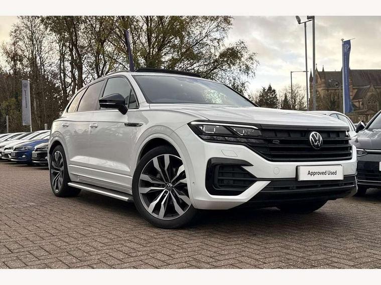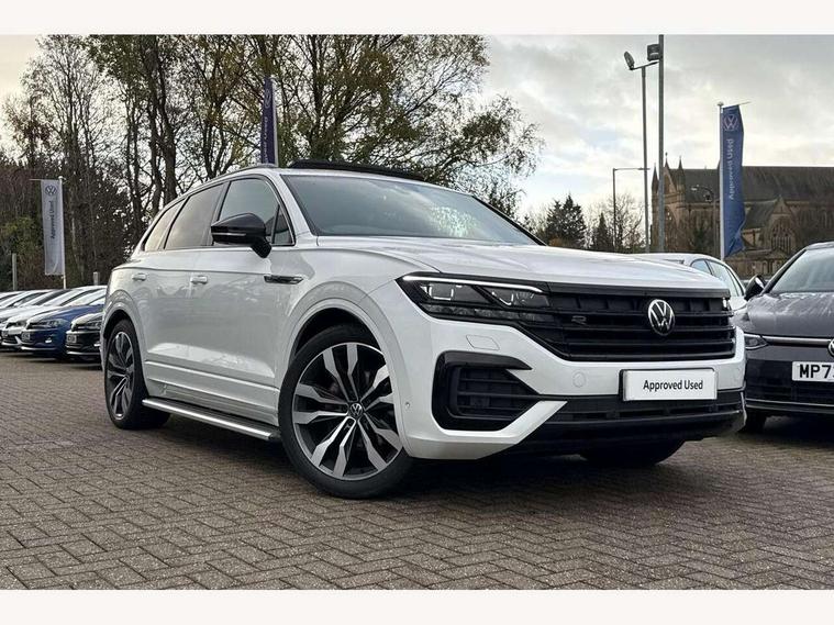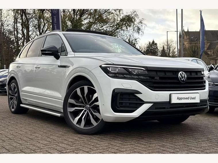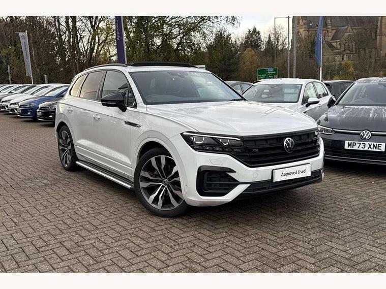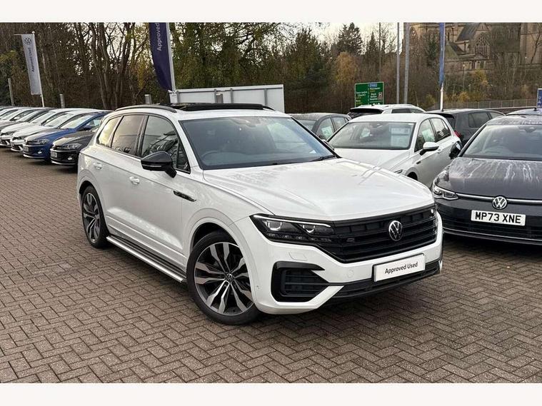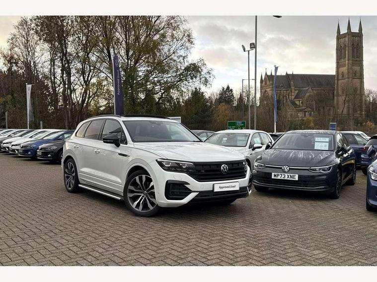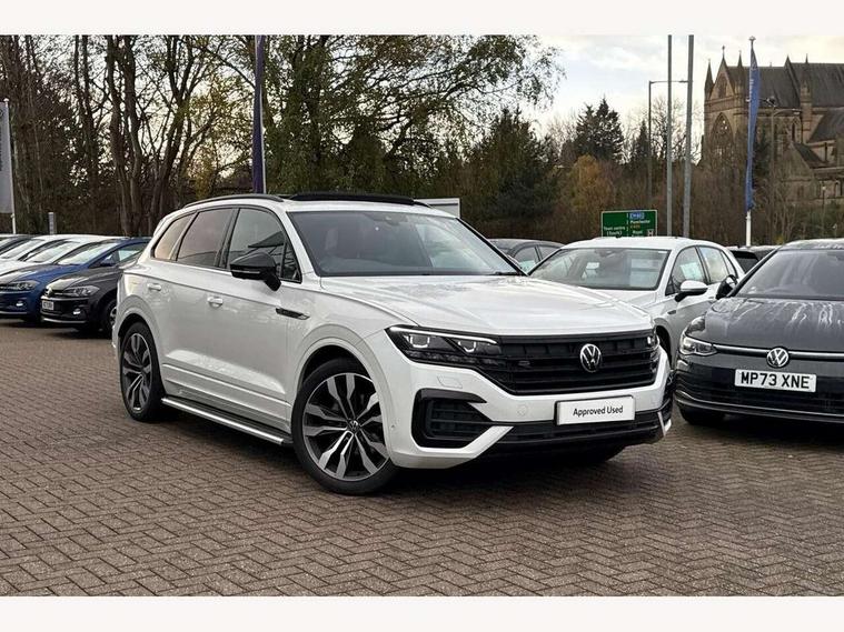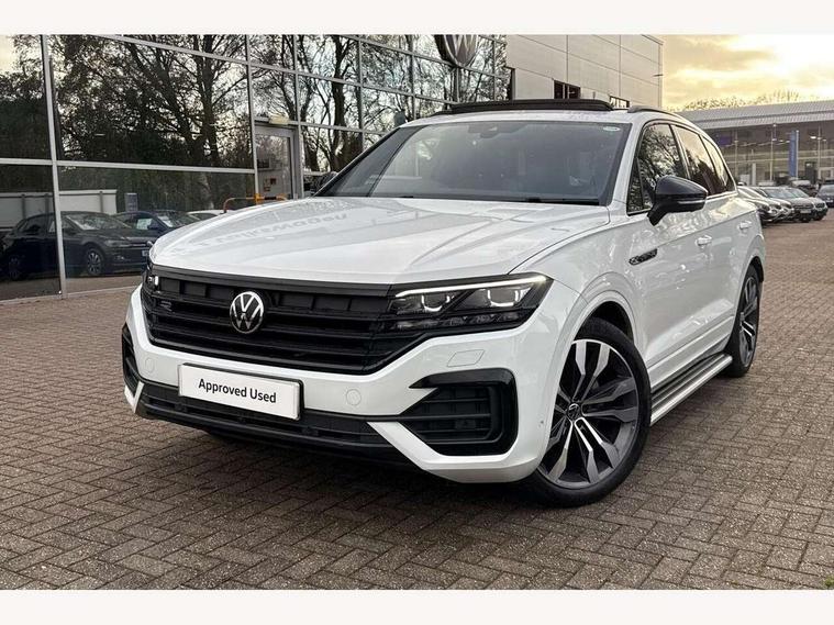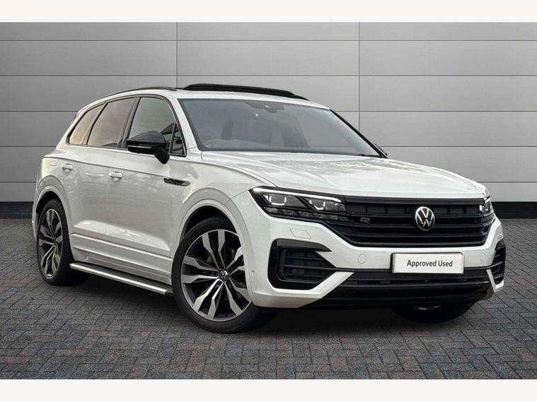 2D/3D map view, ACC - Adaptive cruise control with front assist, forward collision warning, distance monitoring, city emergency brake and speed limiter, Apple car play/Android Auto, Audible and visual fatigue detection system, Bluetooth hands free telephone connection, Car information display, Drive select with Damper control, Driver alert system, Driver profile selection, Dynamic road sign display camera controlled system with visual warning for traffic and road signs, eCall emergency system, Fully electric tailgate + keyless entry and start, Instrument cluster, MirrorLink, Multifunction camera with lane assist, Multifunction computer premium with 7" colour display, One touch indicators with repeat function, Service interval indicator, Speed sensitive power steering, Start/stop system with regenerative braking, Tailgate power latch, Think blue trainer driver tips and journey analysis, Traffic sign recognition, Voice control system, Wireless Smartphone charger, 24 litre AdBlue tank, Torsen limited slip differential, DAB Digital radio, Dynamic navigation based on TMC+, Gesture control for infotainment system, Multi device interface (MDI) with illuminated USB-C connection, Music playback - MP3, WMA and AAC files, SD card slot, Simultaneous pairing of 2 compatible mobile devices, SMS functionality - read, compose and send SMS messages using touch-screen display, Title and cover art display, Volkswagen media control, Adaptive low beam for urban and motorway use, Auto dimming rear view mirror, Automatic coming/leaving home lighting function, Automatic headlights, Black anodised roof rails, Black door mirrors, Black rear diffuser, Black side window surrounds, Black upper and lower grille louvres extending into headlights and radiator grille, Body colour door handles, Body coloured wheel arches, C signature gloss black front air intake, Chromed tailpipe on the left and right integrated in the bumper with trapezoid design, Dusk sensor, Dynamic headlight range control, Electric front tilt/slide panoramic sunroof and fixed rear sunroof, Electrically power adjustable, heated, folding, auto dimming, front passenger exterior door mirror lowering function, Front and rear electric windows, Galvanised body, Gloss black finish B pillar, Gloss black rear diffuser, Headlight washers, Heat insulating darkened glass in side and rear windows, Heated windscreen washer jets, IQ.Light-LED matrix headlight, daytime running light with dynamic cornering light and indicator, LED rear fog light, LED rear number plate lights, Plastic scuff plates in door apertures, Poor weather light, Puddle lights, Rain sensor, Rear side wing doors, Rear wiper, 12V socket in front and rear centre console and boot, 2 Coat hooks on B pillar, 3 rear head restraints, 3 spoke sport heated leather multi-function sports steering wheel with gear shift paddles - generation 2, 4 way adjustable front head restraints, 4 way electric lumbar support for driver and front passenger, 4 zone climate control, 40:20:40 split folding slide/recline rear seat, B pillar vents, Black lower edge of door extending sills, Branded points of interest, Double sun visor for drivier and passenger with LED illuminated vanity mirrors, Electric luggage compartment cover, Folding rear centre armrest with 2 cupholders, Front + rear carpet mats, Front centre armrest with storage box, Gear shift indicator, Height/reach adjust steering wheel, Illuminated air conditioned glovebox, Isofix preparation for 2 rear child seats, Jack and tool kit, Leather trimmed gear knob with gloss black inlay/aluminum trim, Leatherette door trim, LED luggage compartment lighting, Load through provision, Luggage compartment with load lashing rings, Plastic loading edge protection, Rear seat remote release levers, Soul black headlining, Stainless steel pedals, Innovision cockpit pack - Touareg, 3 point front seatbelts with pre-tensioners, ABS, Active bonnet, Automatic post collision braking system, Curtain airbags, Driver/Front Passenger airbags, EBD + Brake Assist, EDL, Electronic parking brake with auto hold, ESC with ASR, Front seat side impact airbags, Hill descent control, Hill start assist, Passenger airbag deactivate switch, Seatbelt warning lamp and buzzer, Three 3 point rear seatbelts, Two tone horn, Volkswagen roadside assistance, Warning triangle and first aid kit, Alarm with interior monitoring in cab, backup horn and towing protection, Child security locks for front and rear doors, Electronic engine immobiliser, Remote central locking, Black decorative trims on the side windows, High gloss black centre console,