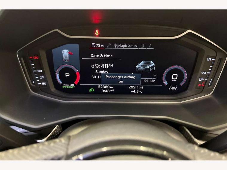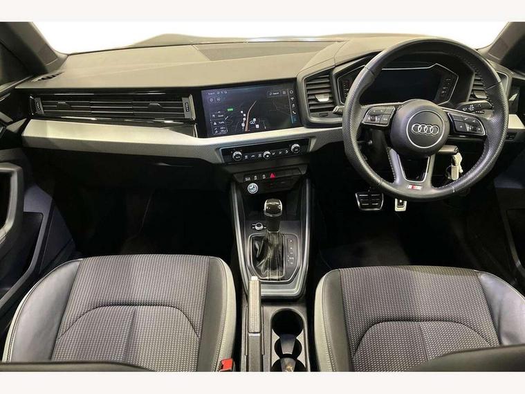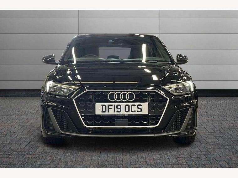 10.25" Digital instrument cluster display screen, Audi connect safety emergency and service including E-call, Audi drive select, Audi smartphone interface, Automatic start/stop system, Bluetooth interface, Driver's information system, Electromechanical power steering, Lane departure warning system, Service interval indicator, Speed limiter, Voice control system, Washer fluid level indicator, Sports suspension, 1 x SDXC card reader, 1 x USB type C and 1 USB type A charging points, Audi music interface, Bluetooth audio streaming, DAB Digital radio, MMI radio plus with 8.8" colour MMI display screen and MMI touch, Auto dimming rear view mirror, Body colour side sill mouldings, Body coloured bumpers, Body coloured door mirrors, Door sills with aluminium inlays and S Line logo, Electric front and rear windows, Front side air inlets in grained matt black and C frame in titanium black, Heat insulating glass windscreen and side windows, Heated rear windscreen, LED headlights with LED rear lights + dynamic rear indicators, Matt aluminium silver tailpipe trim, Matt black radiator grille frame, Matt platinum grey in front spoiler clip and rear diffuser clip, Rain and light sensors, Rear fog lights, Rear wiper, S line badges on front wings, S line exterior bumpers, S line roof spoiler, Side air inlet frames titanium black, Side front spoiler lips in grained matt black, 12V socket in centre console with two cup holders, 3 rear seats, Black cloth headlining, Driver and passenger seat with manual height adjust with forward and backwards adjustment, Front and rear black floor mats with contrast stitching in fine silver, Front head restraints, Height and reach adjustable steering wheel, ISOFIX child seat mounting in front passenger and rear outer seats, Leather gear knob with aluminium trim, Leatherette handbrake grip, Luggage compartment light with front and rear reading lights, Lumbar adjustment for front seats, Rear head restraints, Split folding rear seats, Stainless steel pedals, 3x3 point rear seatbelts, Audi pre-sense front with pedestrain and cyclist recognition, Brake assist function, Driver and front passenger airbag with front side and head airbags, Electronic Stability Control including ABS, EBD, ASR and EDL, Front and rear seatbelt reminder, Front passenger airbag deactivation switch, Hill hold assist, Seatbelt height adjustment for front seats, Seatbelt monitoring, Tyre pressure warning light, Warning triangle and first aid kit, Anti theft alarm, Anti theft wheel bolts and loose wheel warning, Immobiliser, Remote central locking with 2 remote folding keys, Aluminium trim for control switches, air vents and digital instrument cluster, Silver grey inlays polygon structure in diamond paint finish, Structured grey accent areas including air vents, door handle recesses and centre console in quartz paint finish,